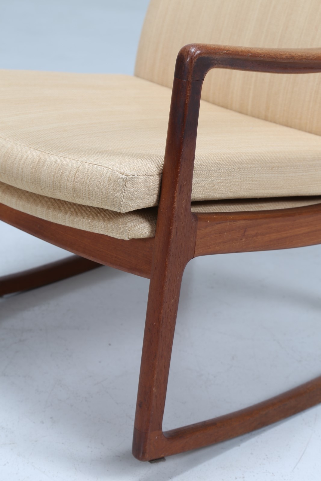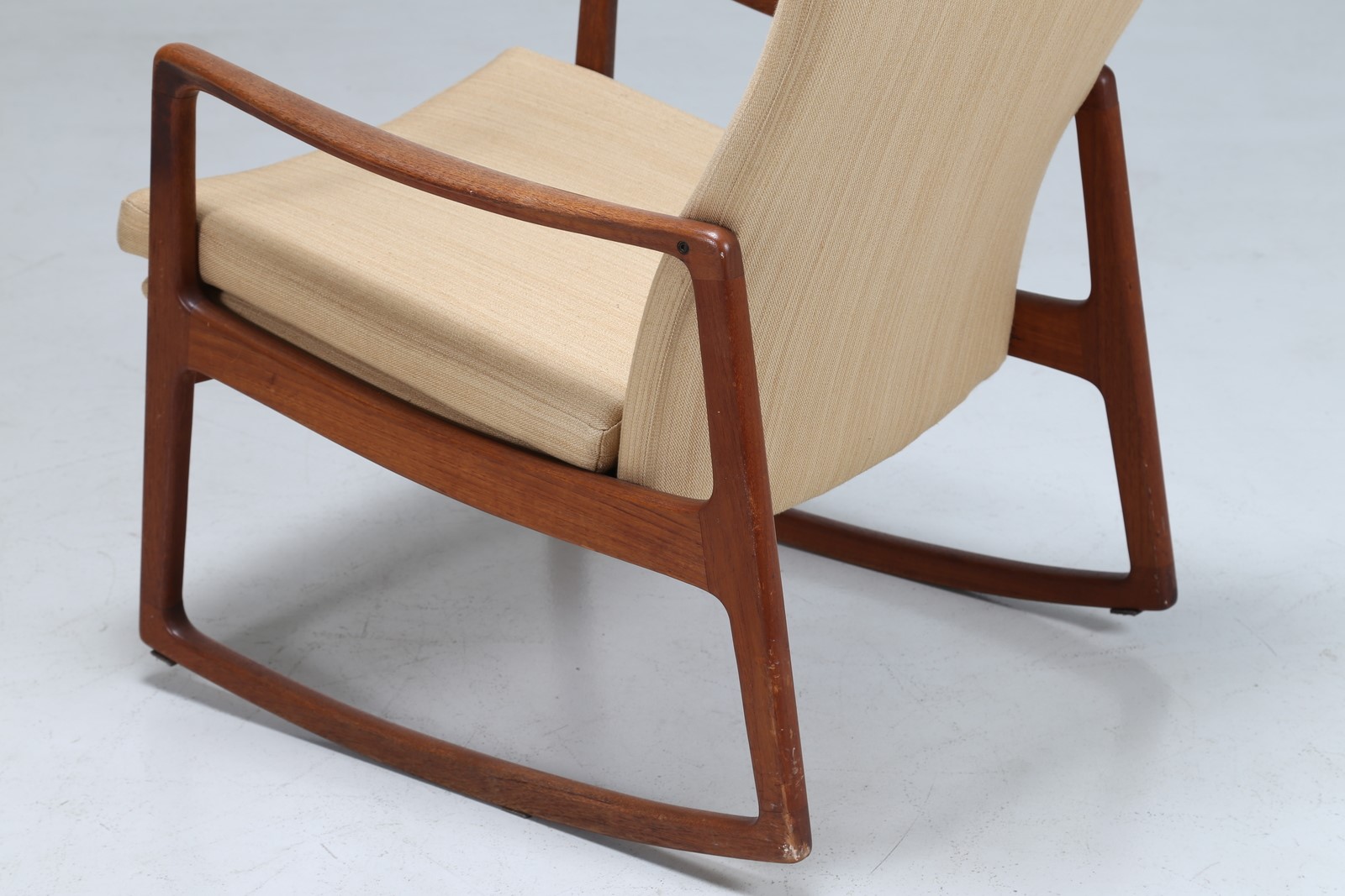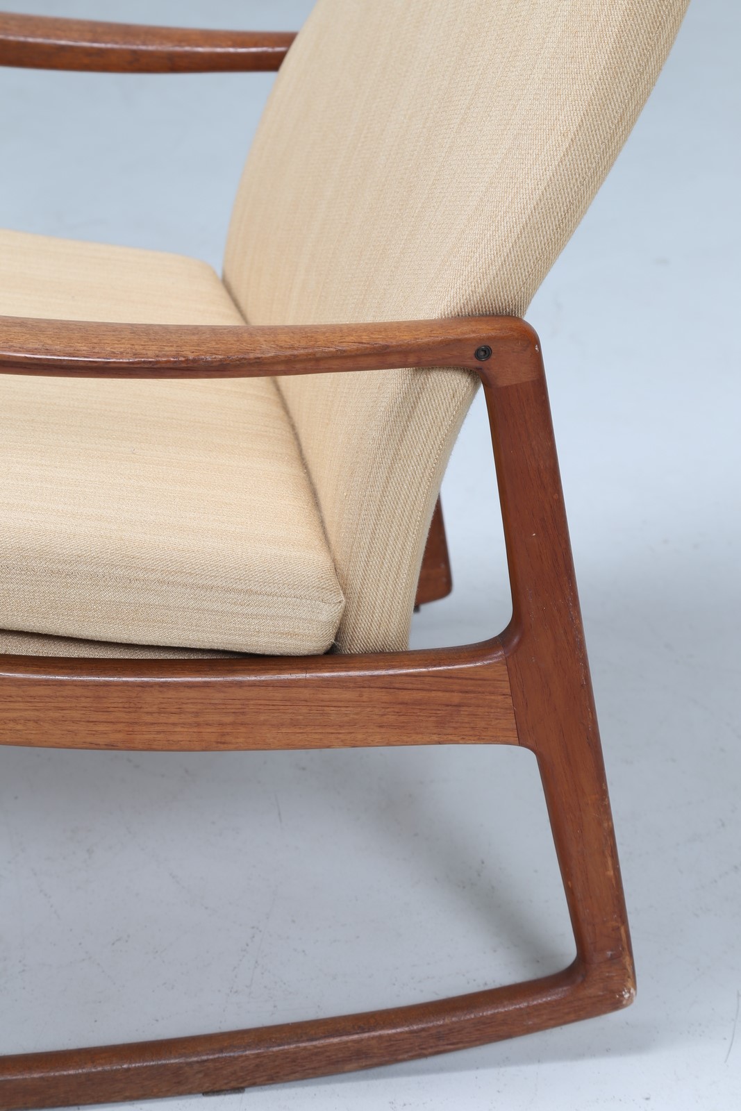 WANSCHER OLE Sedia a dondolo in teak e tessuto, mod. 160, per France & Son...