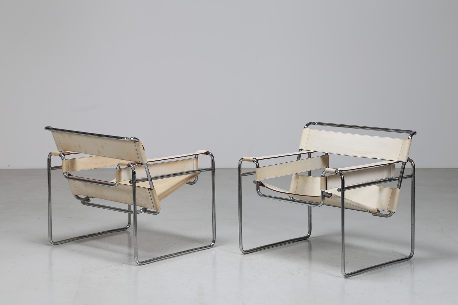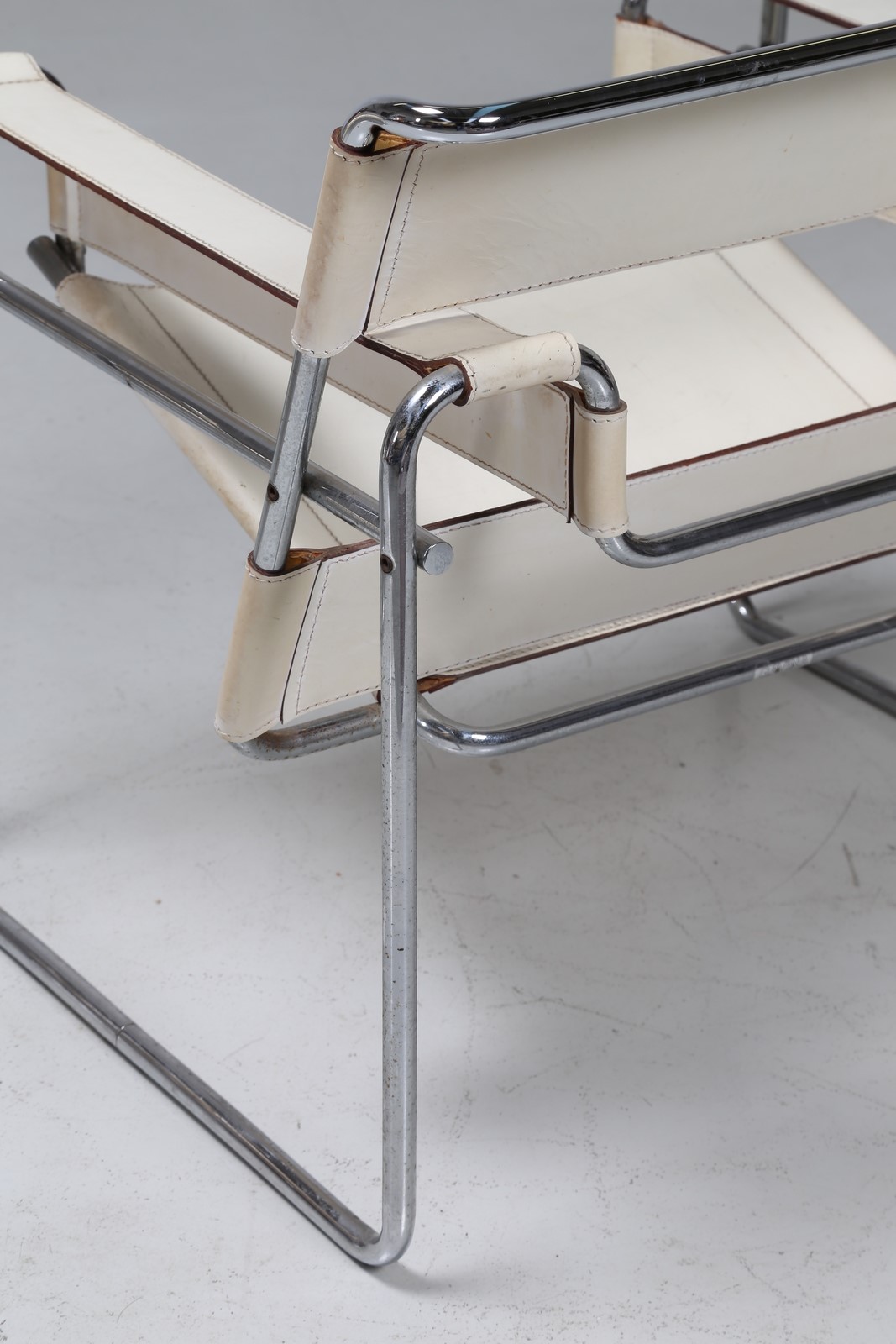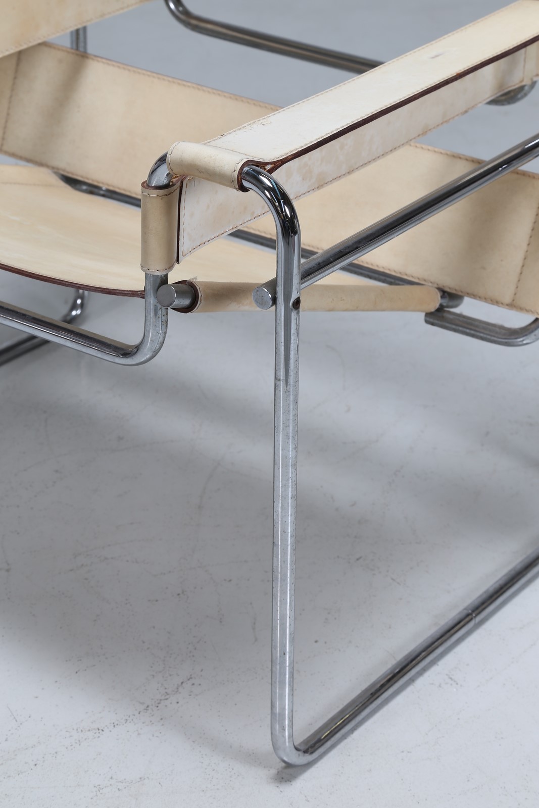 BREUER MARCEL LAJOS (1902 - 1981) Coppia di poltrone in metallo cromato e cuoio mod. Wassily, per Gavina . -. Cm 79,00 x 73,00 x 68,00.
