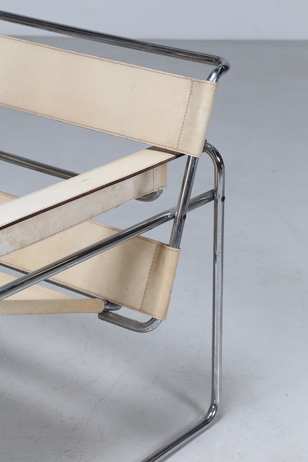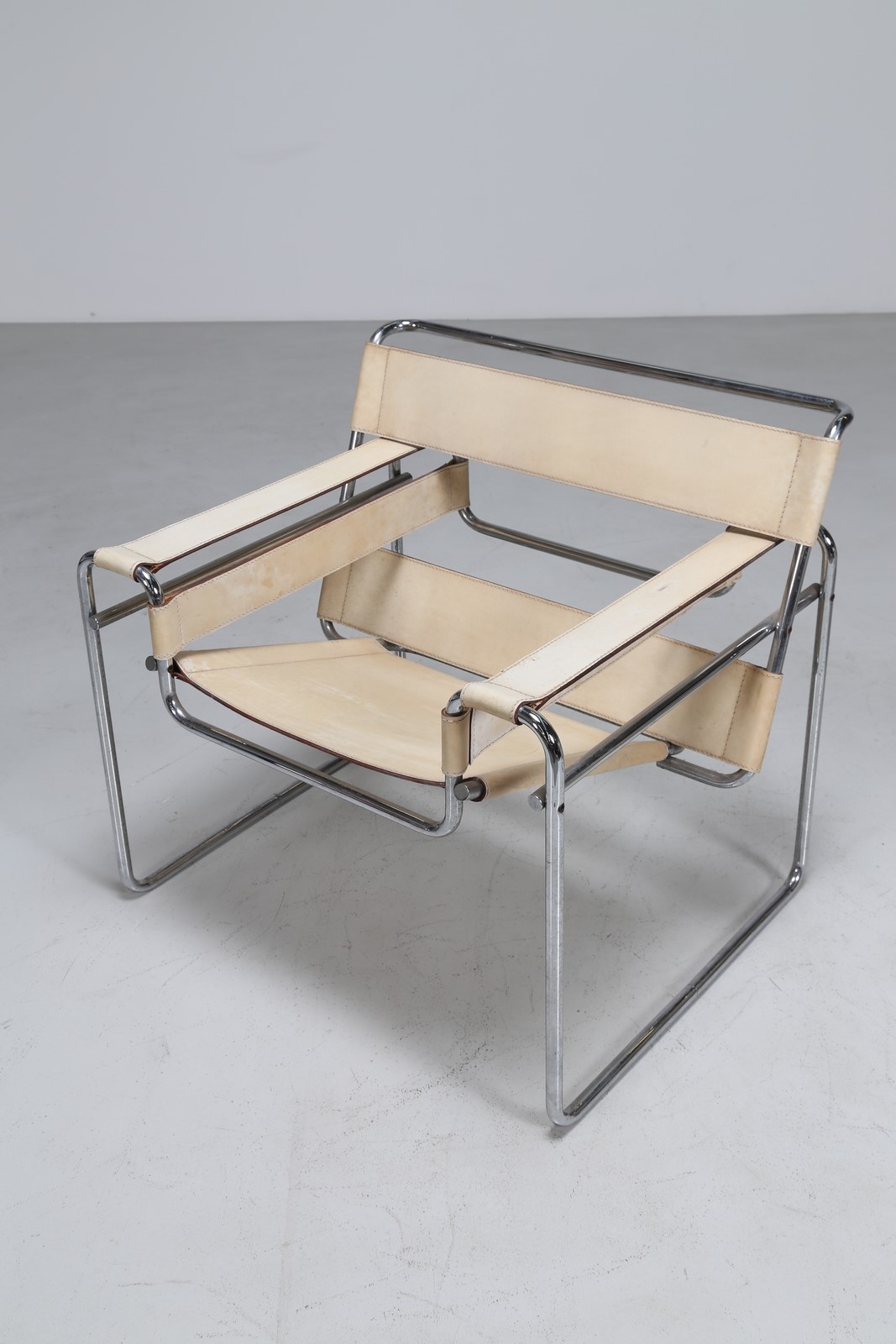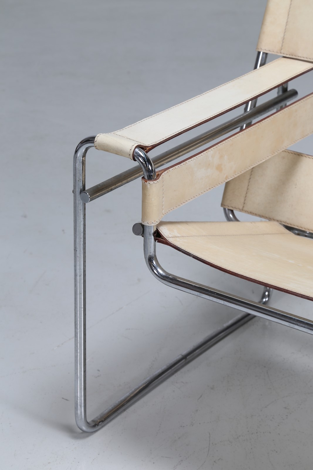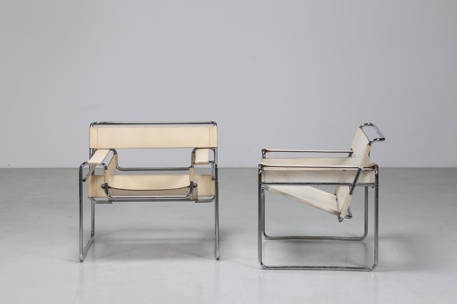 BREUER MARCEL LAJOS (1902 - 1981) Coppia di poltrone in metallo cromato e cuoio mod. Wassily, per Gavina . -. Cm 79,00 x 73,00 x 68,00.
