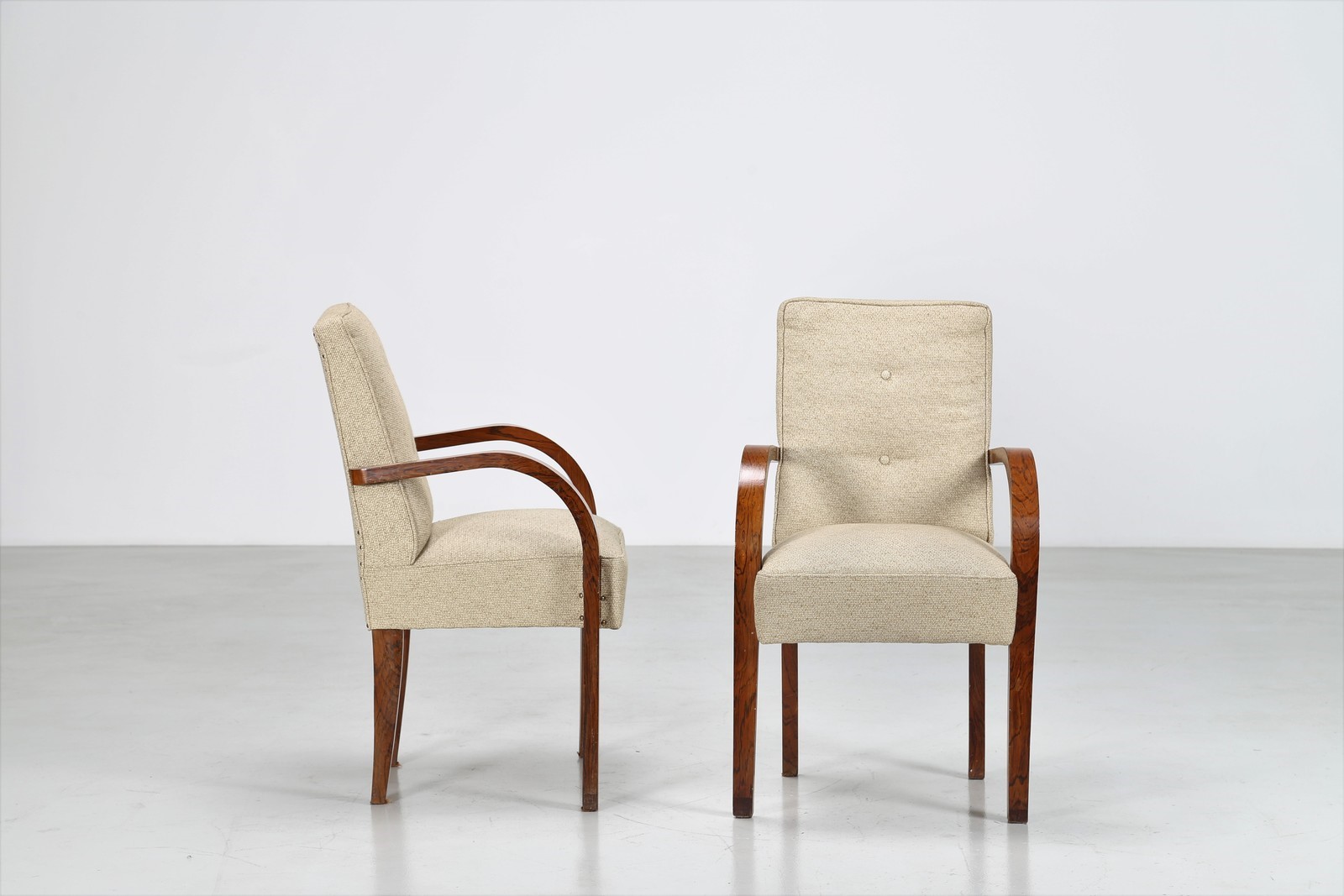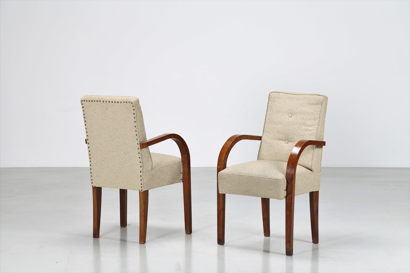 Lot 275 | MANIFATTURA ITALIANA Coppia di poltroncine con braccioli in noce e tessuto,...