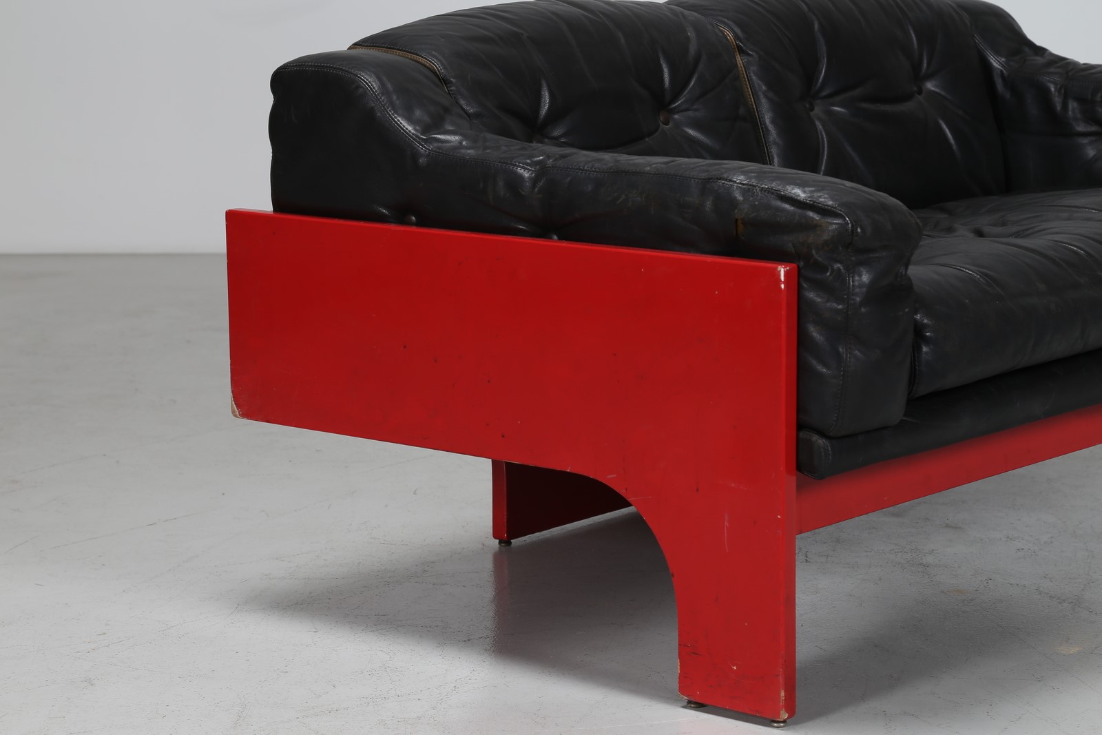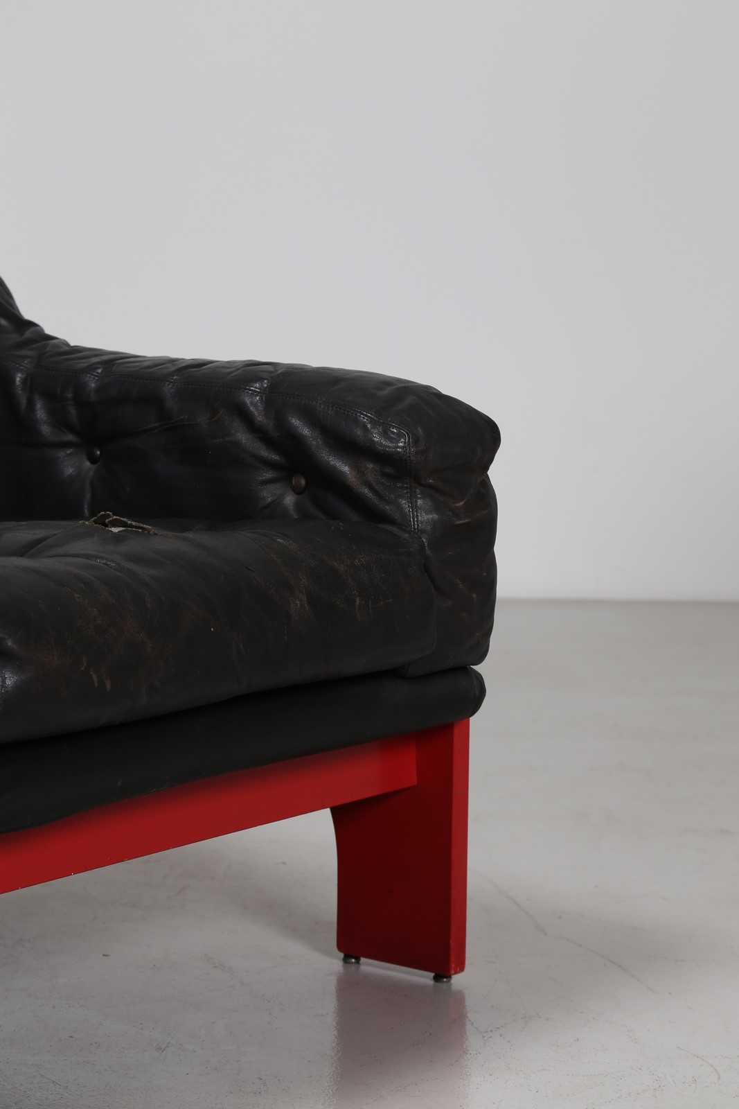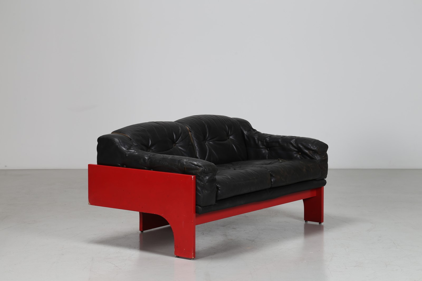 SALOCCHI CLAUDIO (1934 - 2009) Divano due posti in legno laccato e pelle, mod. Oriolo, per Sormani anni 60. -. Cm 139,00 x 68,00 x 86,00.