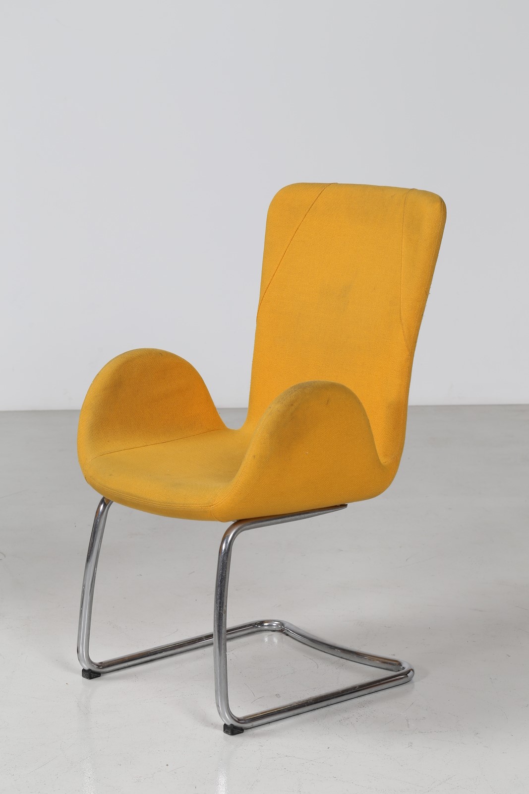 MOROSO Quattro sedie in metallo cromato e tessuto, anni 70
