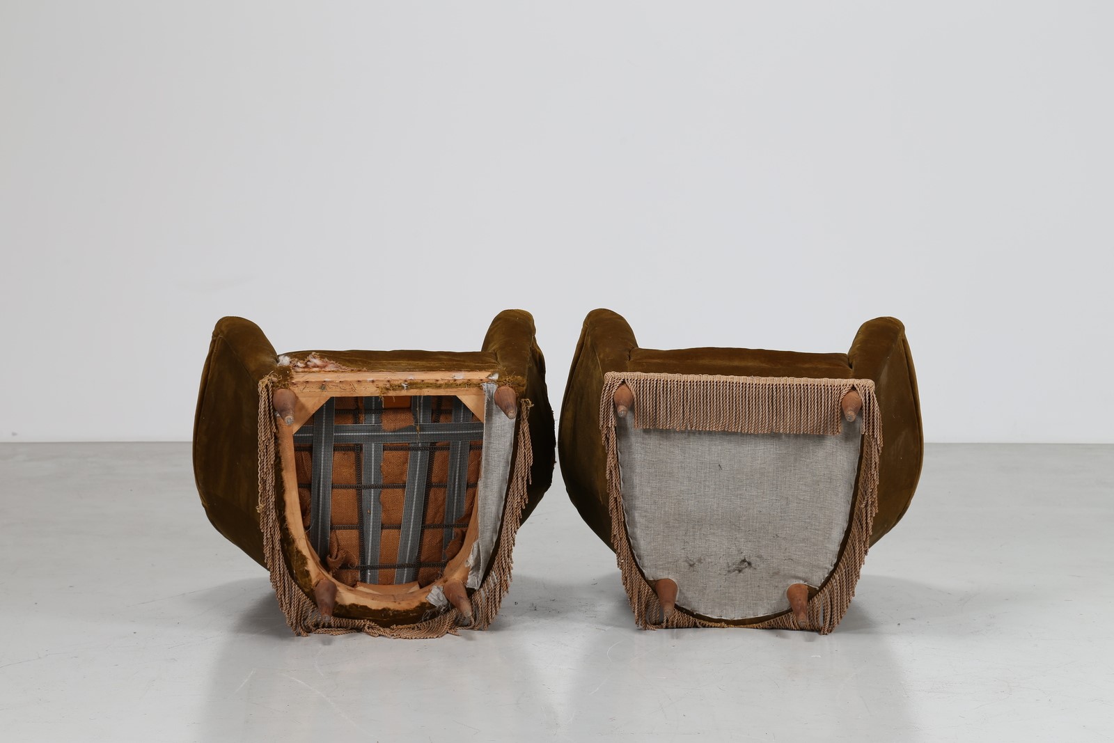 MANIFATTURA ITALIANA Quattro poltrone in legno e tessuto originale, anni 50. -. Cm 88,00 x 88,00 x 80,00.
