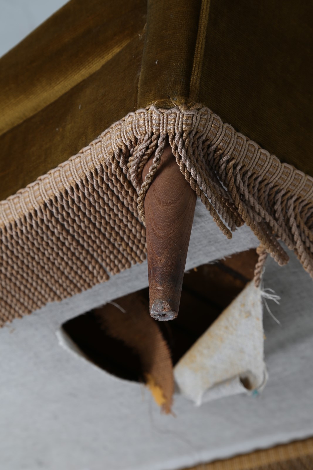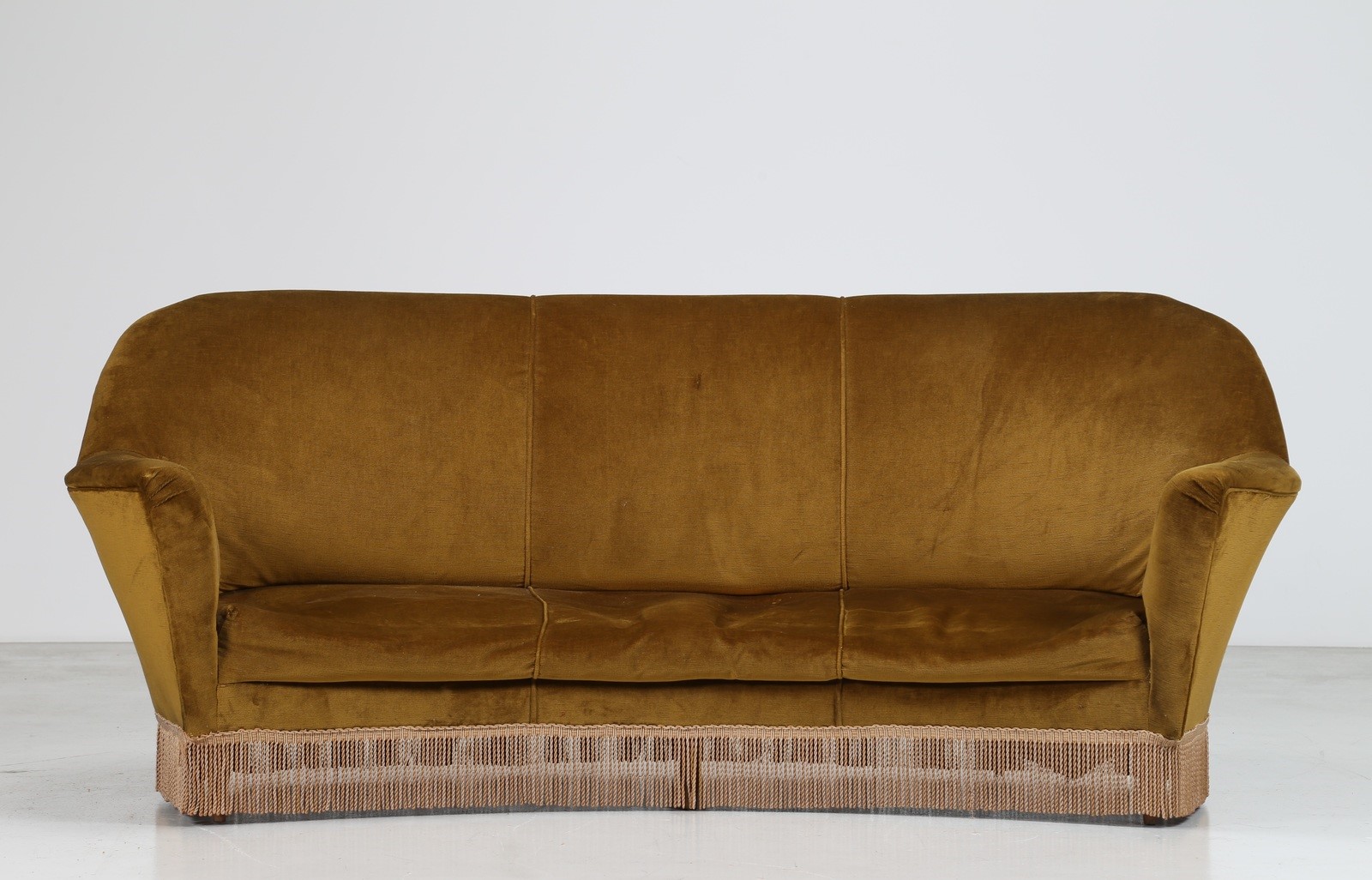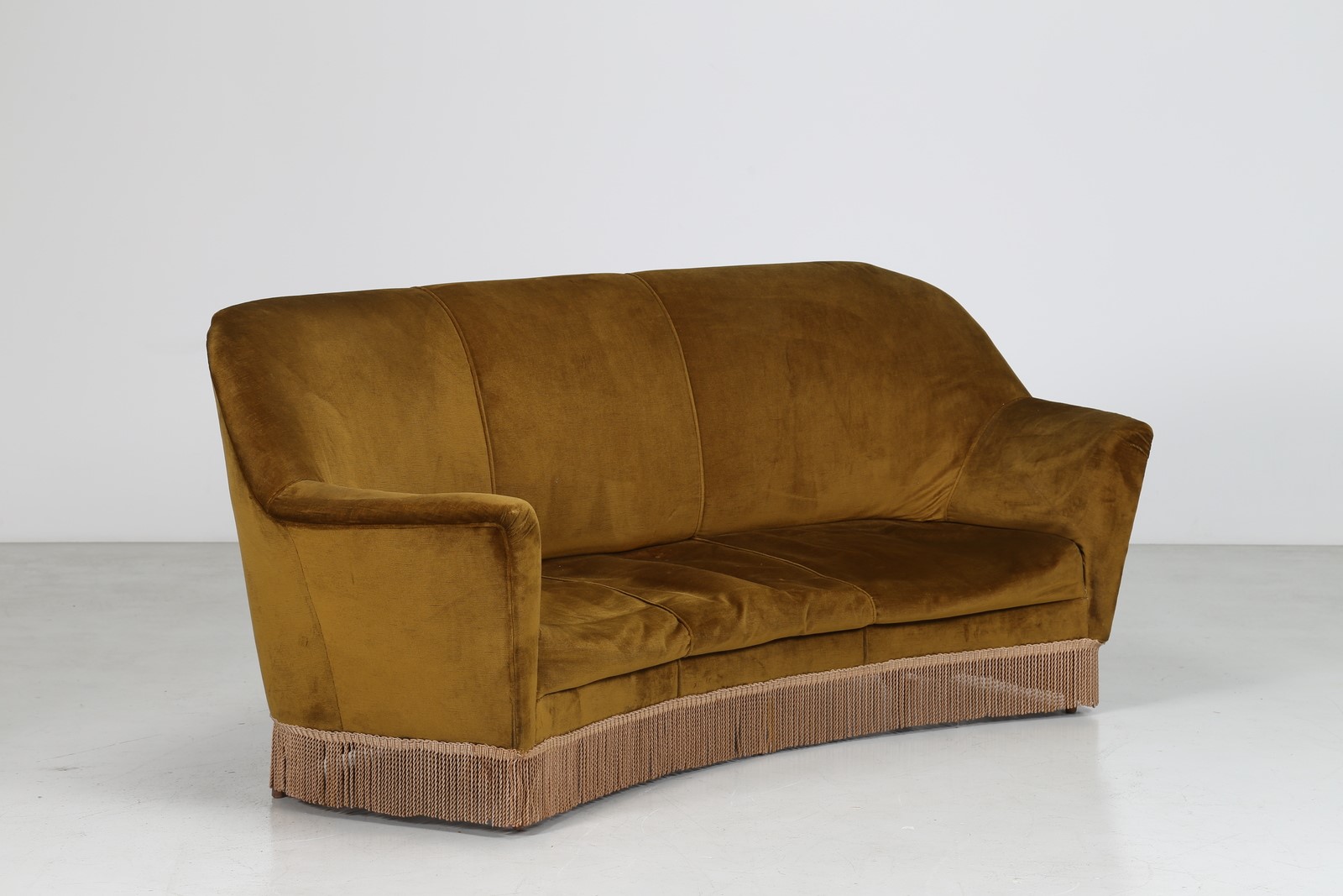 Lot 282 | MANIFATTURA ITALIANA Divano curvo in legno e tessuto originale, anni 50. -....