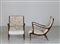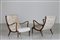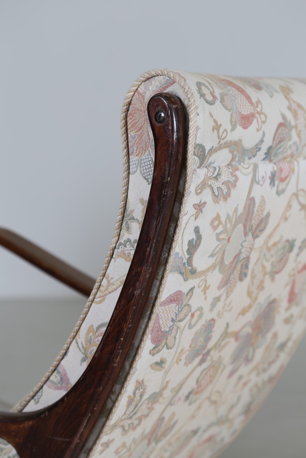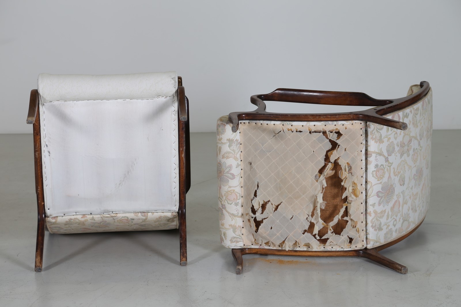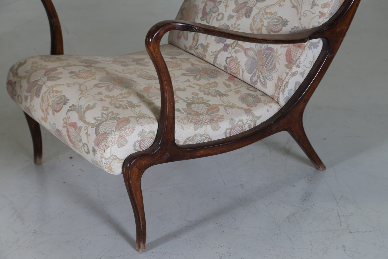 LONGHI EZIO Coppia di poltrone in legno e tessuto originale, mod. Mitzi per...