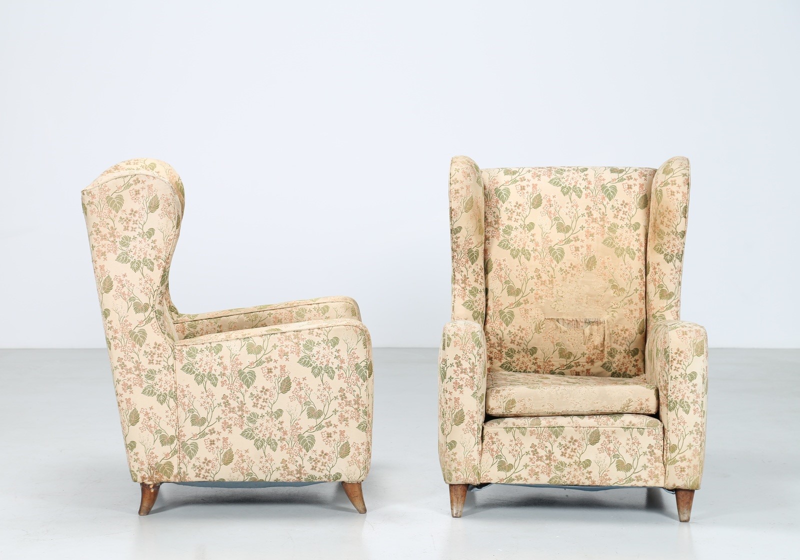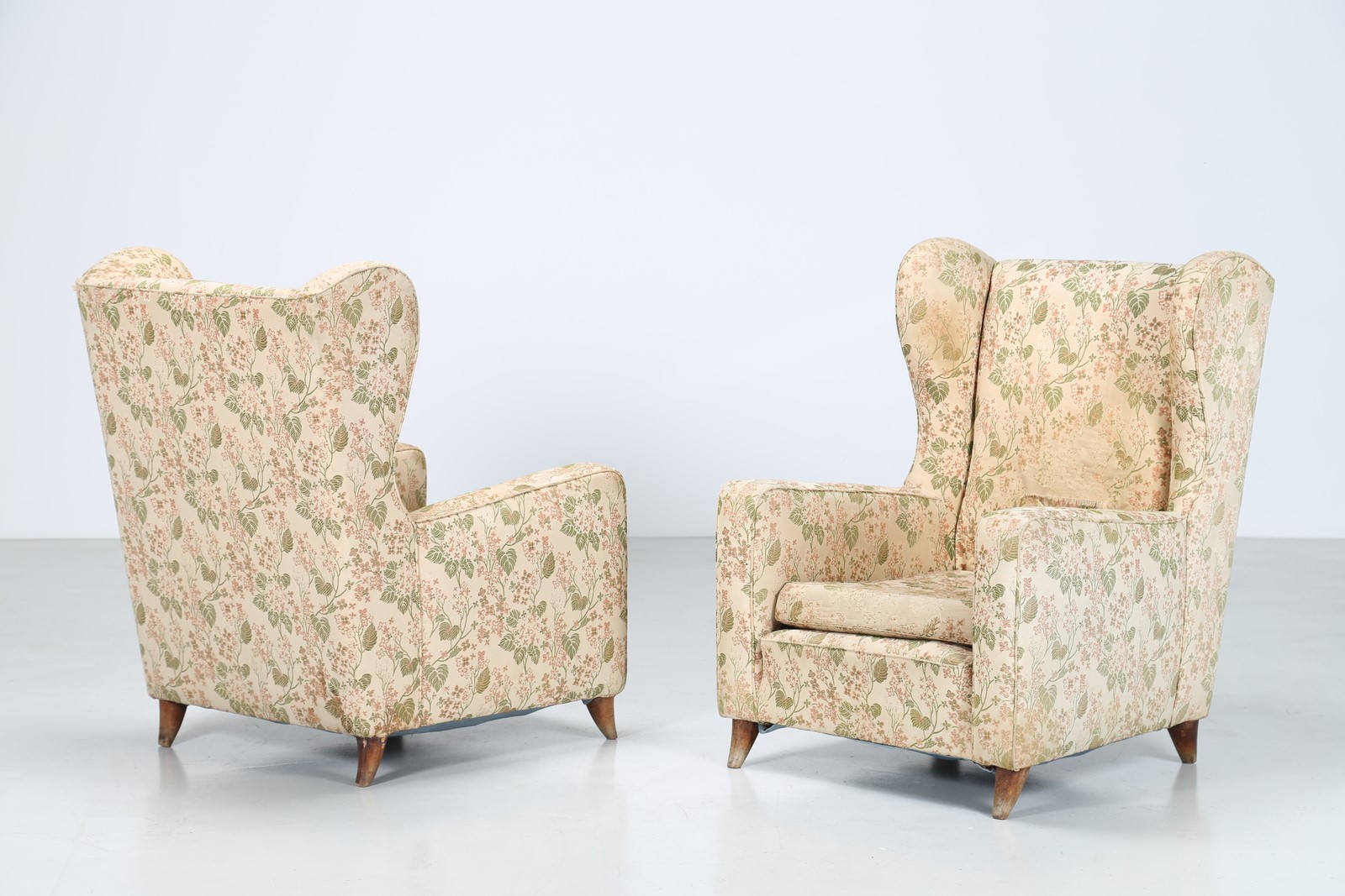 BUFFA PAOLO (1903 - 1970) Coppia di poltrone in legno e tessuto, anni 50. -....