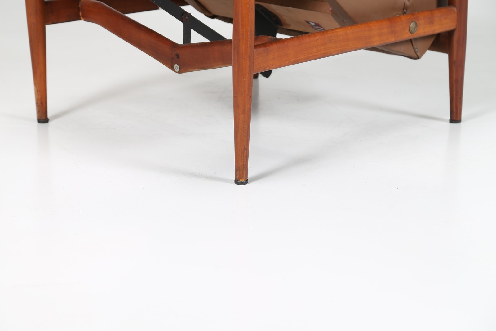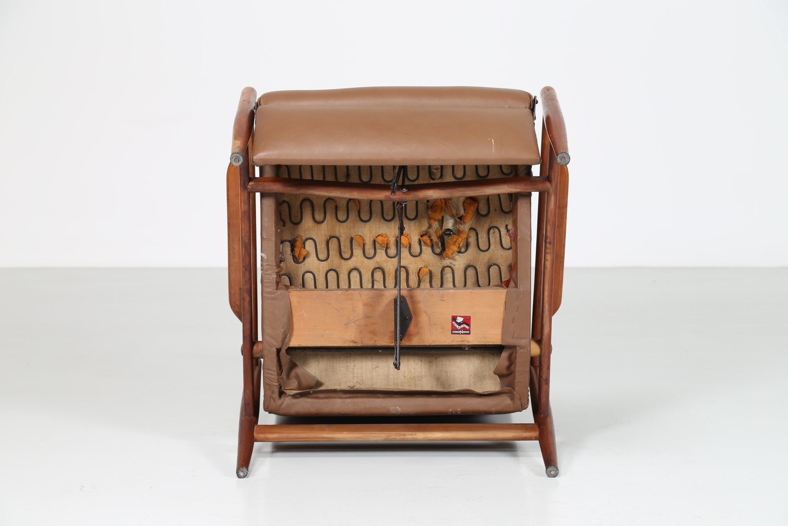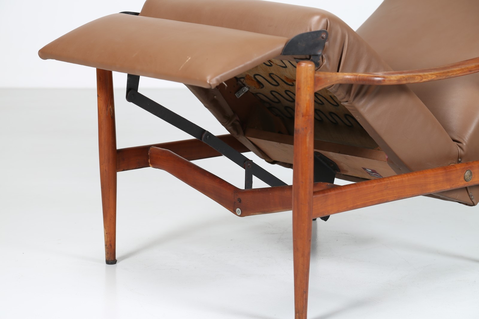 ISA BERGAMO Poltrona relax in teak e skai Poltronissima Casanova 1961. Etichetta originale presente.