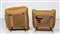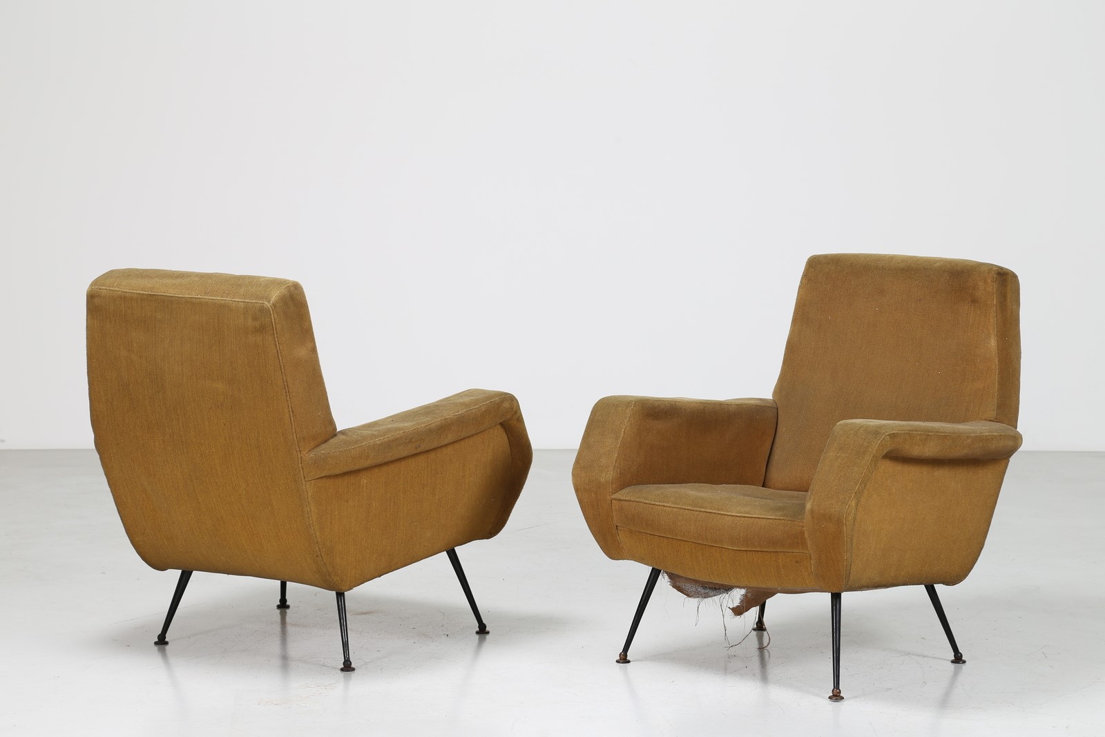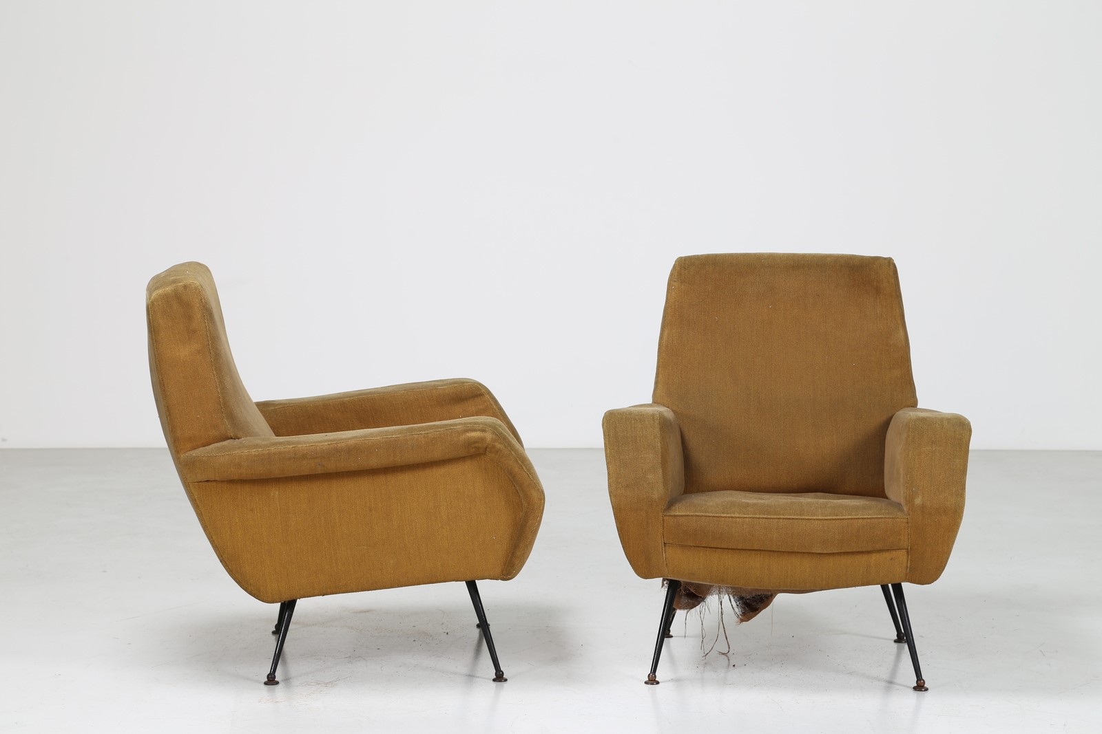 Lot 304 | MANIFATTURA ITALIANA Coppia poltrone in legno e tessuto originale, gambe in...