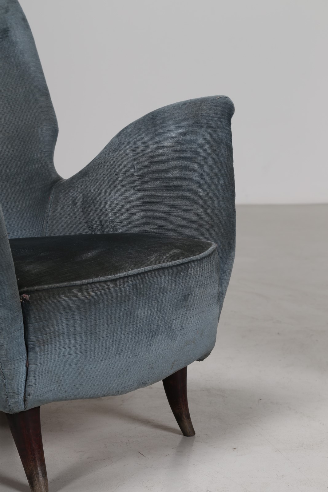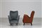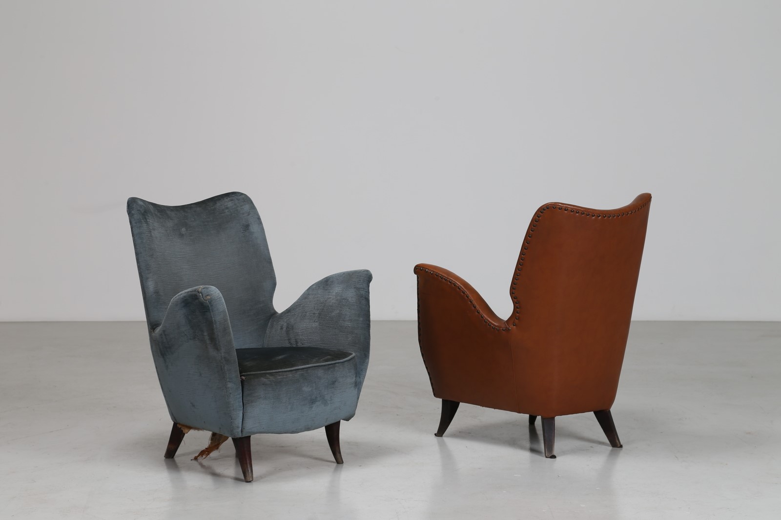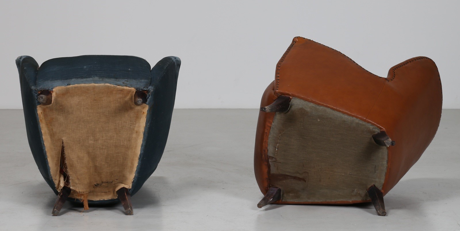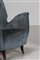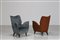 ISA BERGAMO Coppia di poltrone in legno, rivestimento originale diversi, tessuto e sky anni 50 . -. Cm 67,50 x 82,00 x 70,00.