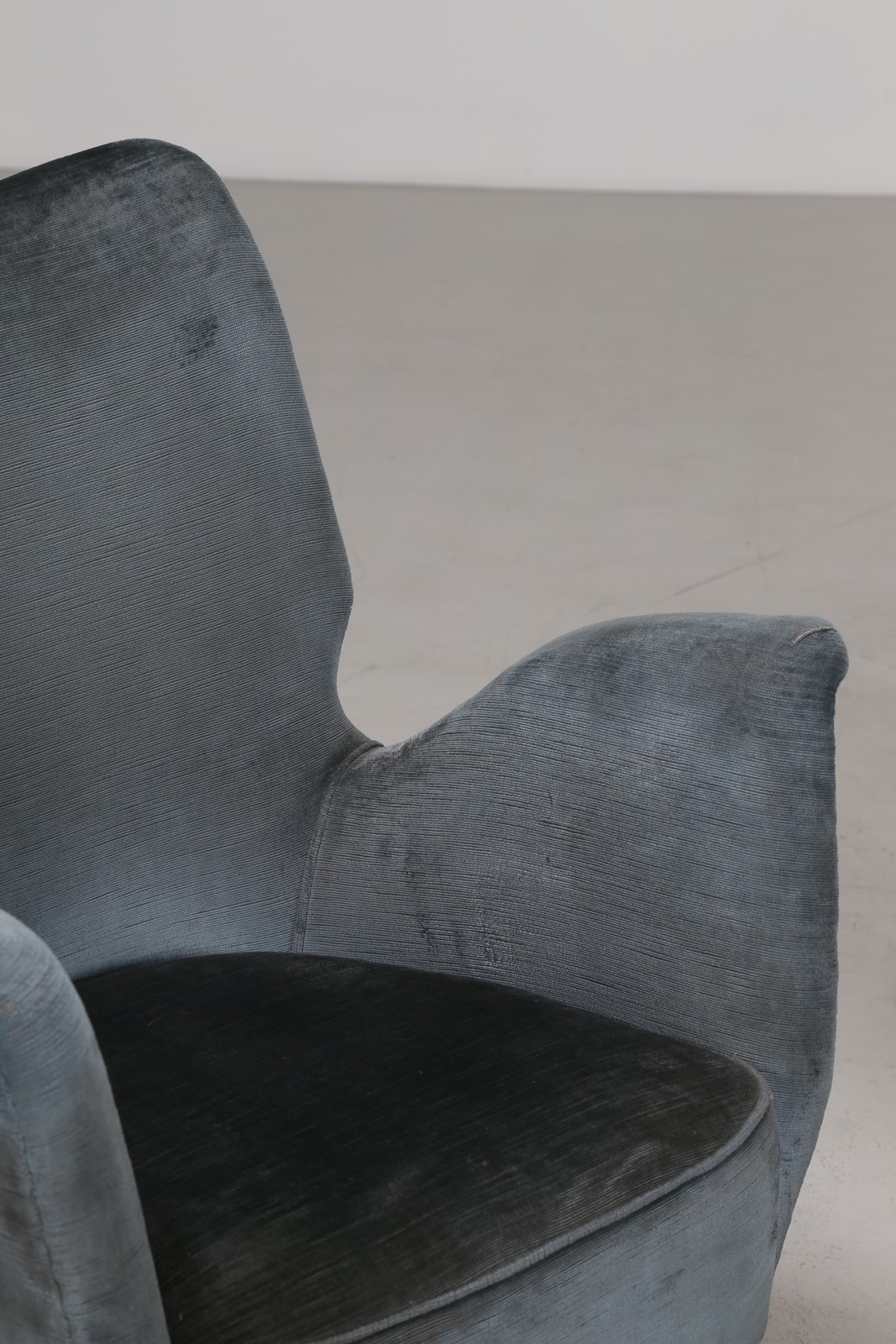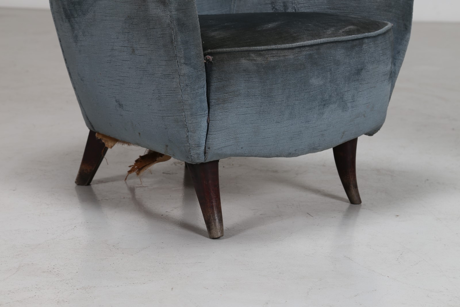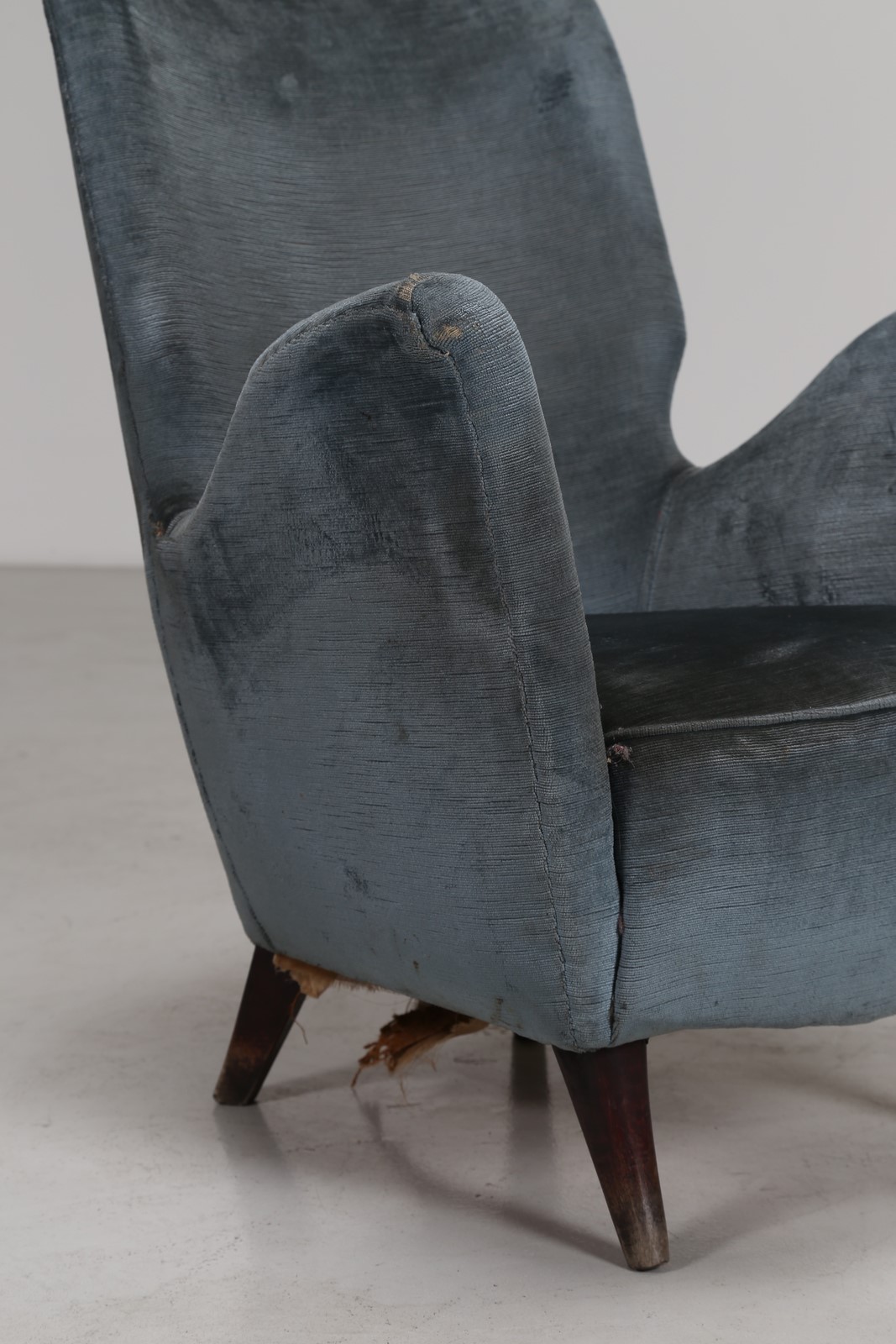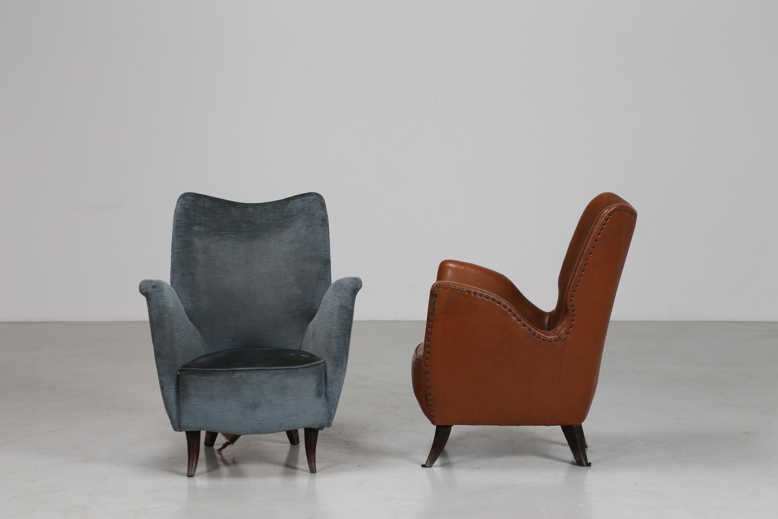 ISA BERGAMO Coppia di poltrone in legno, rivestimento originale diversi, tessuto e sky anni 50 . -. Cm 67,50 x 82,00 x 70,00.