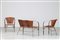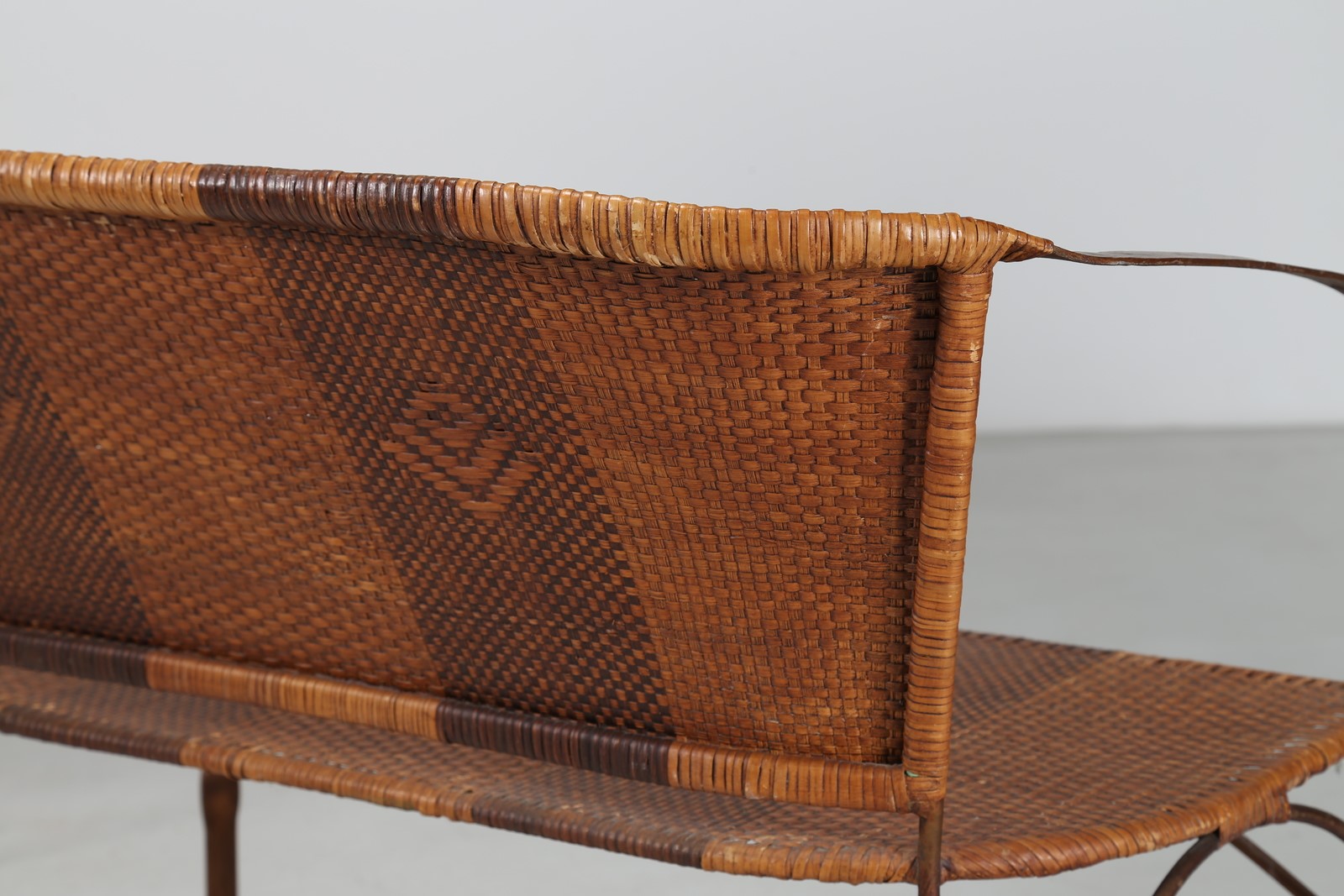 MANIFATTURA ITALIANA Un divanetto e due poltrone in ottone e midollino, anni 50. -. . Misura divanetto: 80 x 102 x 62