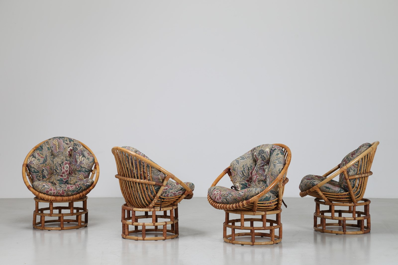 MANIFATTURA ITALIANA Quattro poltrone in rattan, anni 60. -. Cm 74,00 x 84,00...