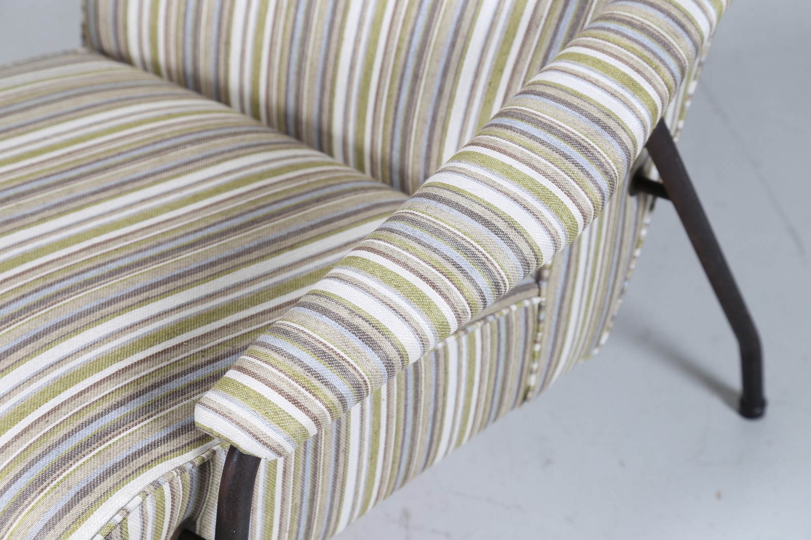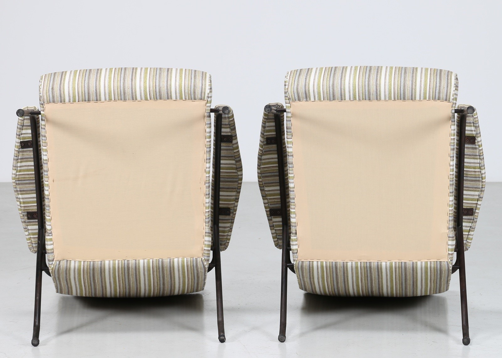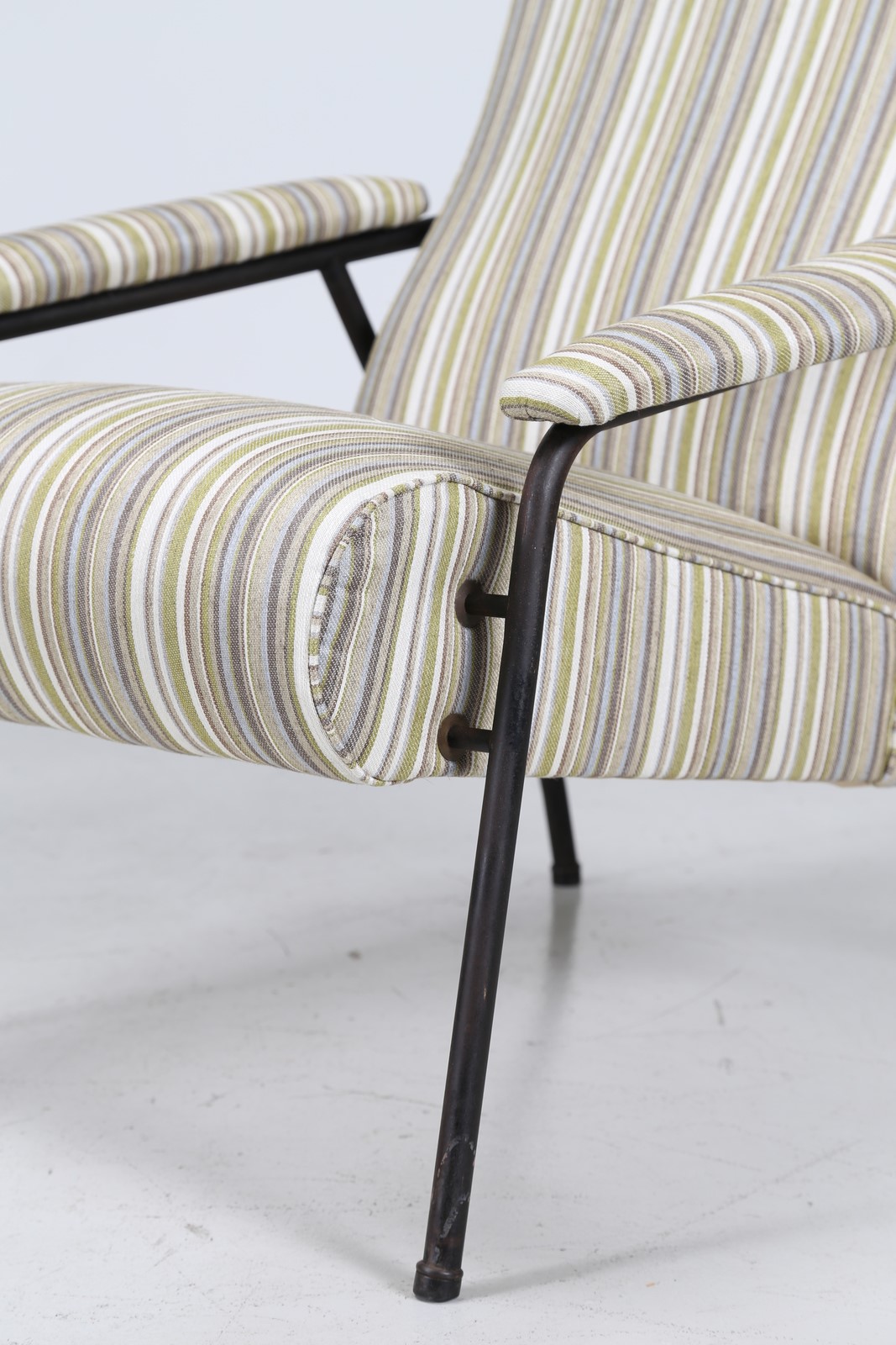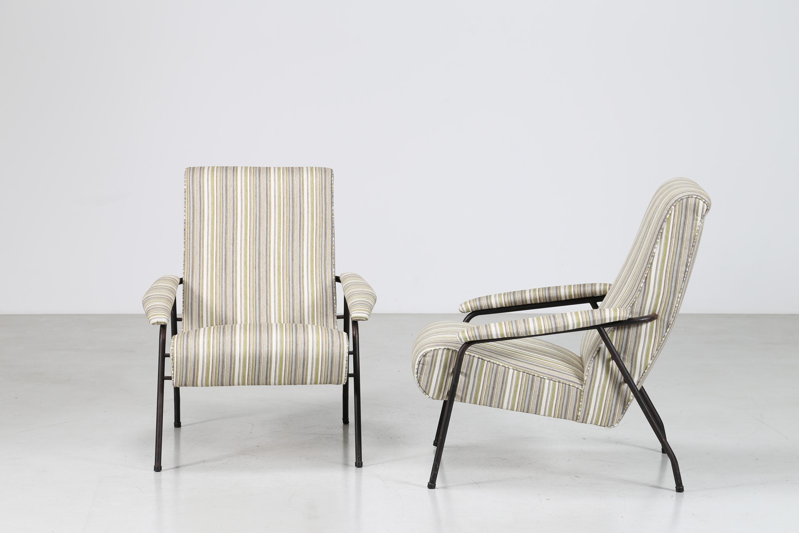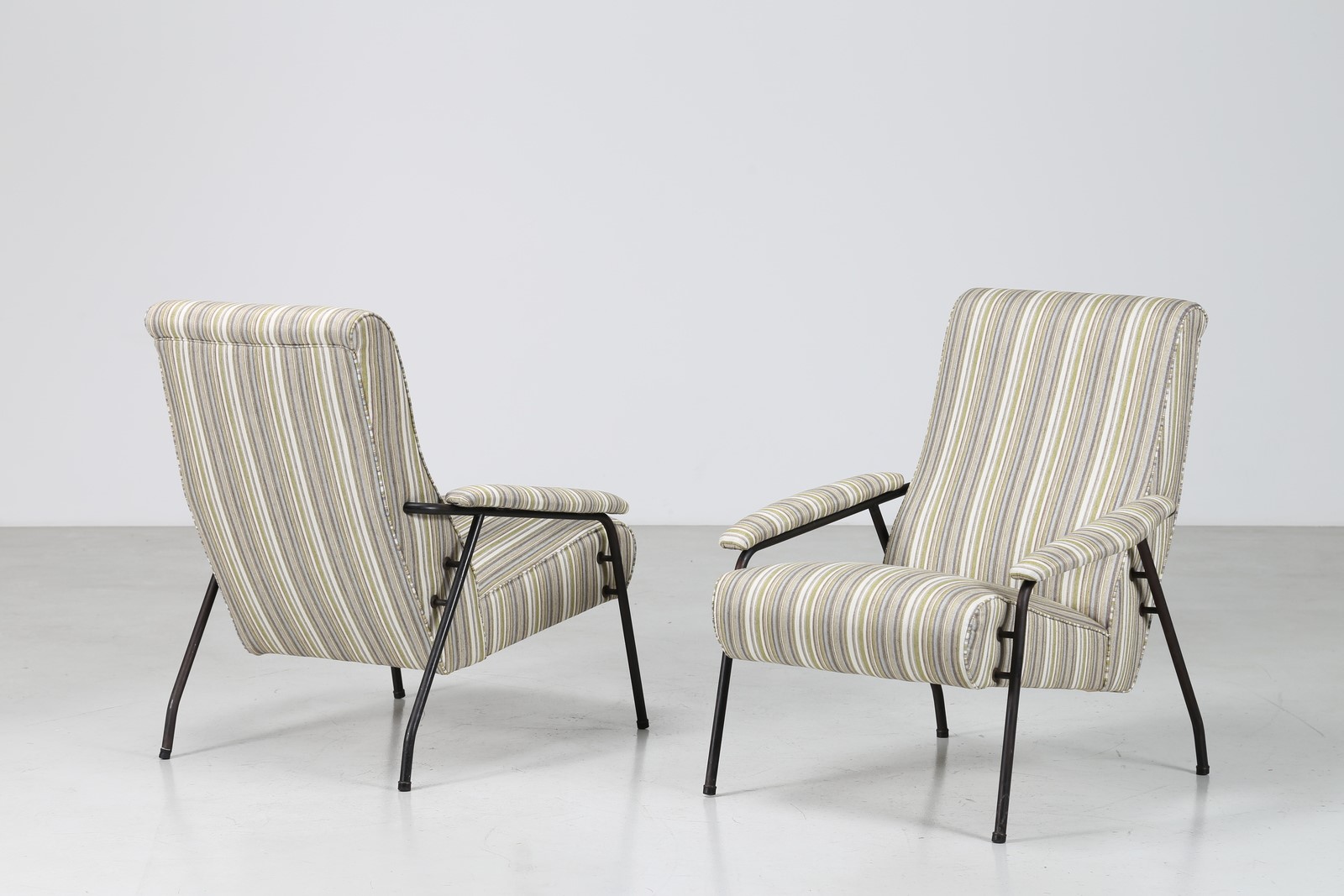 MANIFATTURA ITALIANA Coppia di poltrone in tessuto e metallo laccato, anni...