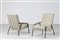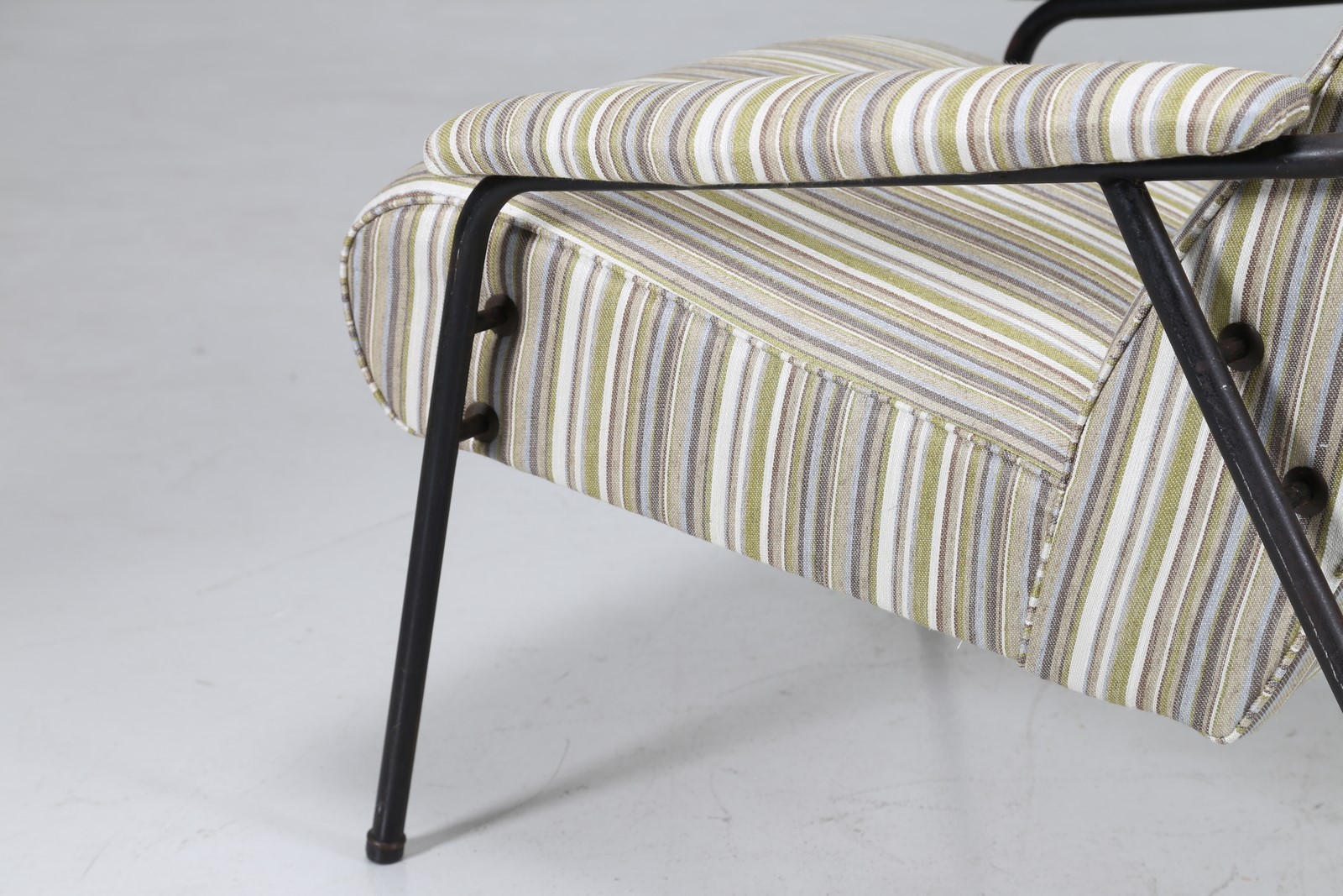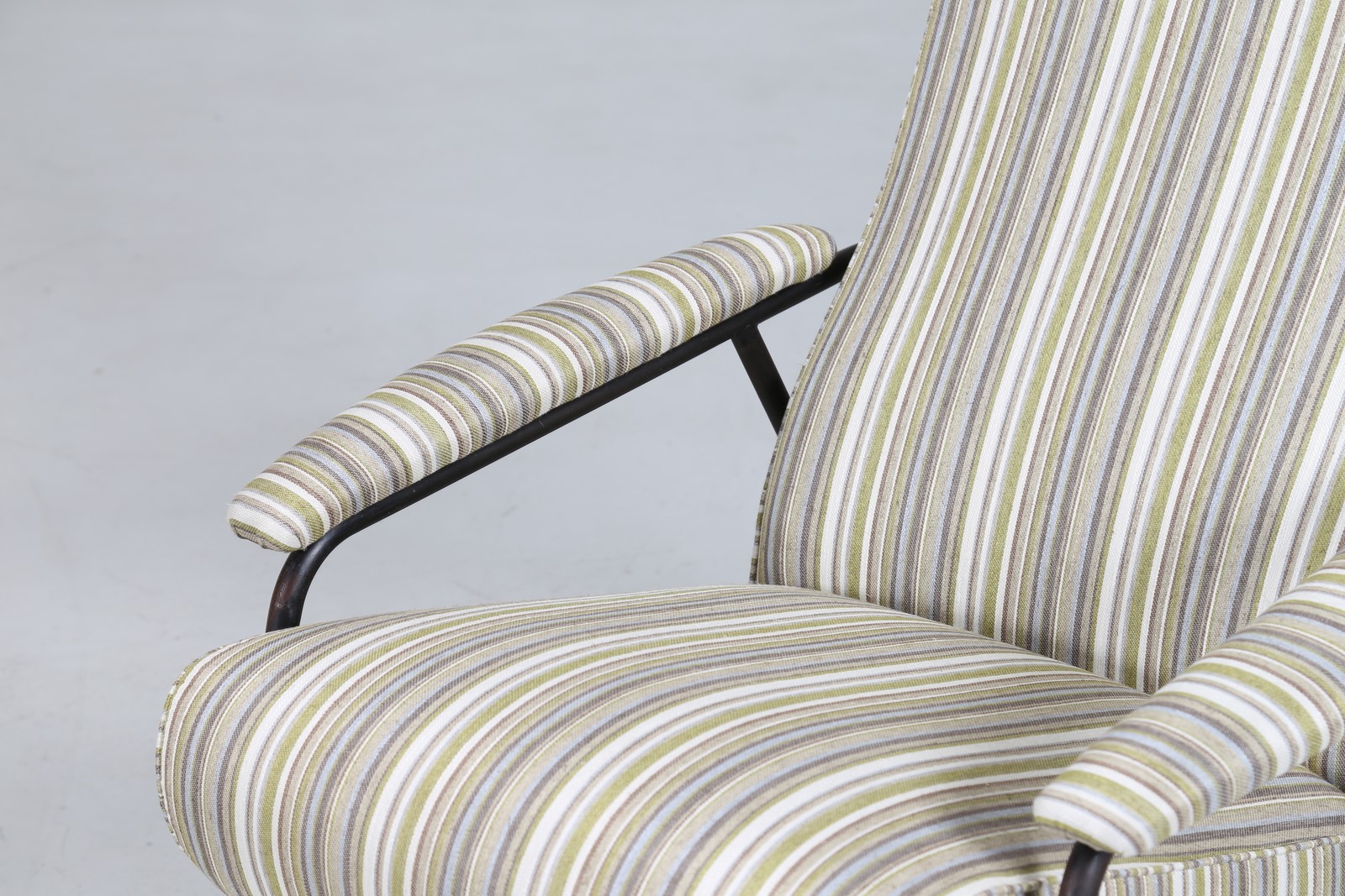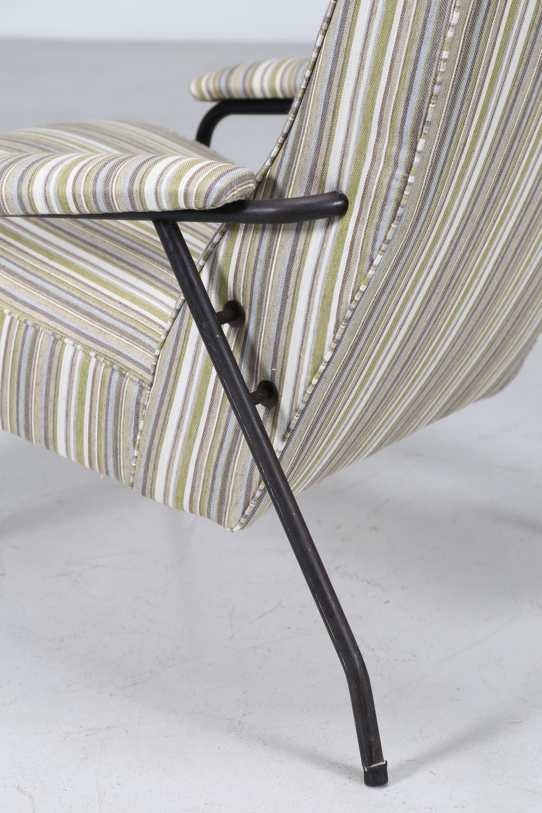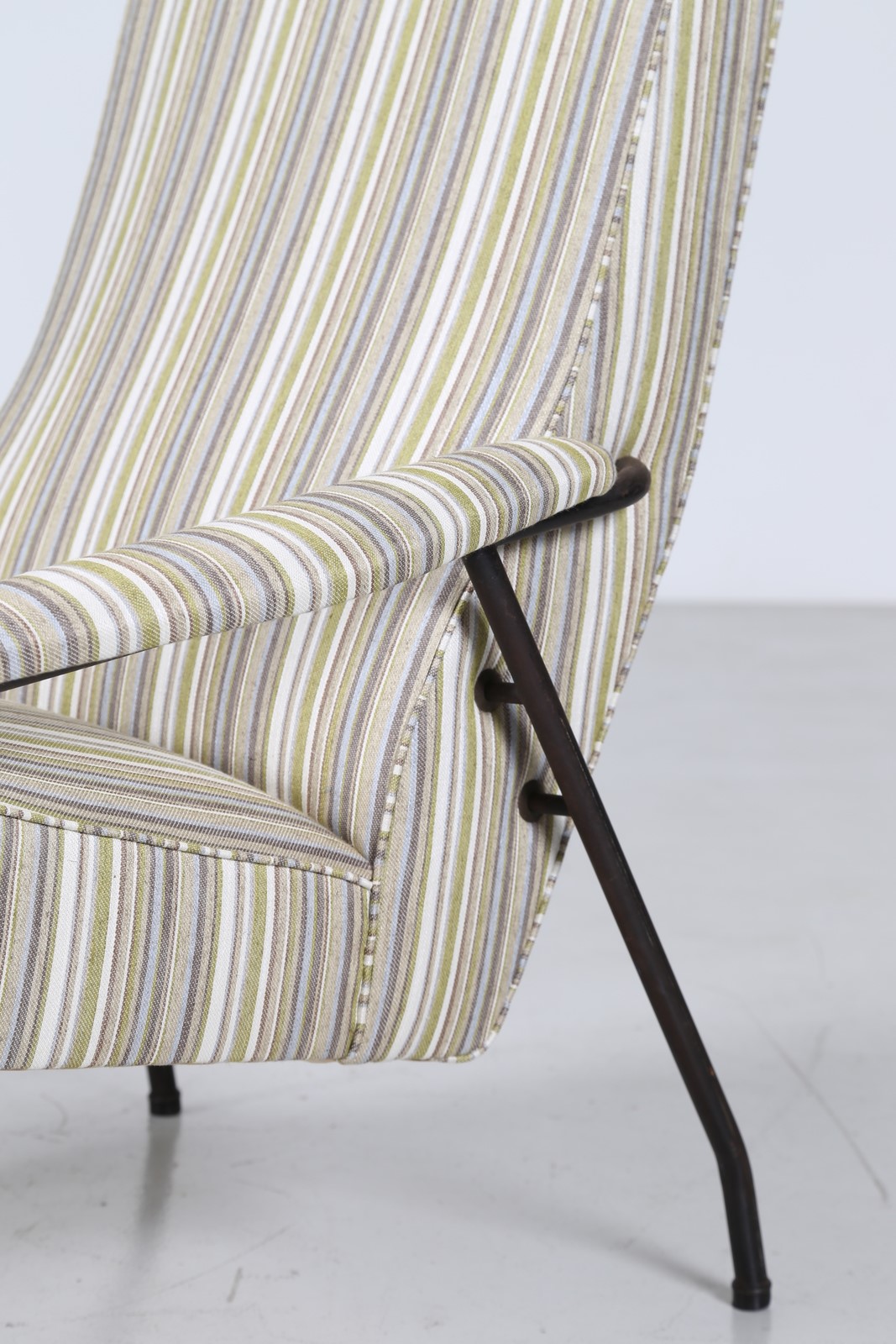 MANIFATTURA ITALIANA Coppia di poltrone in tessuto e metallo laccato, anni...
