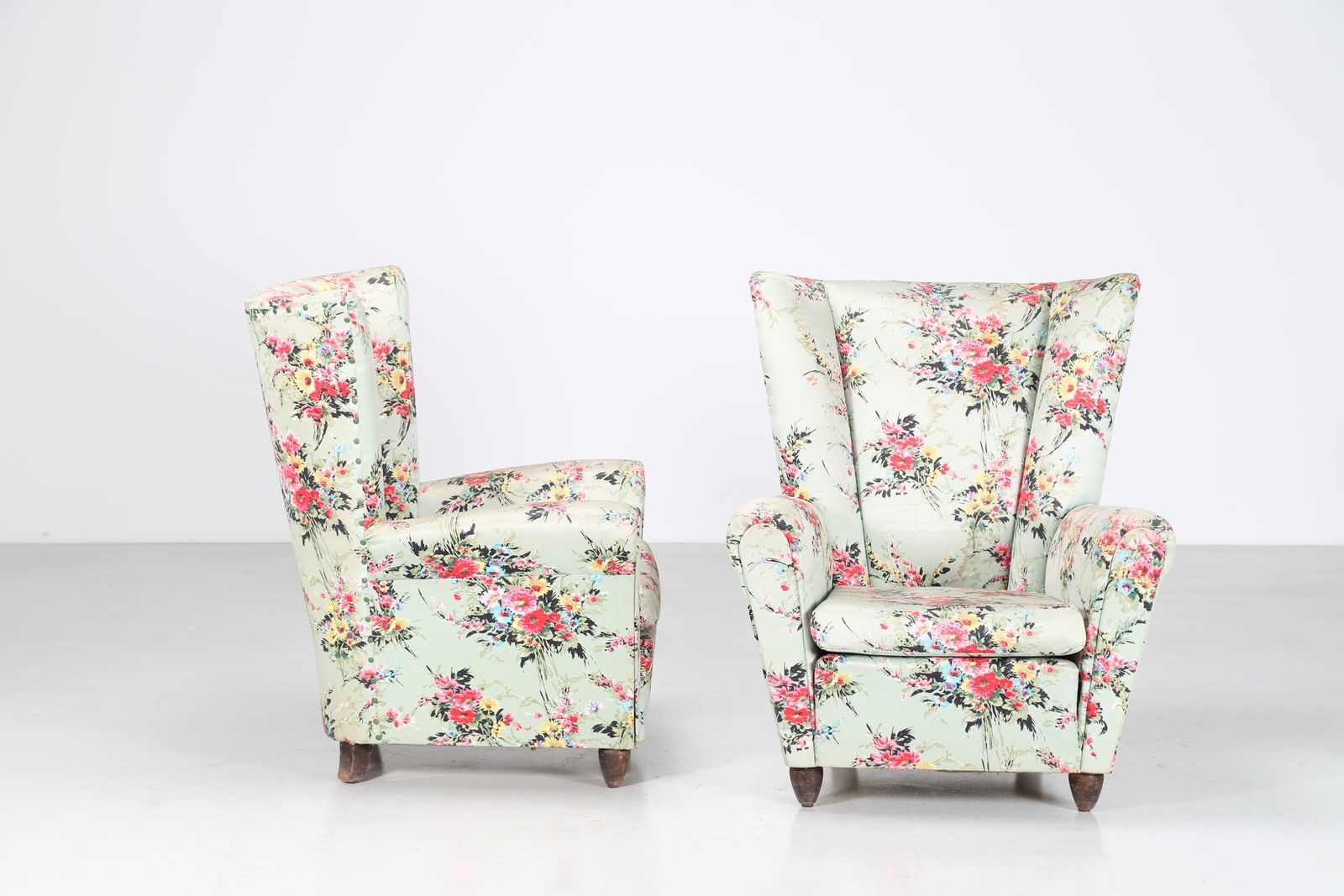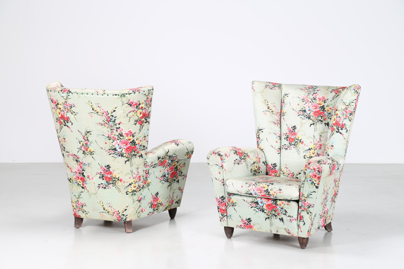 BUFFA PAOLO (1903 - 1970) Coppia di poltrone in legno e tessuto, anni 50. -. Cm 89,00 x 104,50 x 88,00.