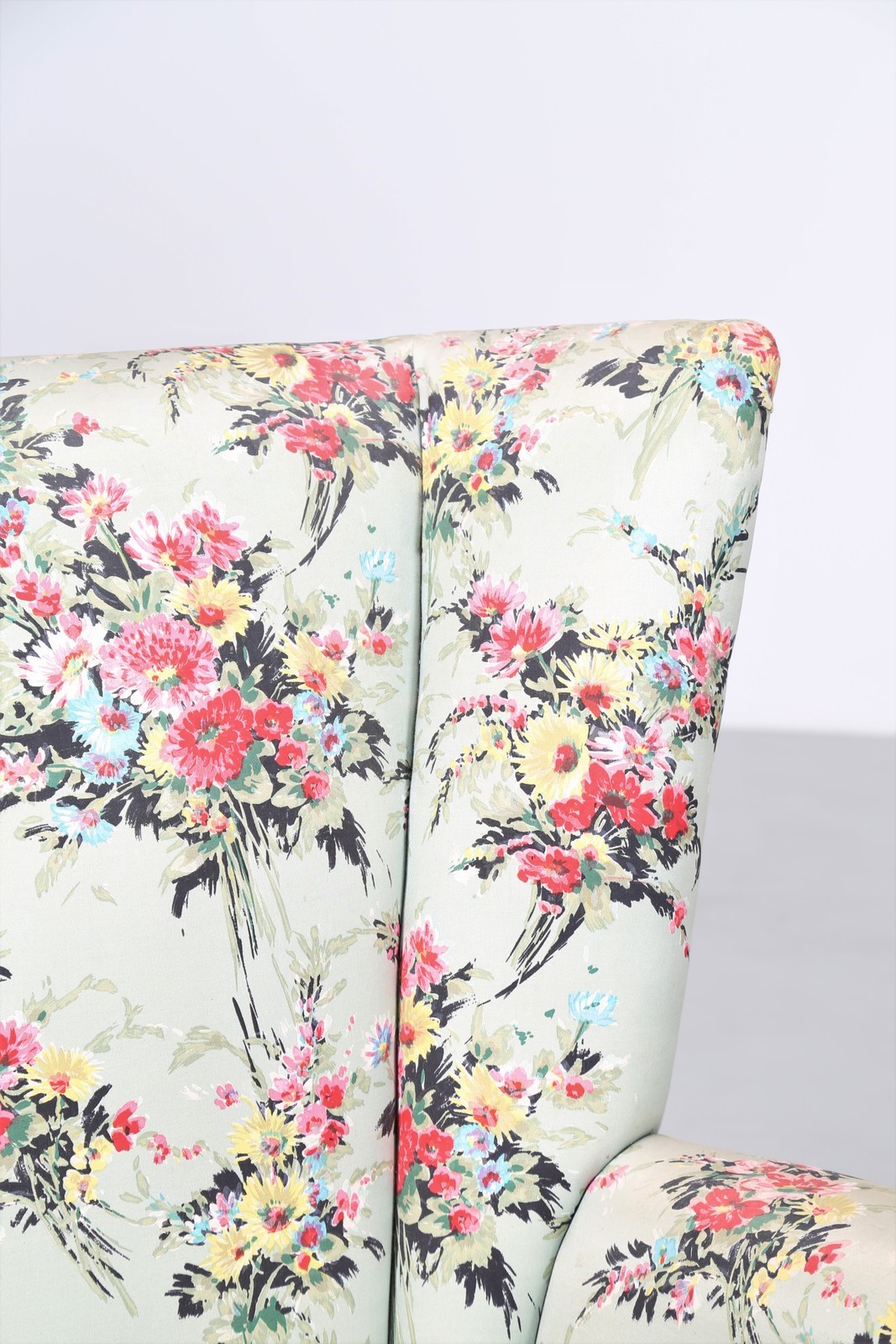 BUFFA PAOLO (1903 - 1970) Coppia di poltrone in legno e tessuto, anni 50. -....
