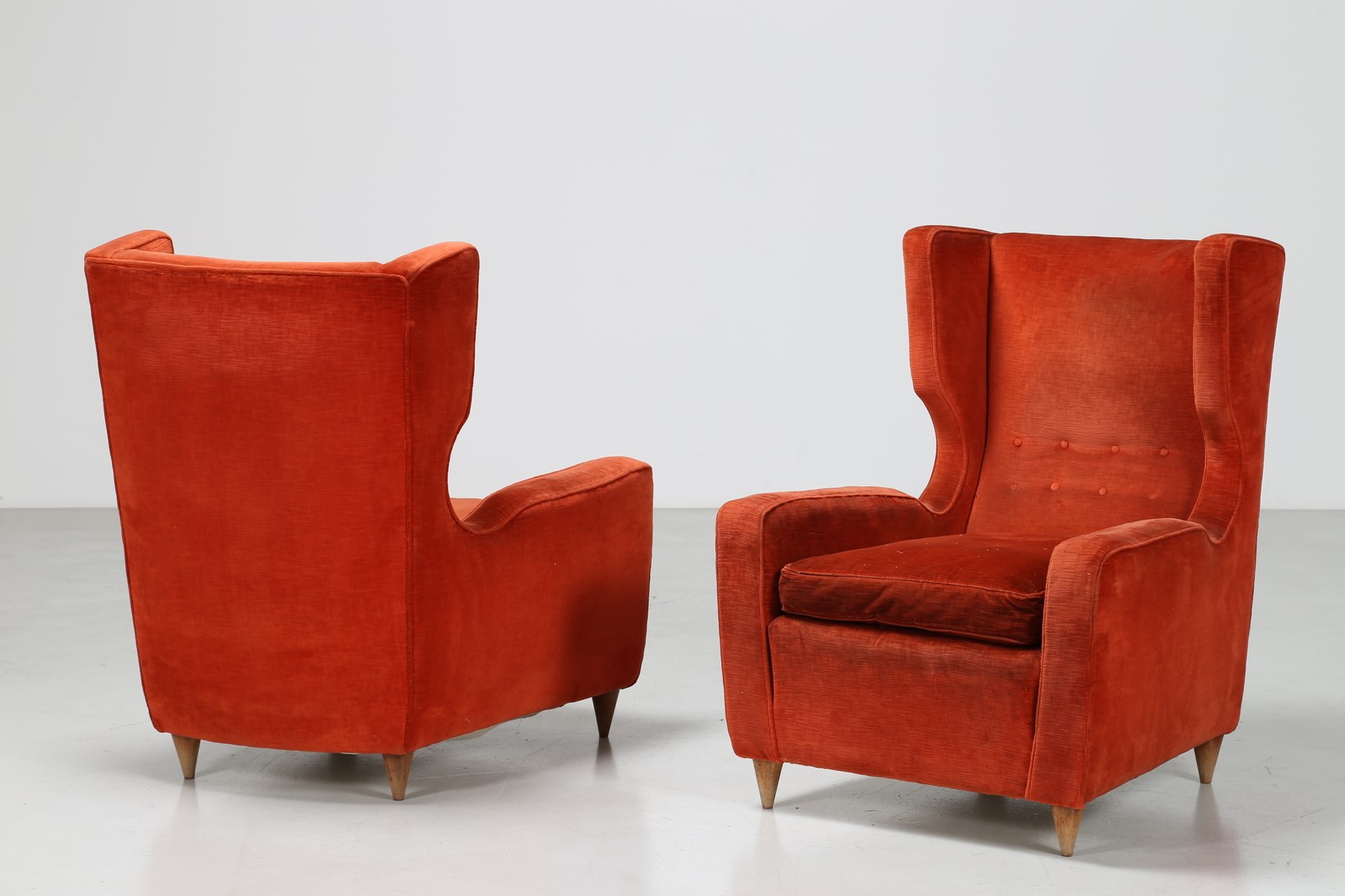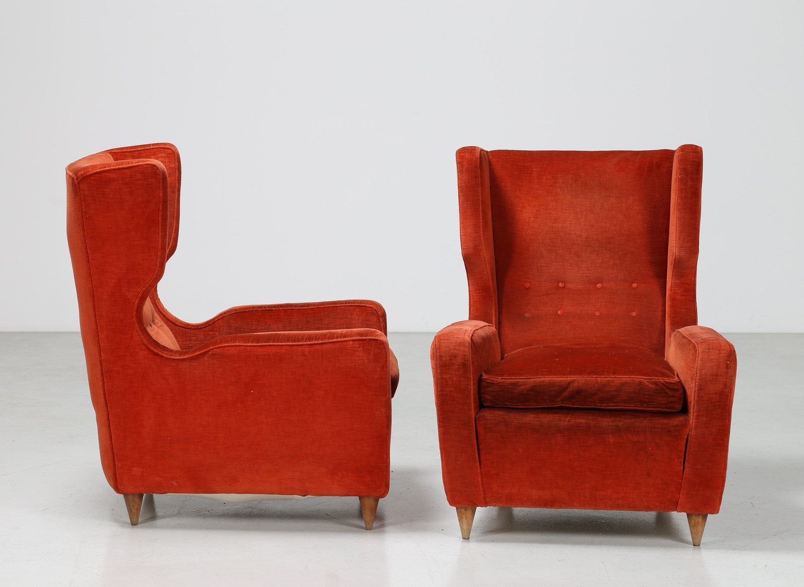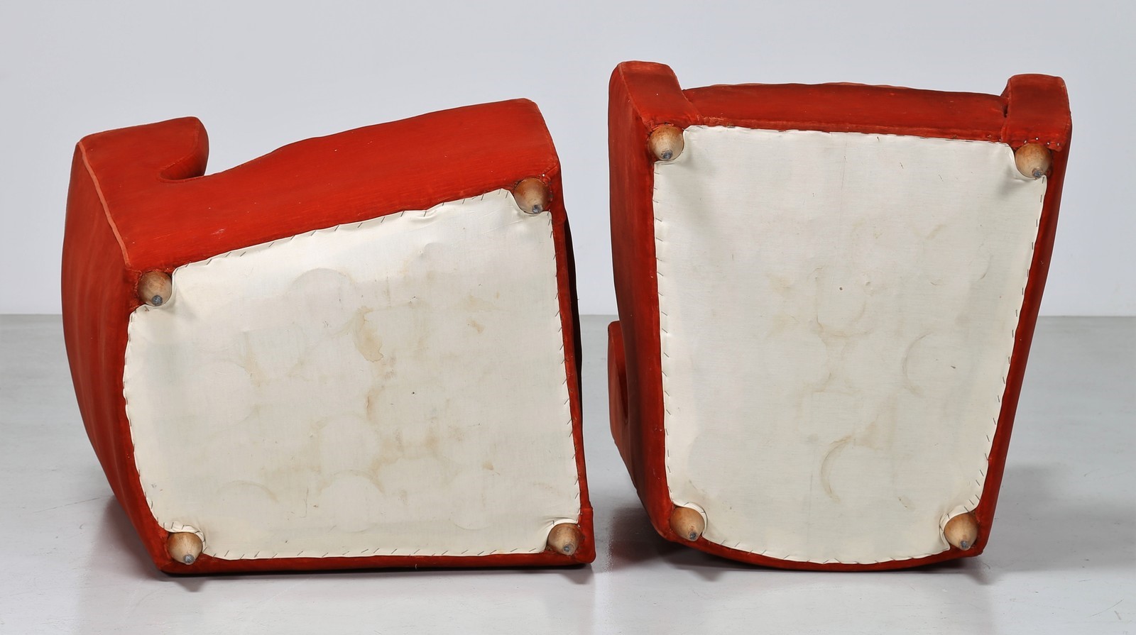 BEGA MELCHIORRE (1898 - 1976) Coppia di poltrone in legno e tessuto,...