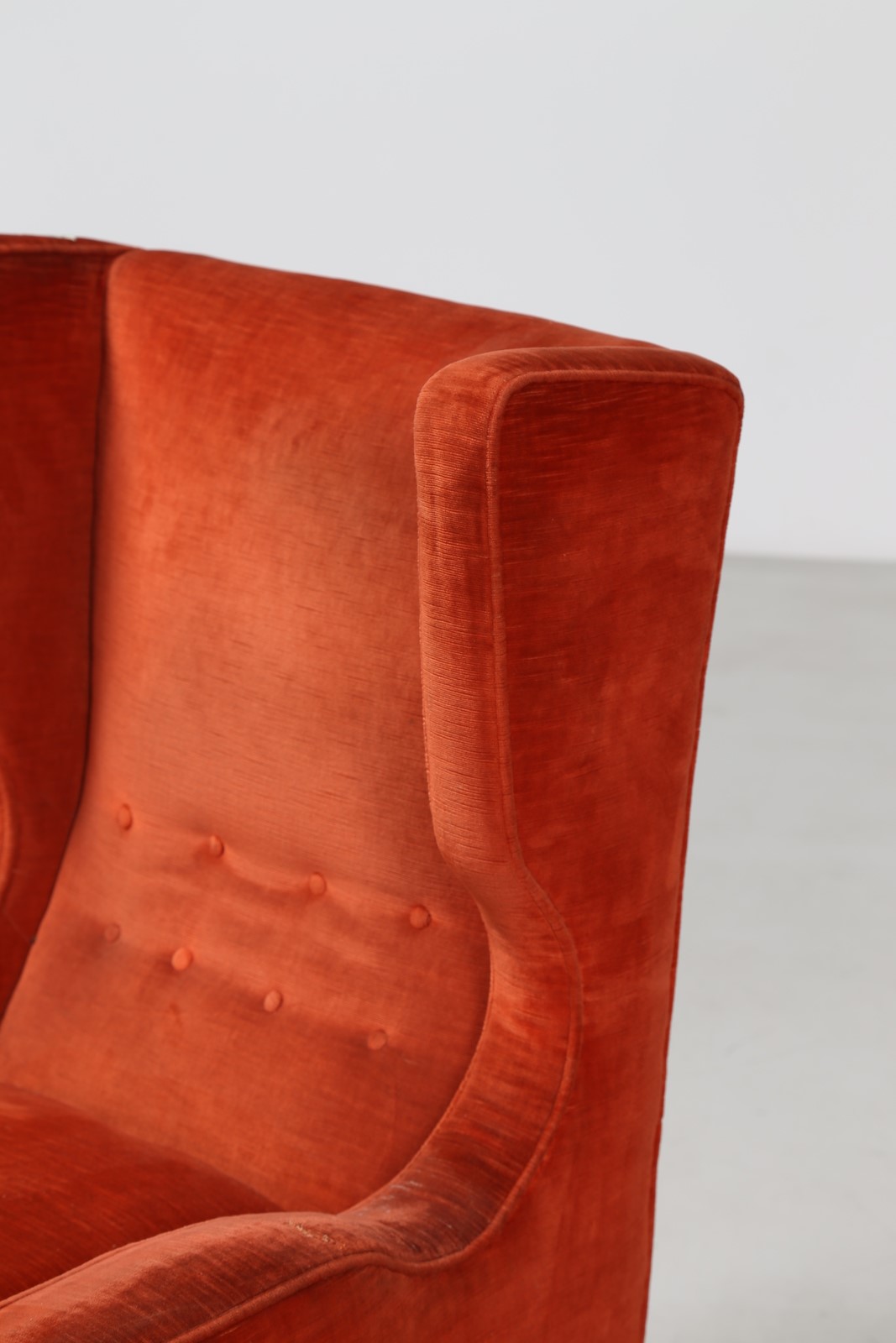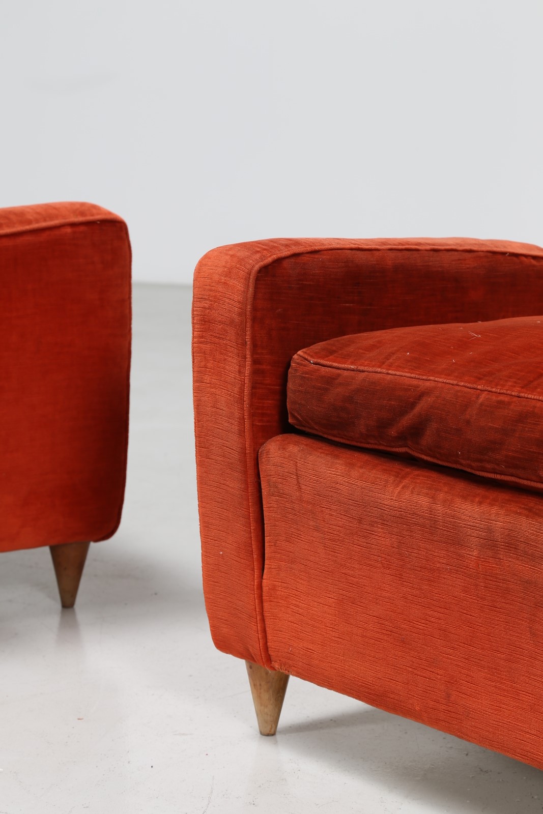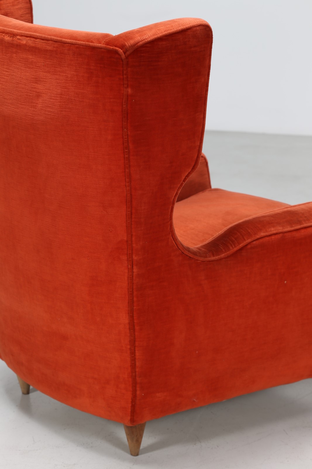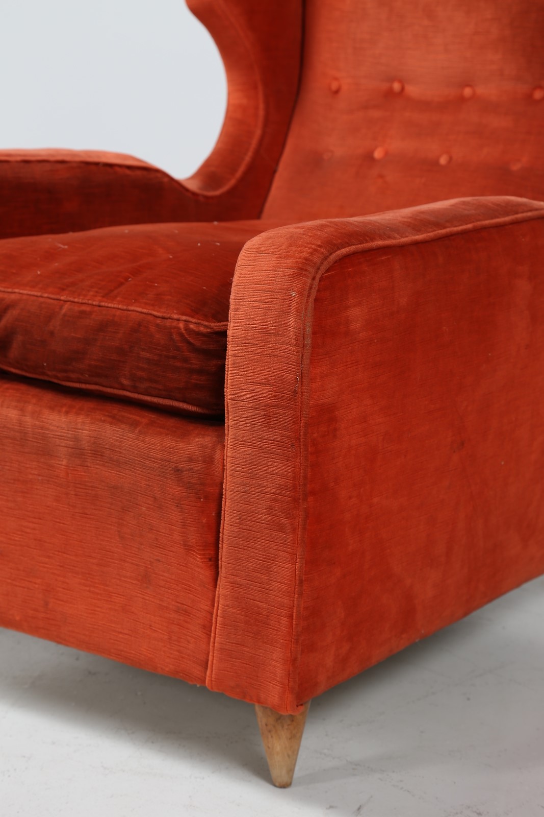 BEGA MELCHIORRE (1898 - 1976) Coppia di poltrone in legno e tessuto,...
