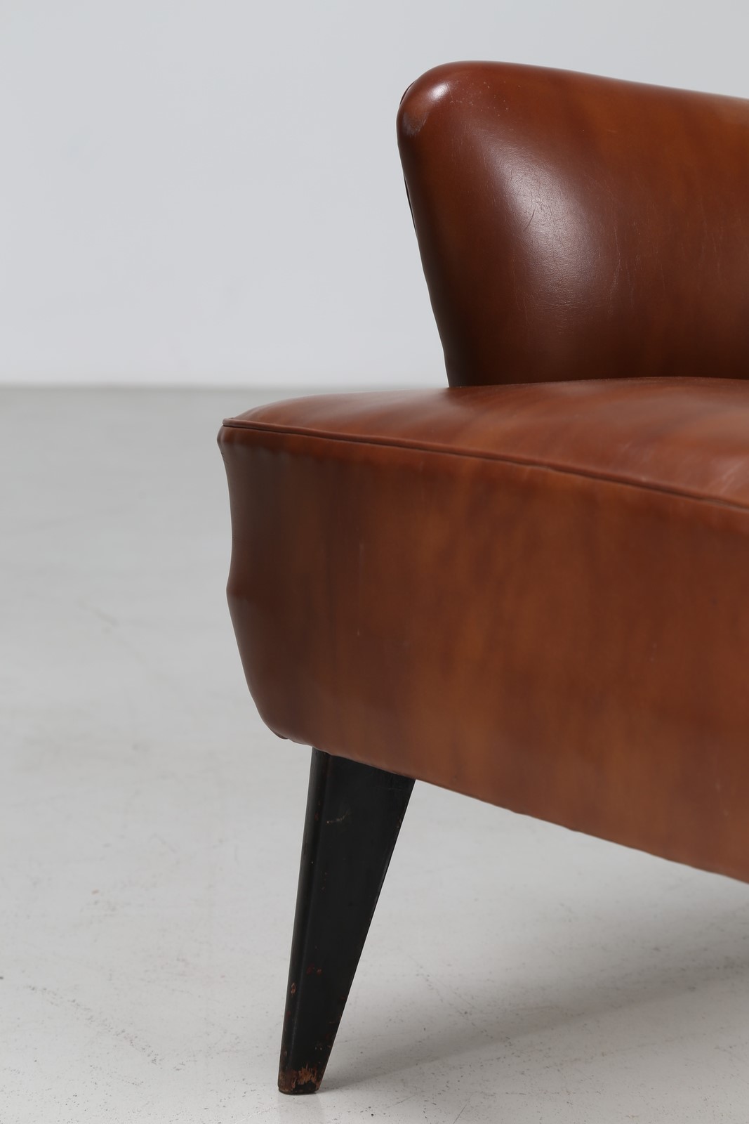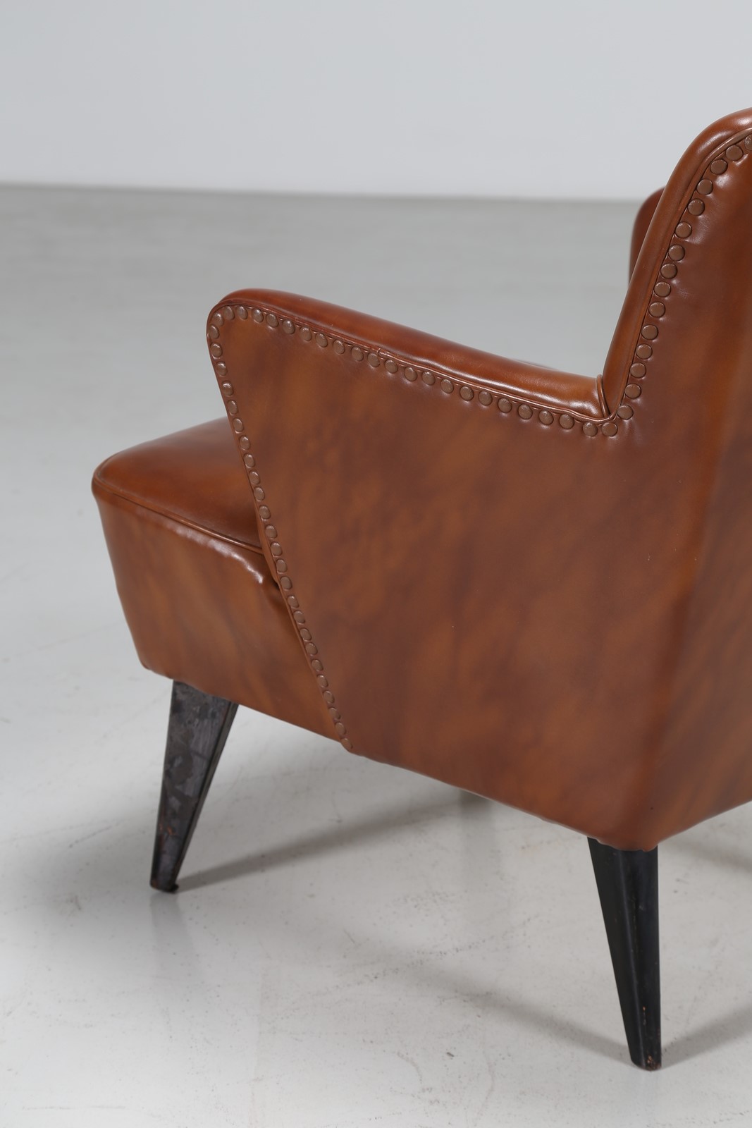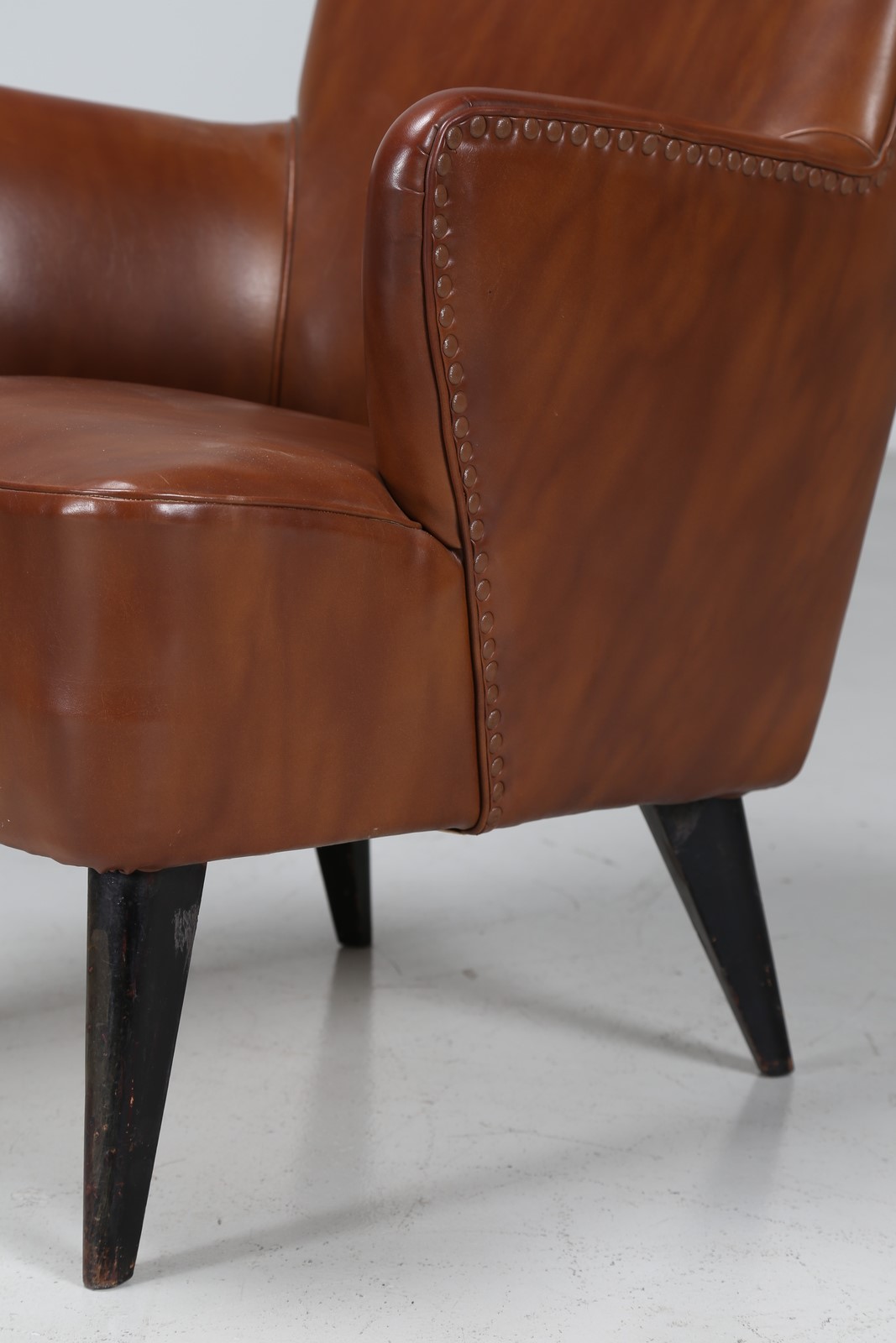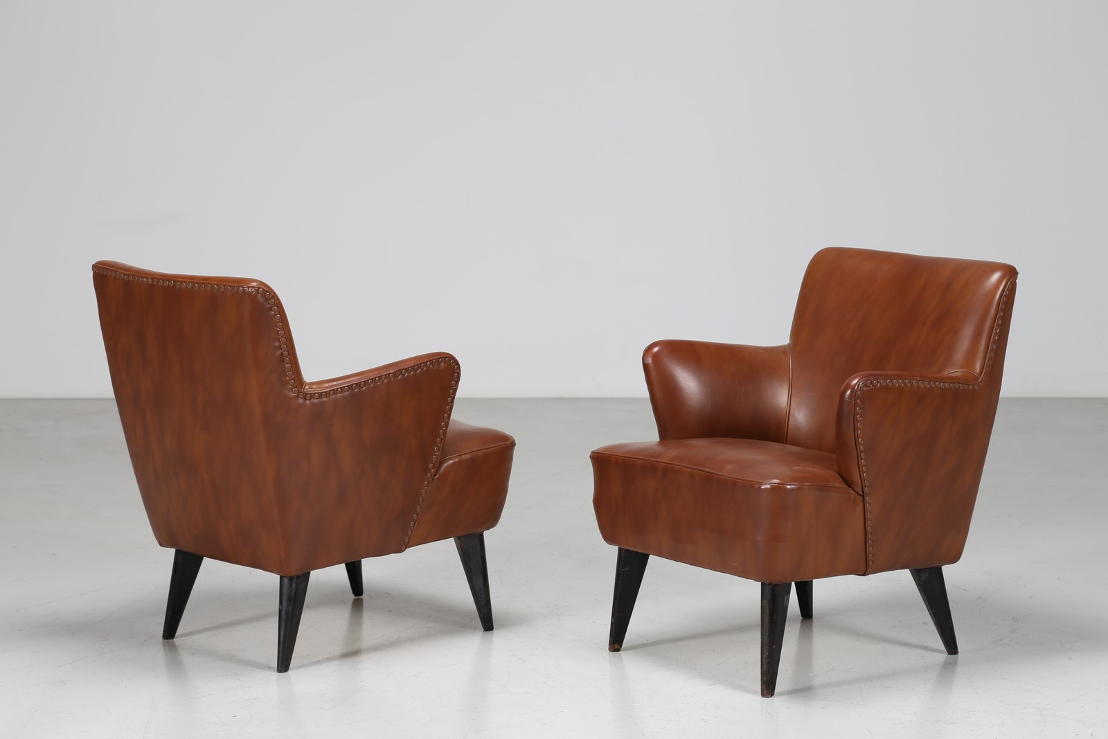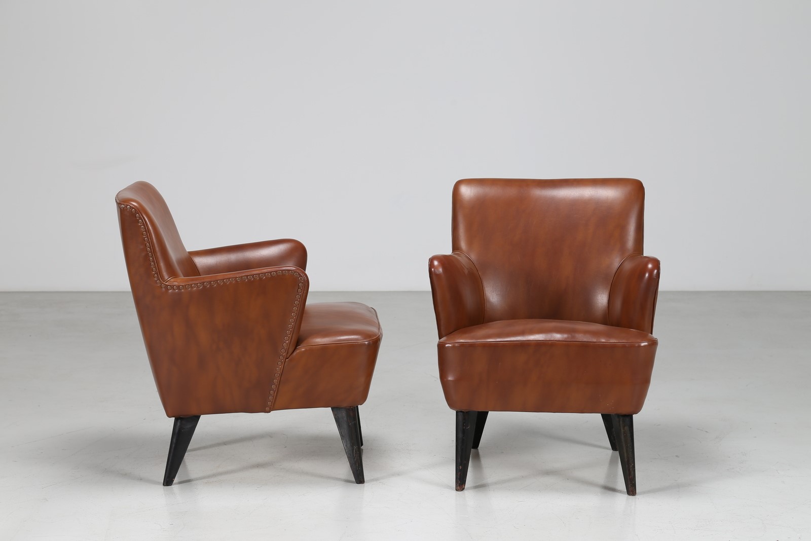 PULITZER FINALI GUSTAVO (1887 - 1967) Coppia poltroncine in skai e legno ebanizzato, per Cassina anni 50. -. Cm 62,00 x 78,00 x 72,00.