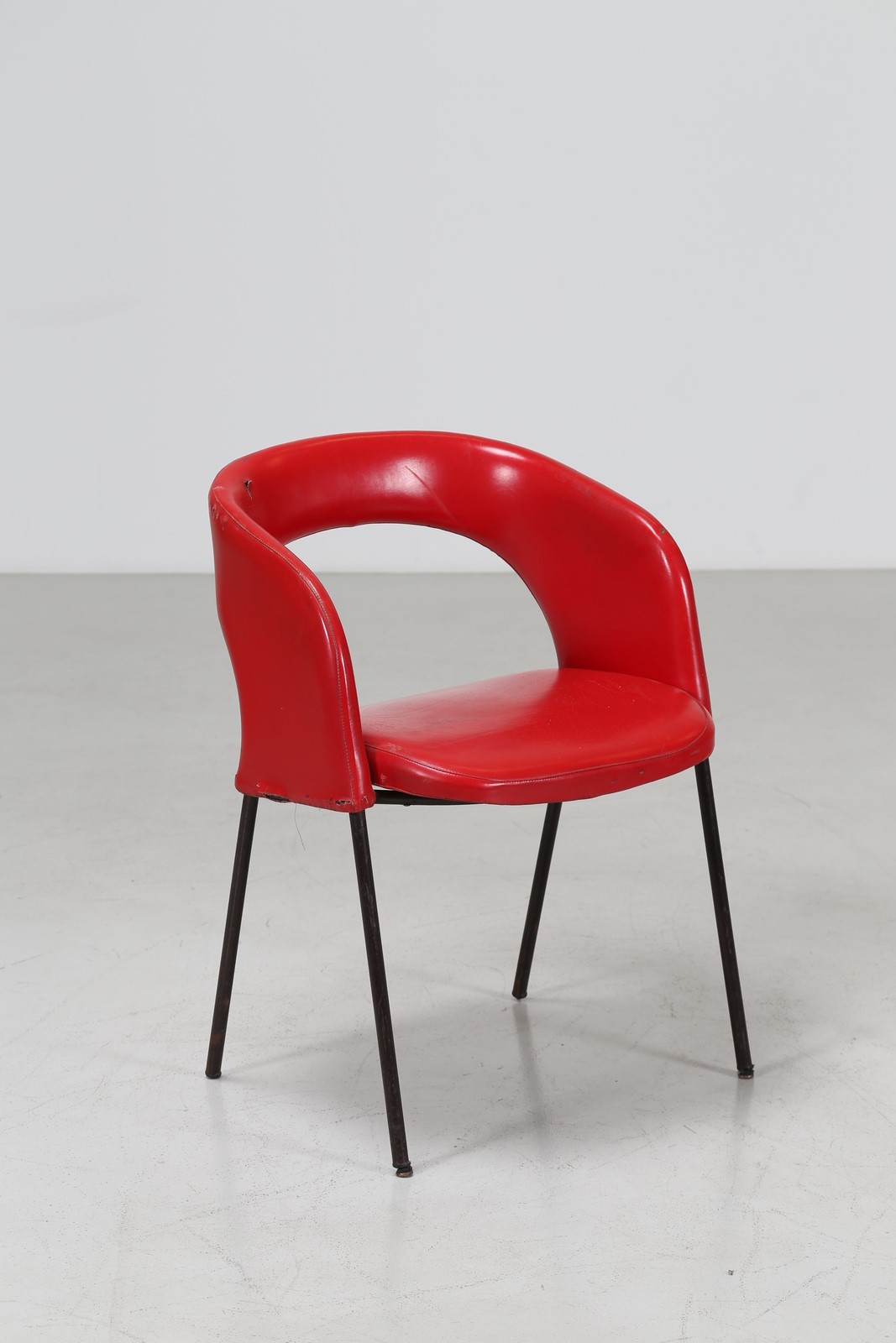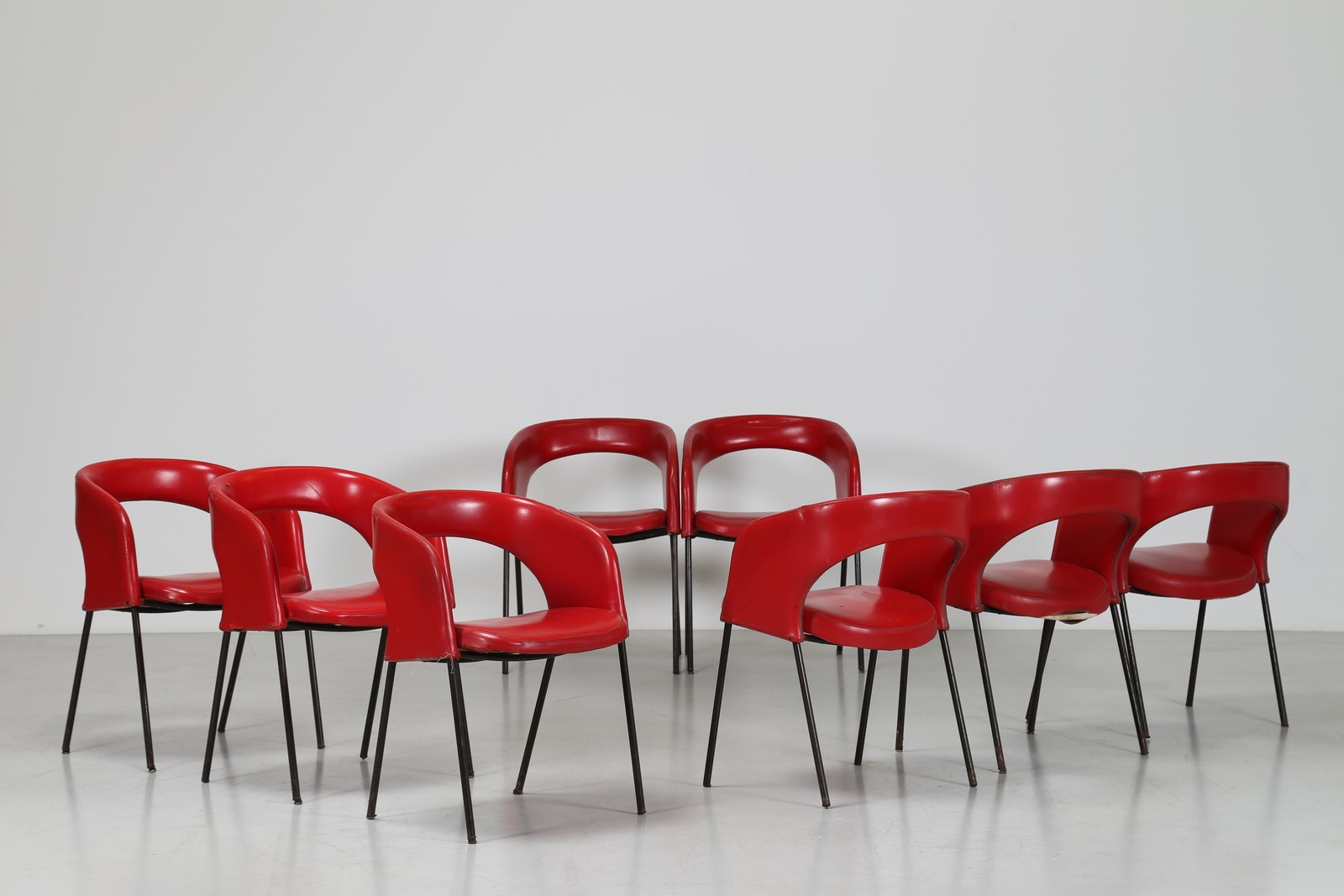RINALDI GASTONE Otto poltroncine in tondino di metallo e sky modello P34, per...