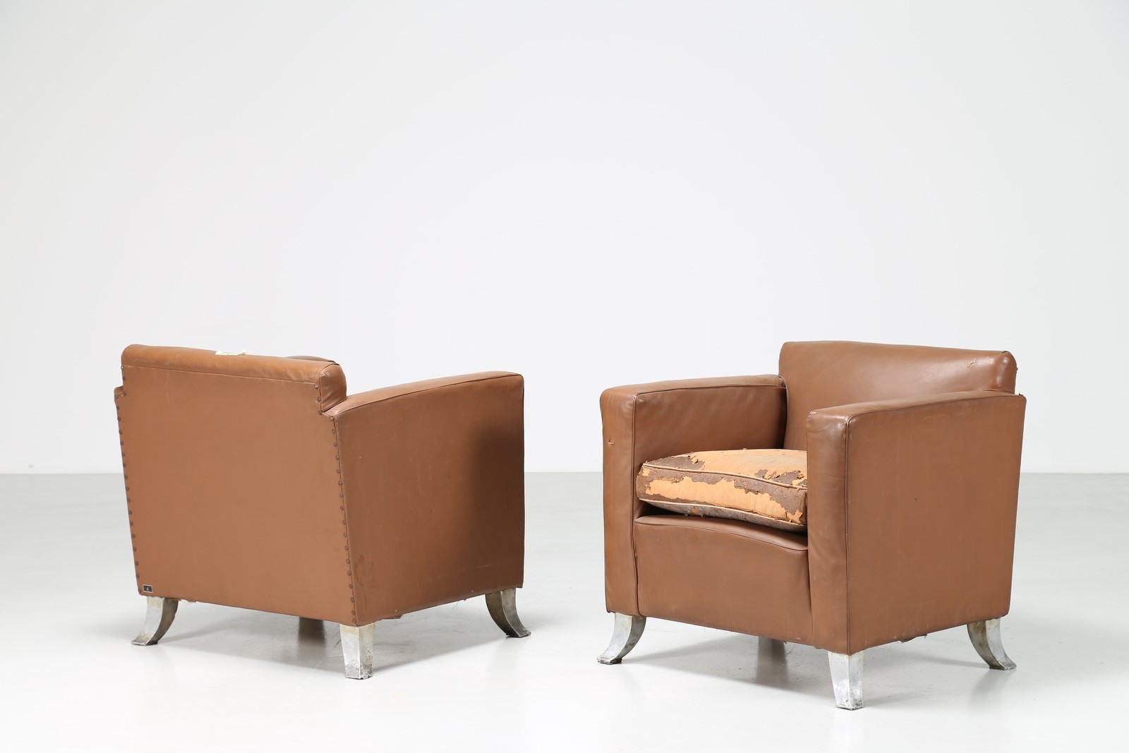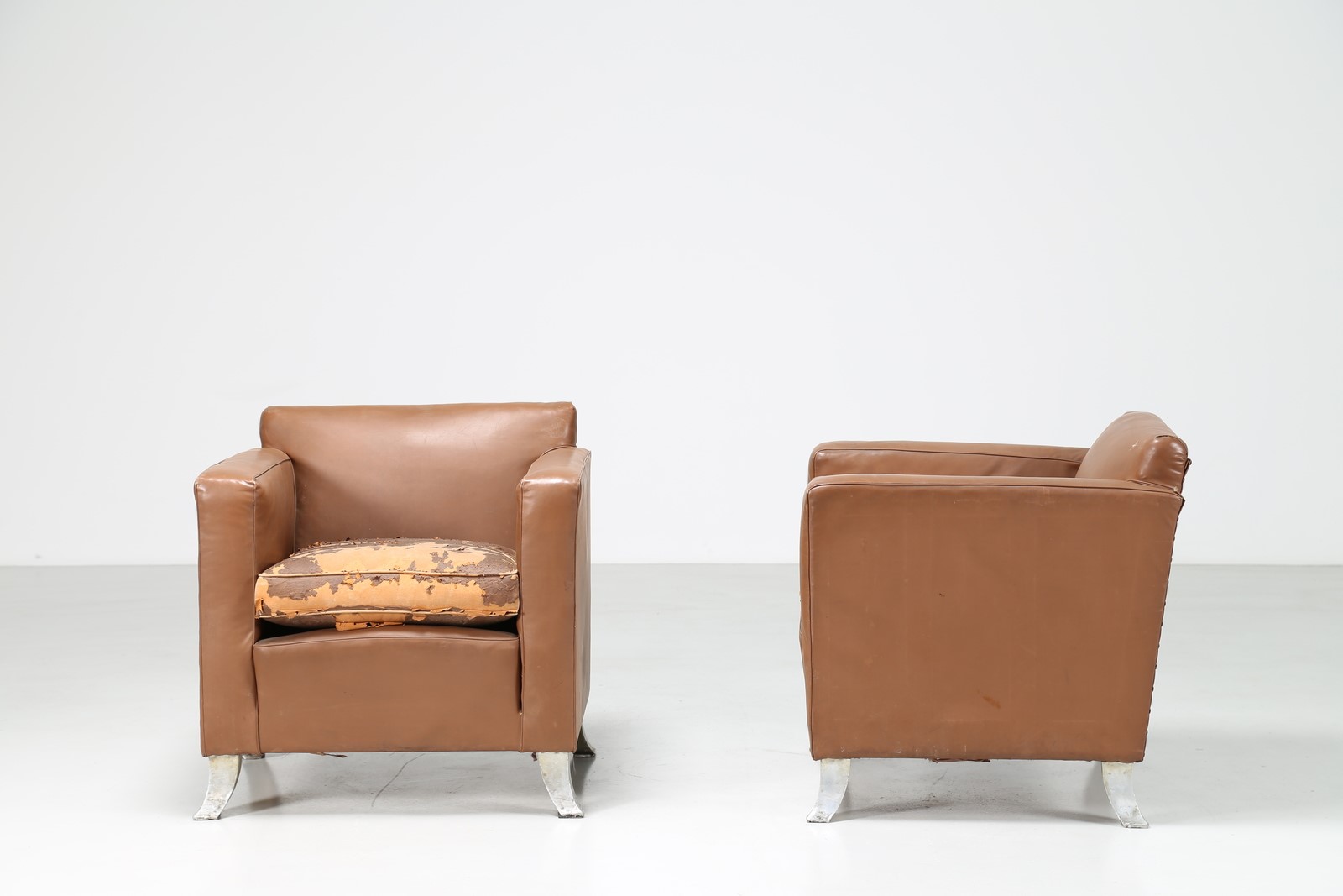 MANIFATTURA ITALIANA Coppia di poltrone in alluminio e sky, anni 50. -. Cm 77,00 x 77,00 x 76,00.