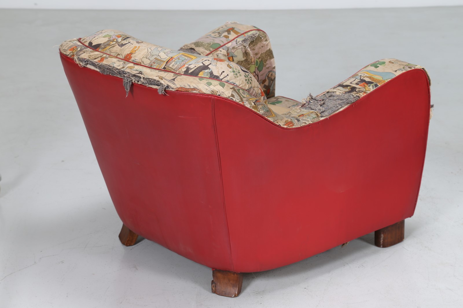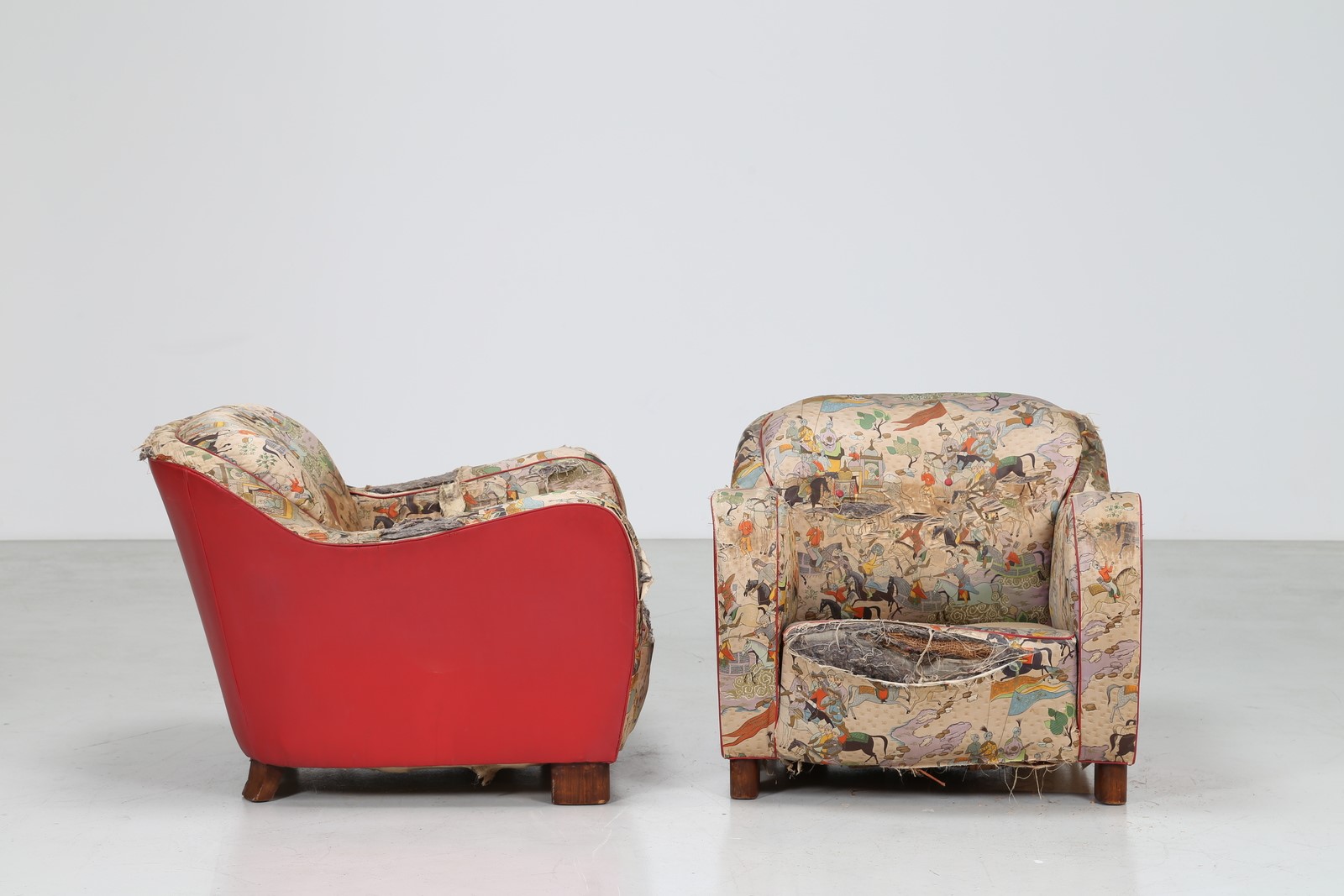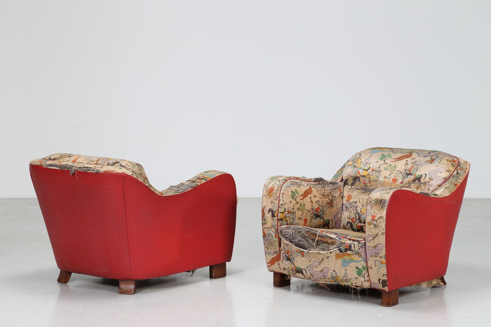 GELLNER EDOARDO (1909 - 2004) Coppia di poltrone in legno, skai e tessuto originale, anni 40. -. Cm 78,00 x 67,00 x 95,00.