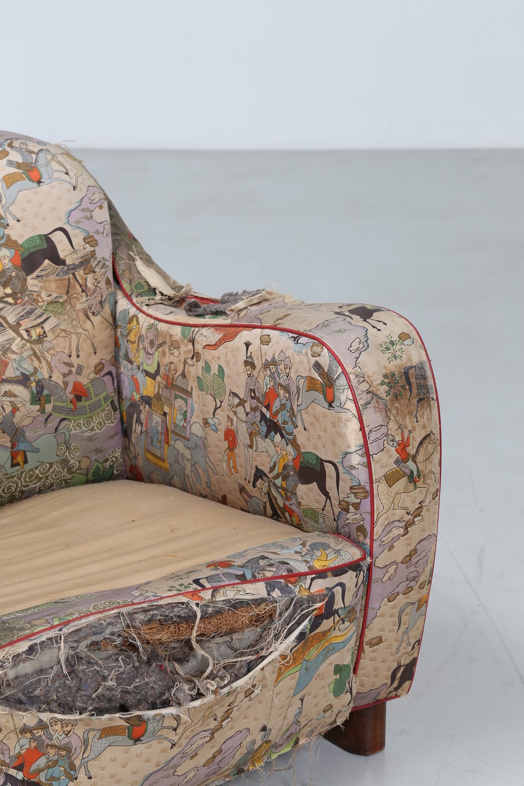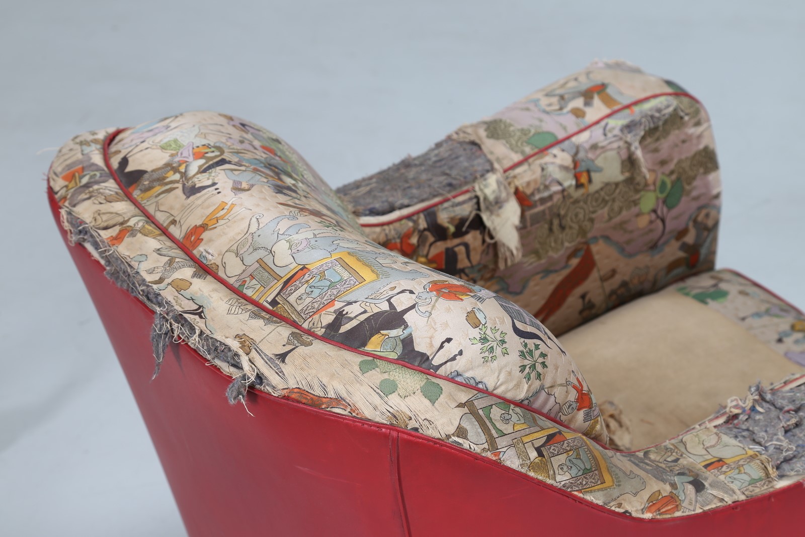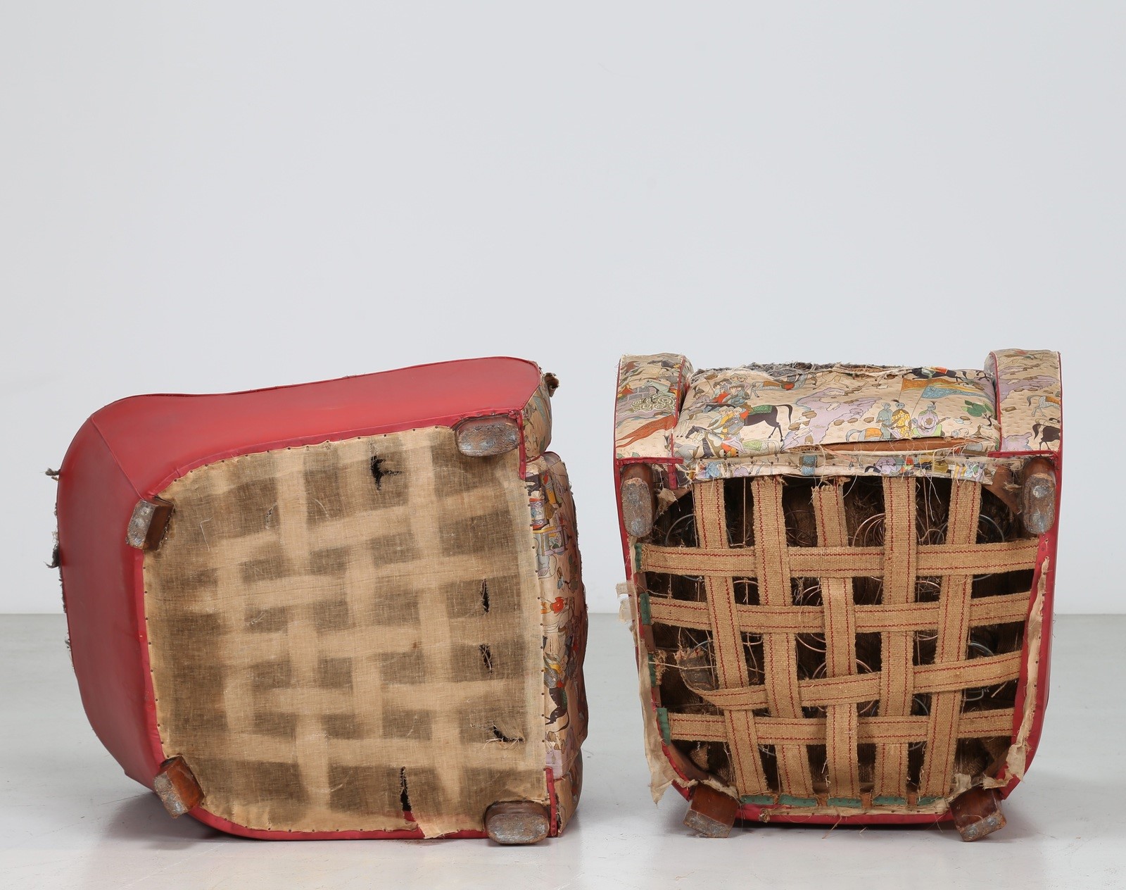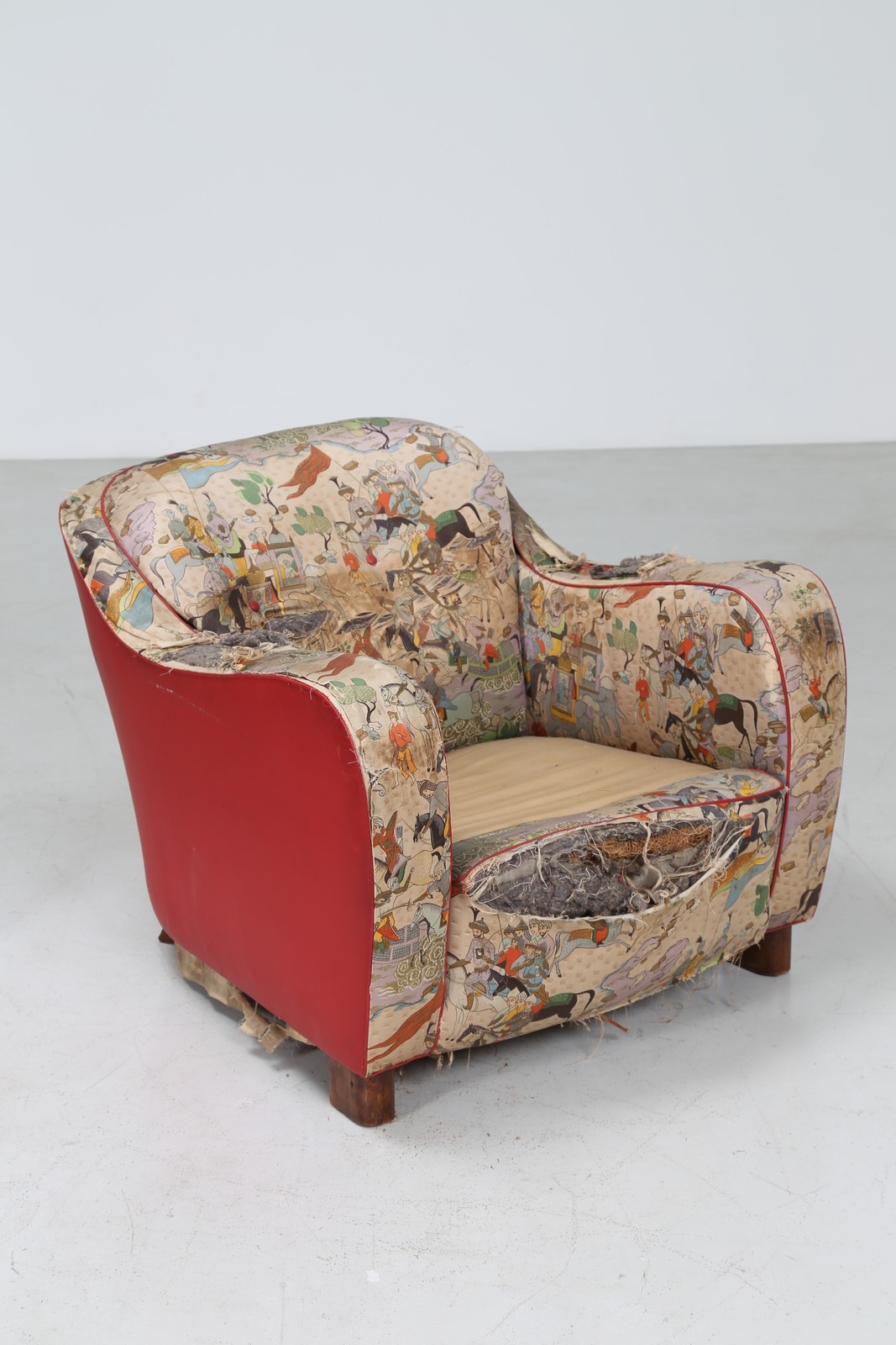 GELLNER EDOARDO (1909 - 2004) Coppia di poltrone in legno, skai e tessuto originale, anni 40. -. Cm 78,00 x 67,00 x 95,00.