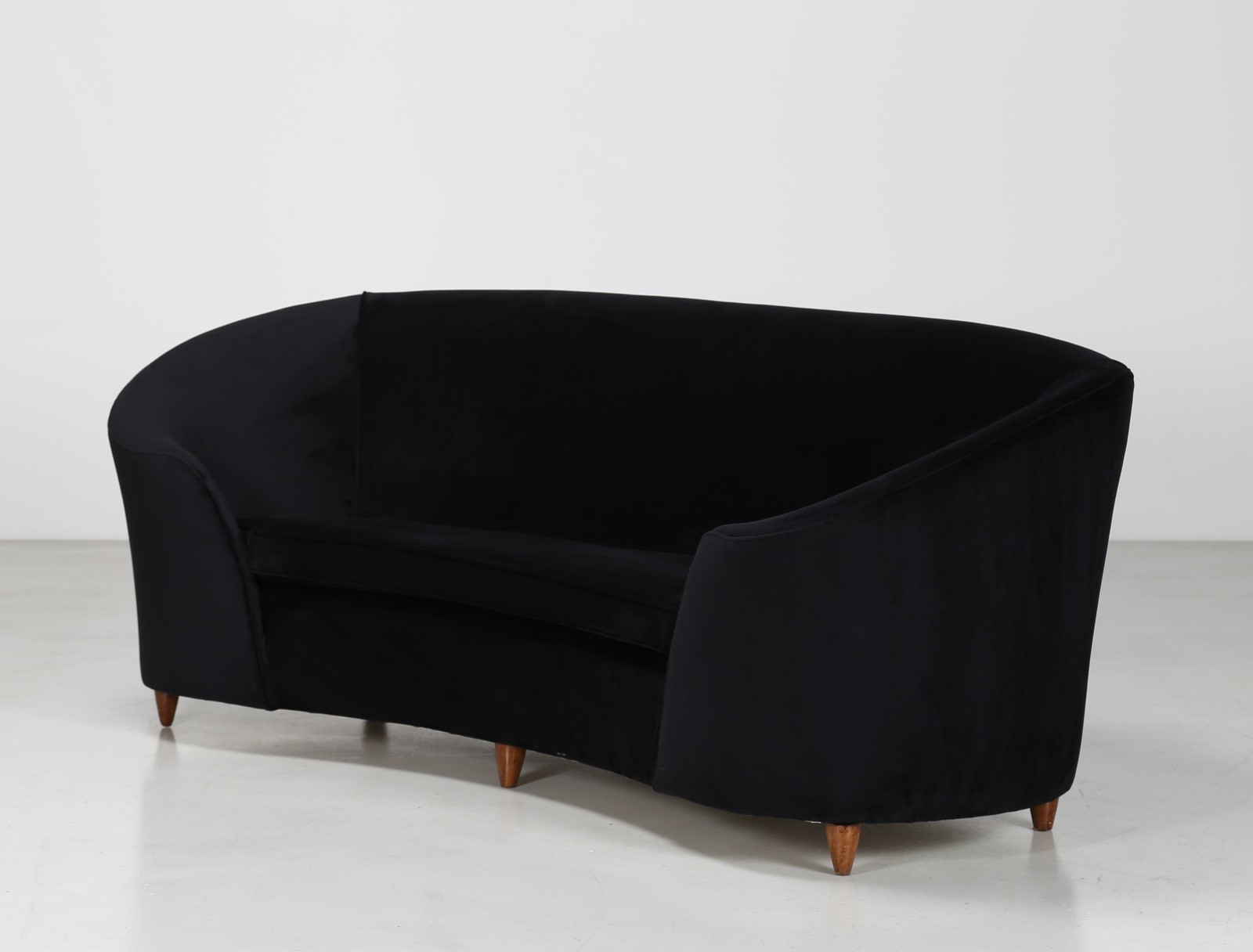 PARISI ICO (1916 - 1996) Attrib. Divano curvo in legno e tessuto, anni 50. -....