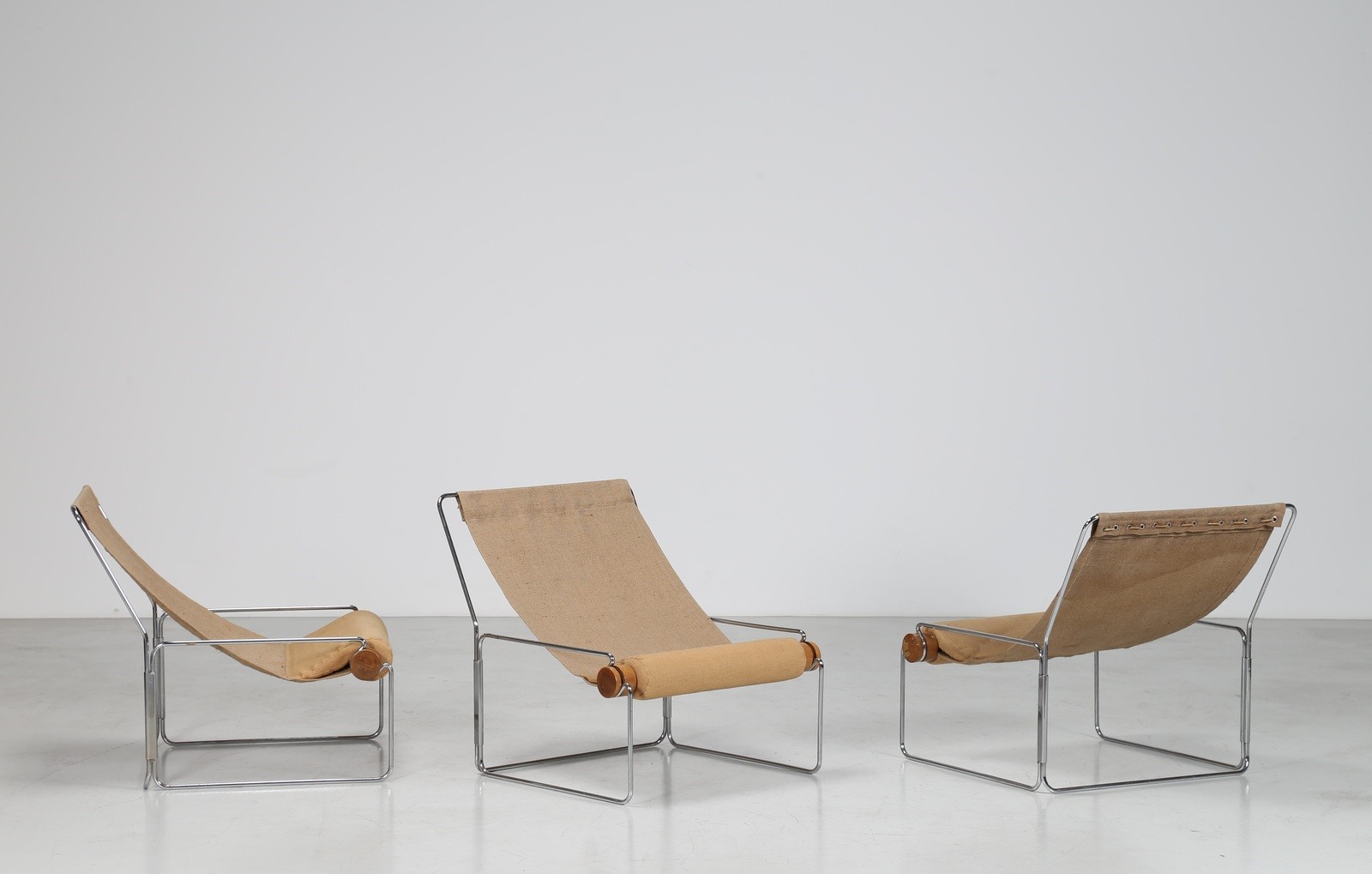 Lot 363 | KANE BRIAN Tre poltrone in metallo tessuto e legno, mod. Londra 840, per...