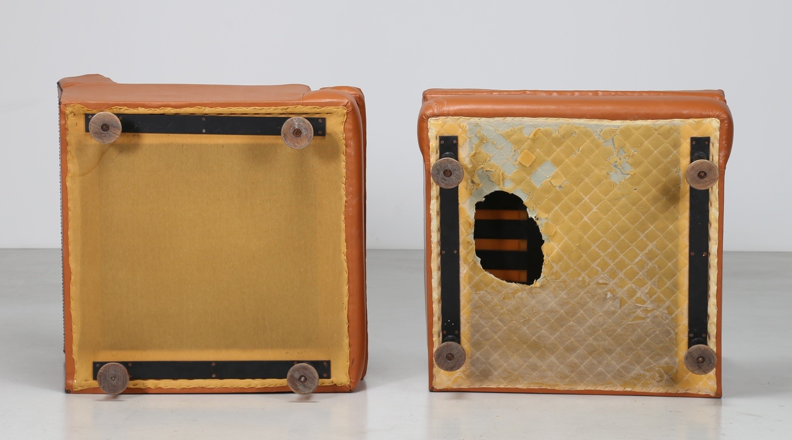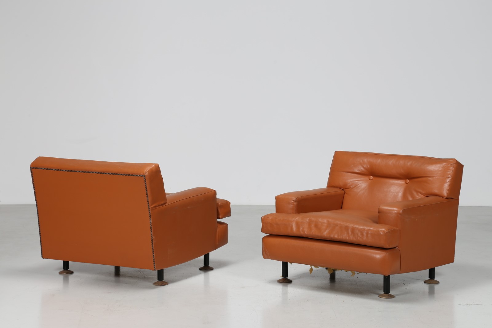 ZANUSO MARCO (1916 - 2001) Coppia di poltrone con struttura e supporti in legno e metallo. rivestimento in sky originale, mod. Square per Artflex anni 50. Pubblicazioni; Catalogo Arflex, p. 28. -. Cm 85,00 x 71,00 x 90,00.