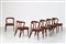 SCHAEFER BERTHA Sei sedie in noce e pelle, per Singer & Sons, anni 50.