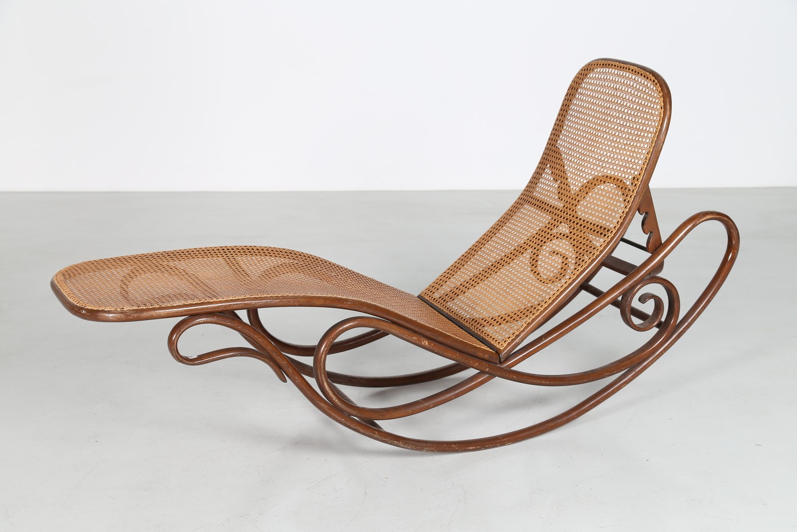 THONET GEBRÜDER Chaise-longue in faggio curvo e canna d'india, mod. 7500 per...