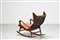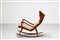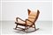 STUDIO CASSINA Sedia a dondolo in legno metallo, cinghie elastiche e cuscino in tessuto, mod 572 per Cassina, anni 50. Pubblicazioni; Pier Carlo Santini, Gli anni del design italiano, Ritratto di Cesare Cassina, Electa, Milano, 1081, p. 109. Irene de Guttry, Maria Paola Maino, Il mobile italiano degli anni 40 e 50, Laterza, Bari, 1992, p. 133. -. Cm 65,50 x 94,00 x 103,00.