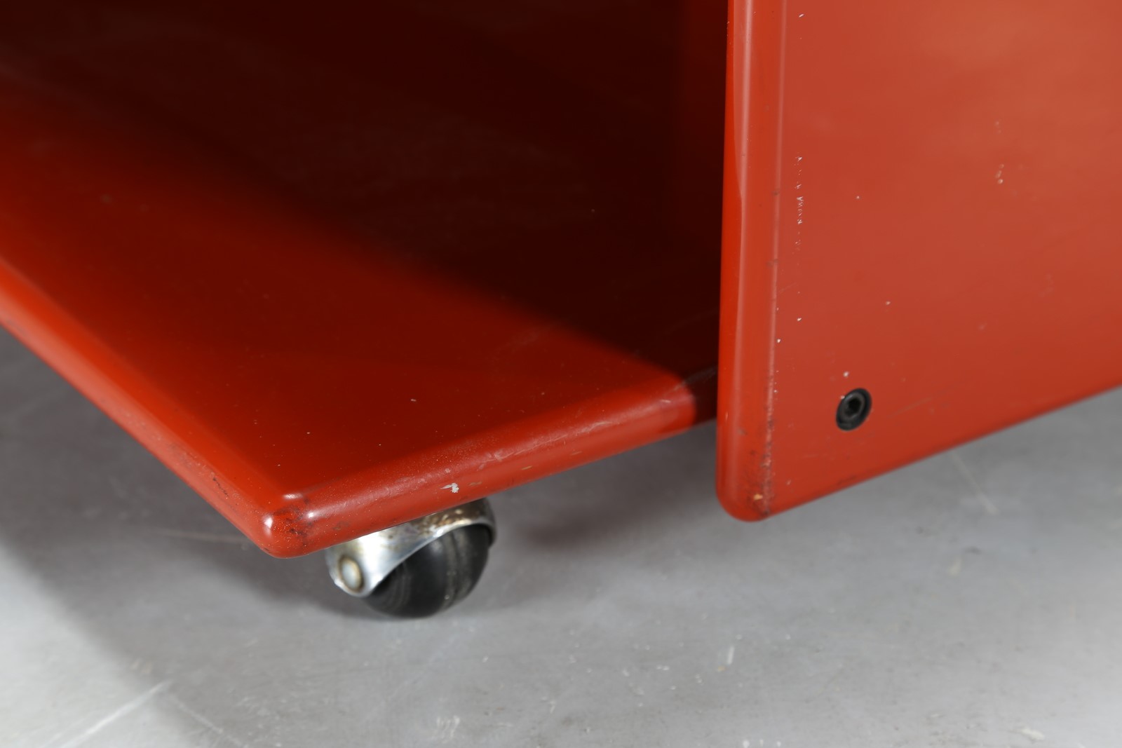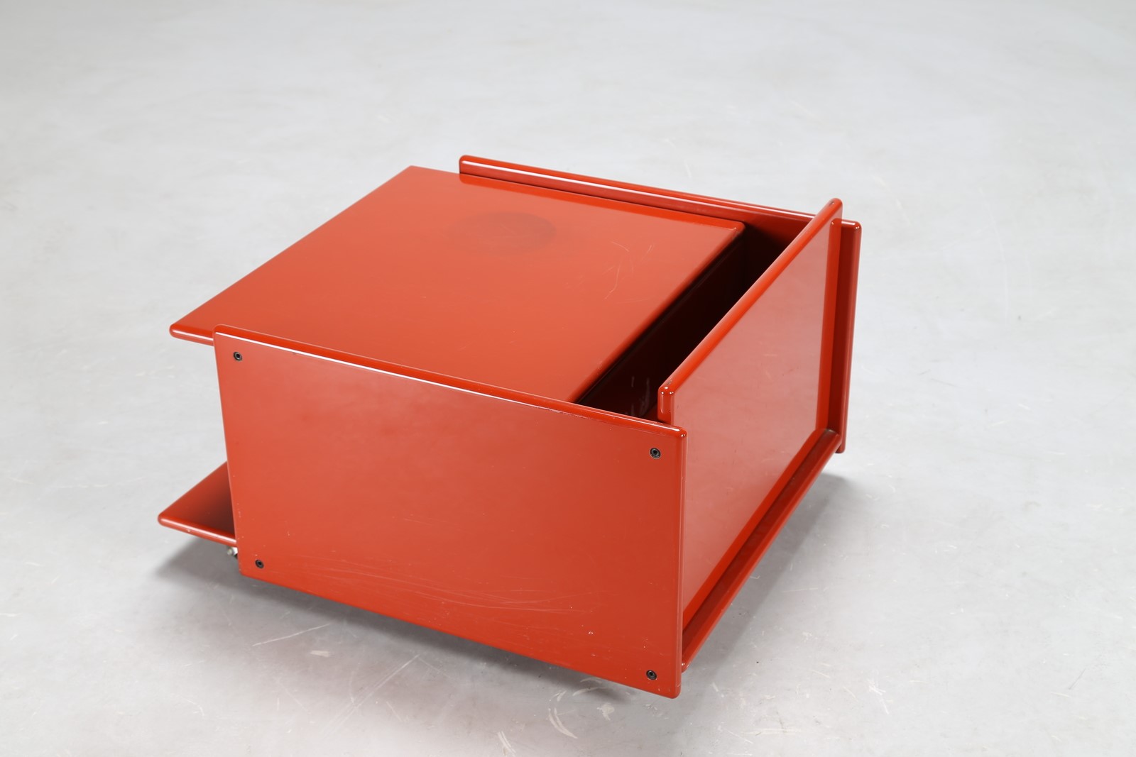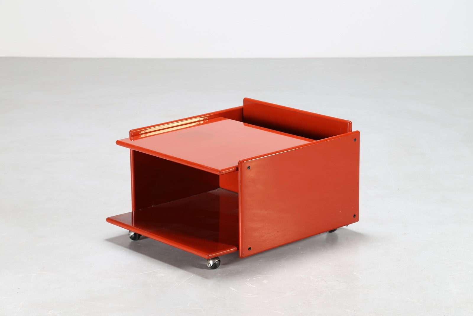 Lot 396 | MANIFATTURA ITALIANA Tavolino portariviste in legno laccato rosso, anni 60....