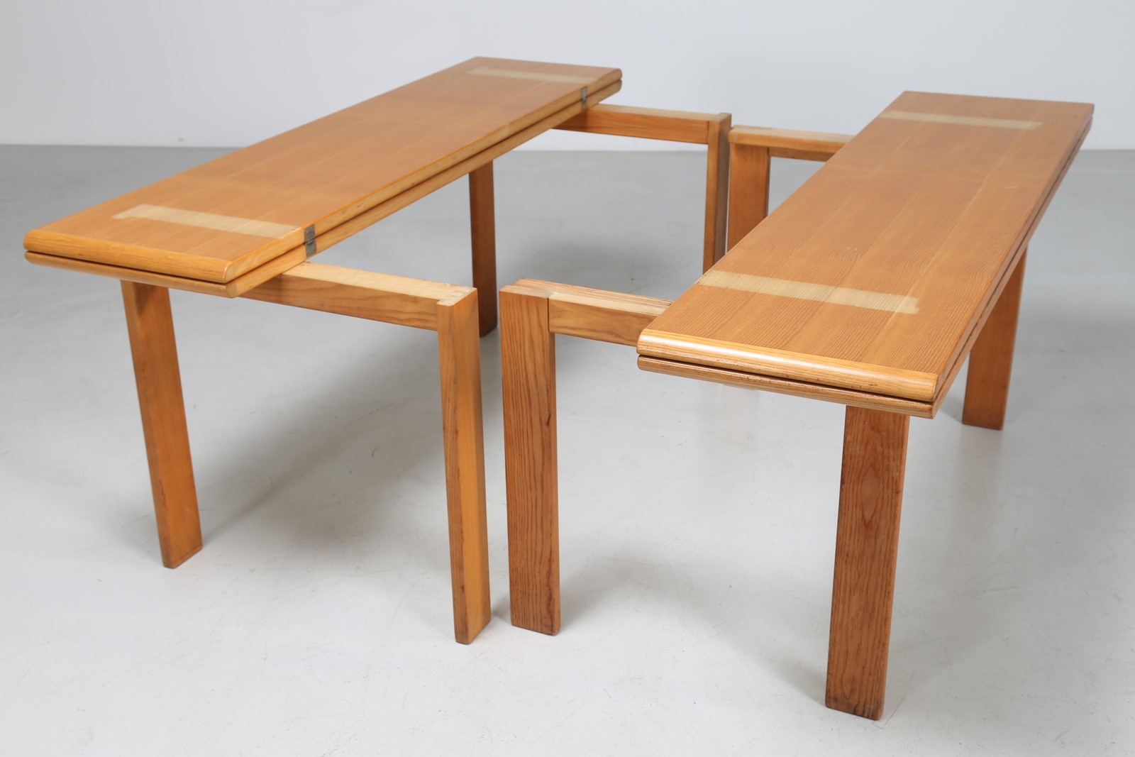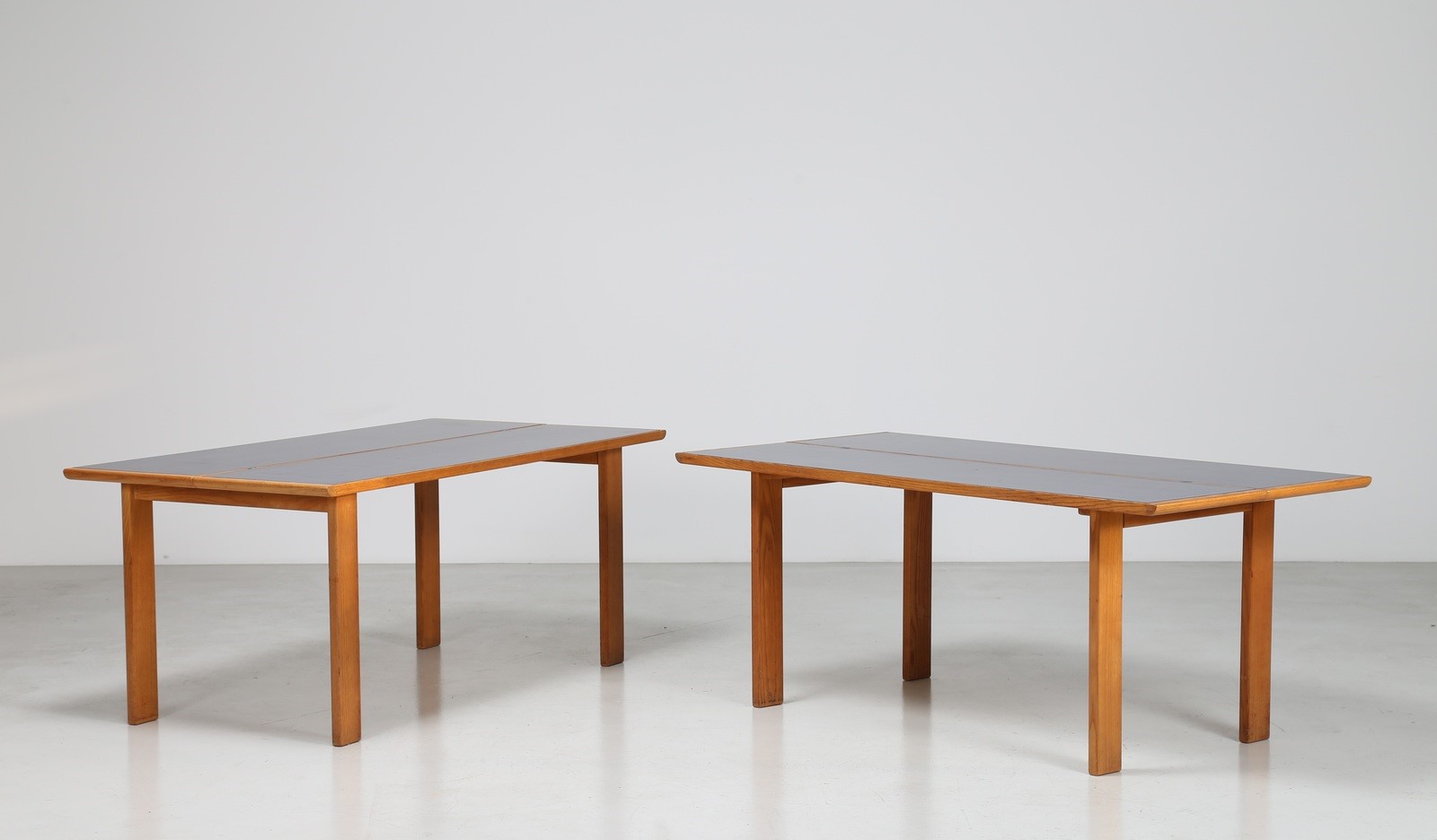 SCARPA AFRA & TOBIA Attrib. Coppia di tavoli-consol a nido in rovere e formica, anni 70. -. Cm 160,00 x 69,00 x 80,00.