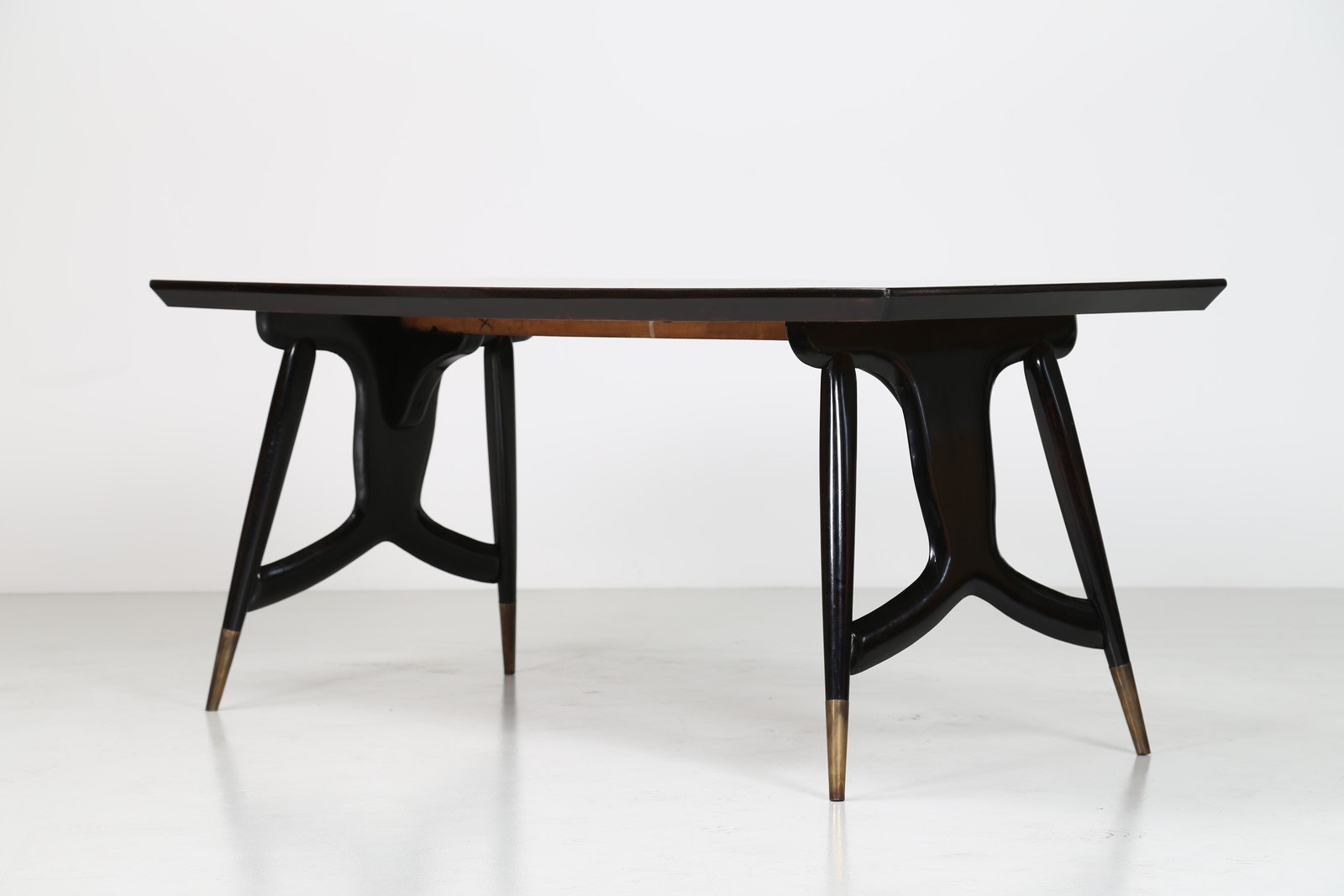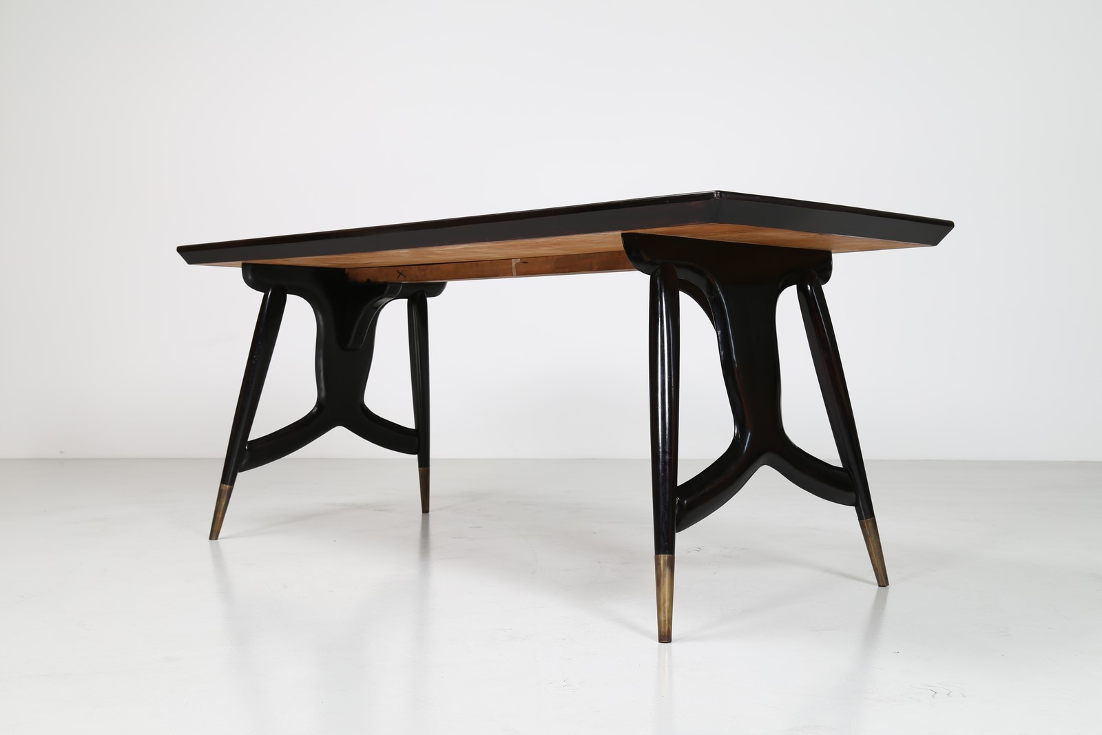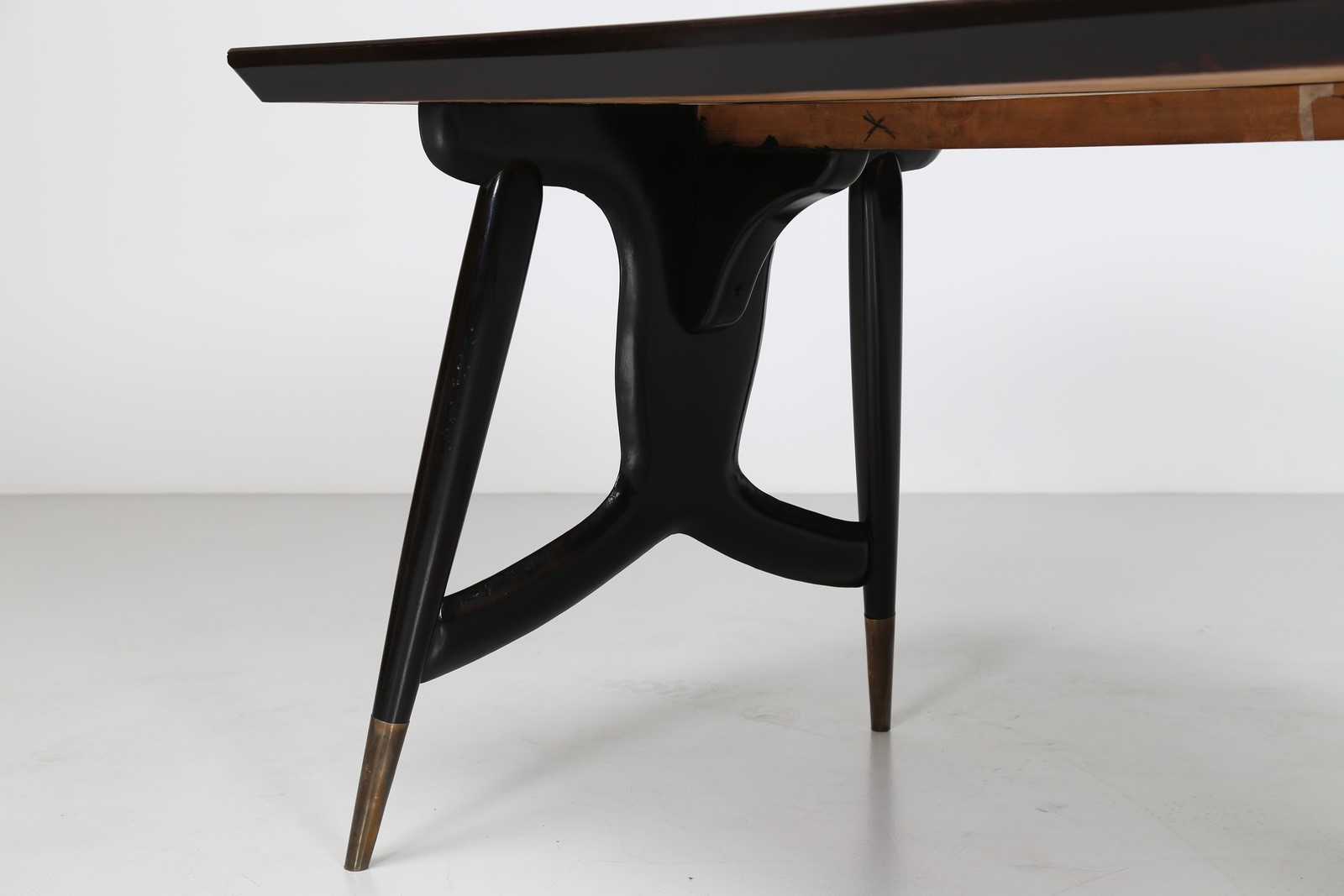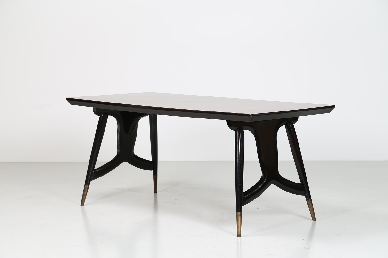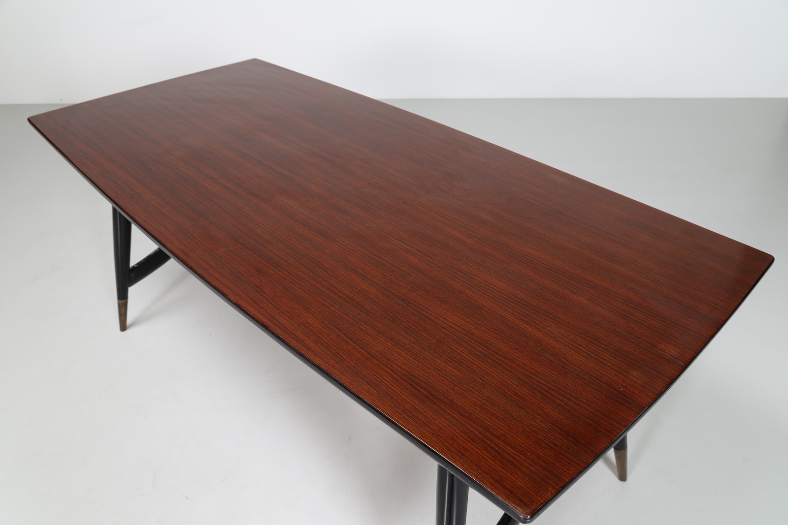 JANNACE SAVERIO Tavolo in legno ebanizzato puntali in ottone con piano in palissandro, per Jannace e Kovacs, anni 50. -. Cm 190,00 x 80,00 x 88,00.