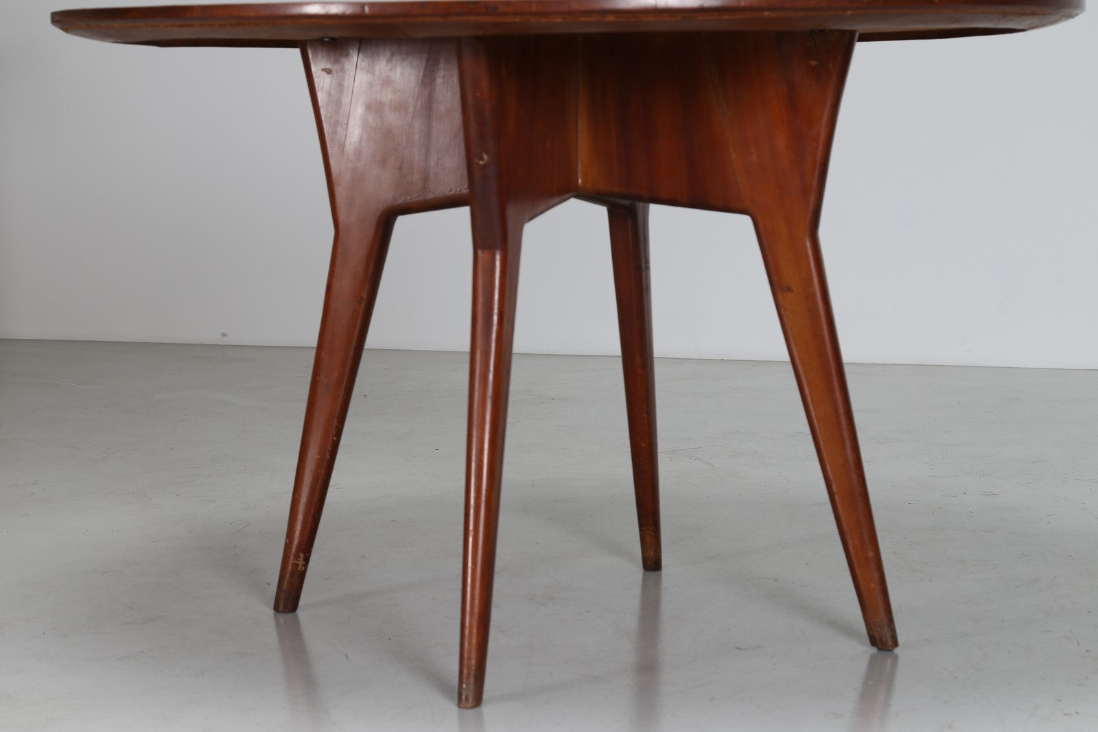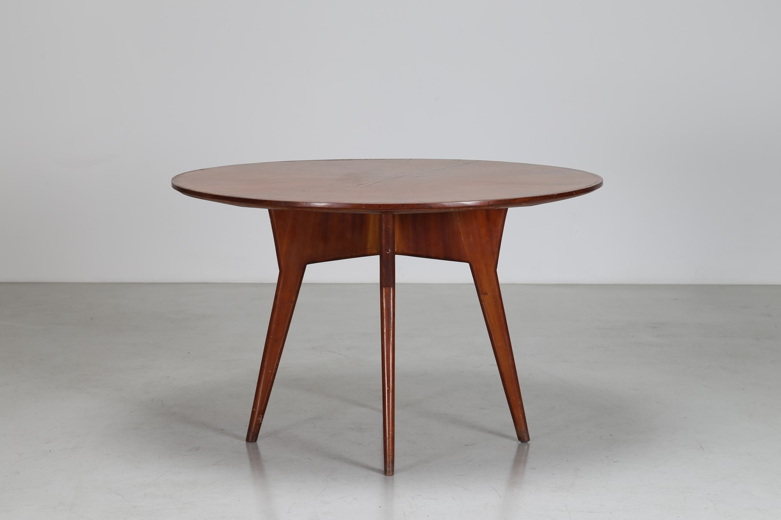 PONTI GIO' (1891 - 1979) Tavolo rotondo in mogano e radica di tuia, anni 40....