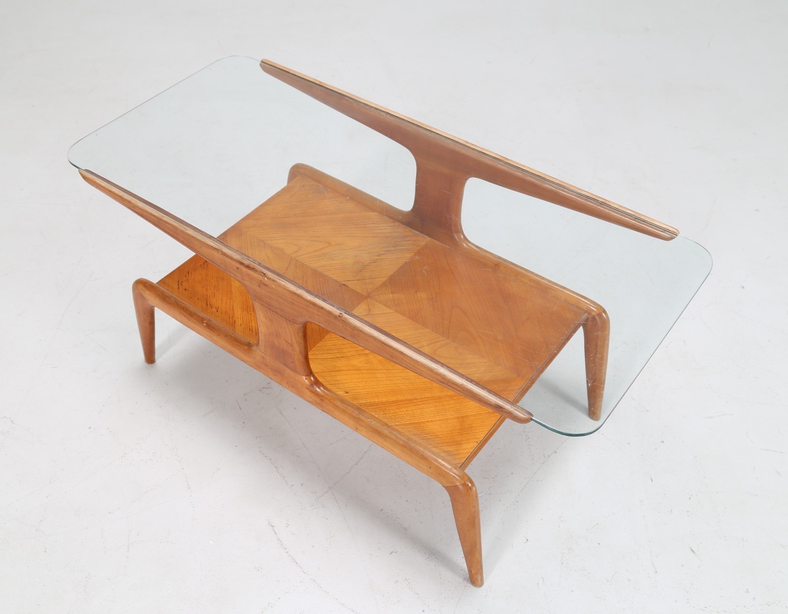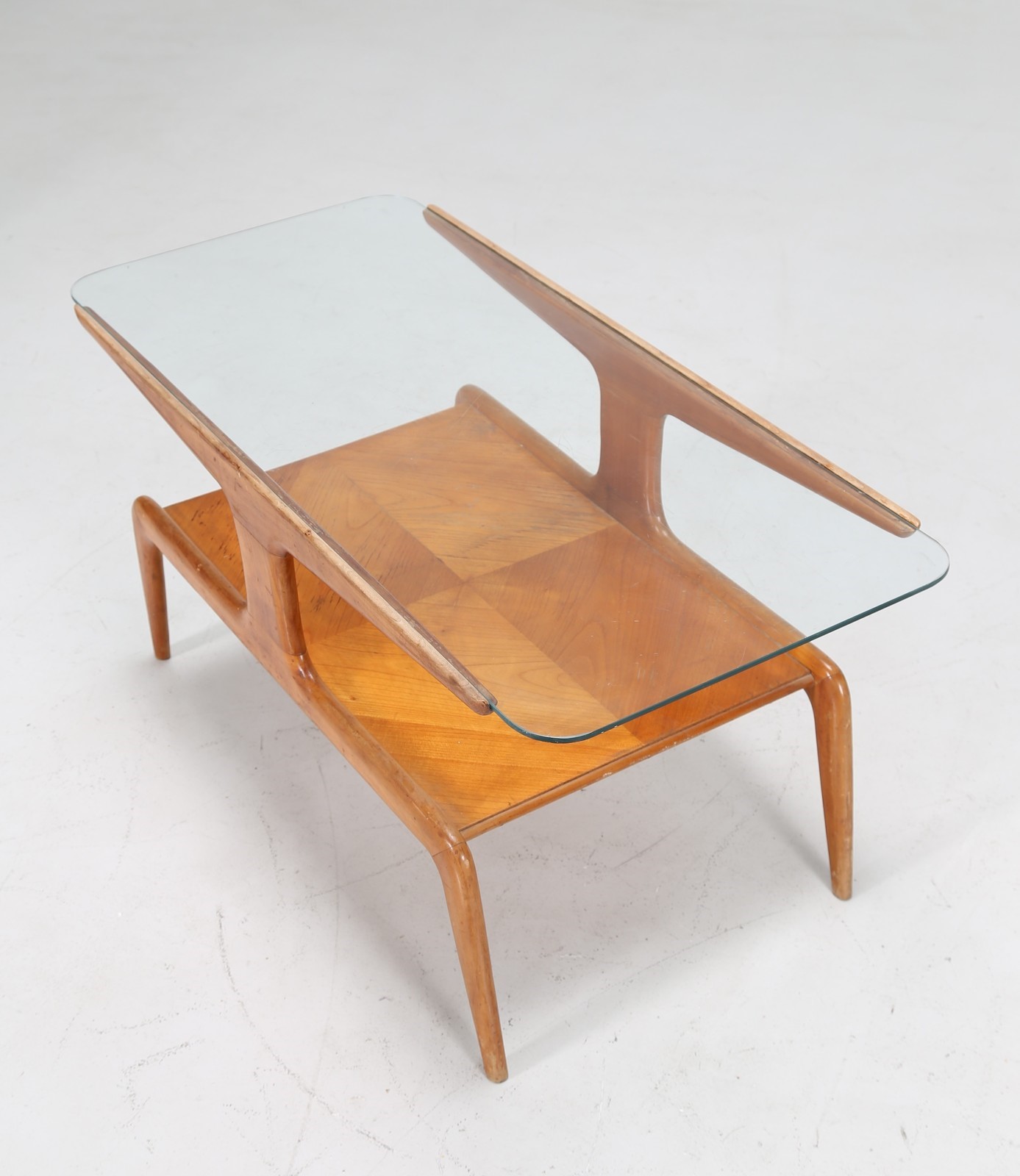 PONTI GIO' (1891 - 1979) Tavolino da caffe in frassino e piano in cristallo, anni 50. Expertise a cura di Salvatore Licitra Archives Gio Ponti Milano.