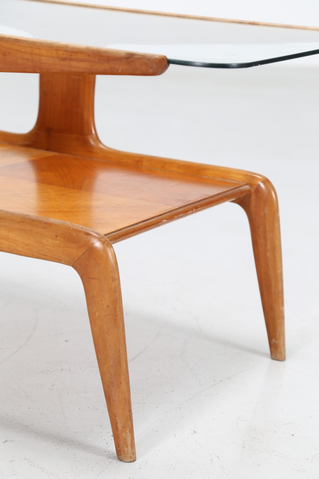 PONTI GIO' (1891 - 1979) Tavolino da caffe in frassino e piano in cristallo,...