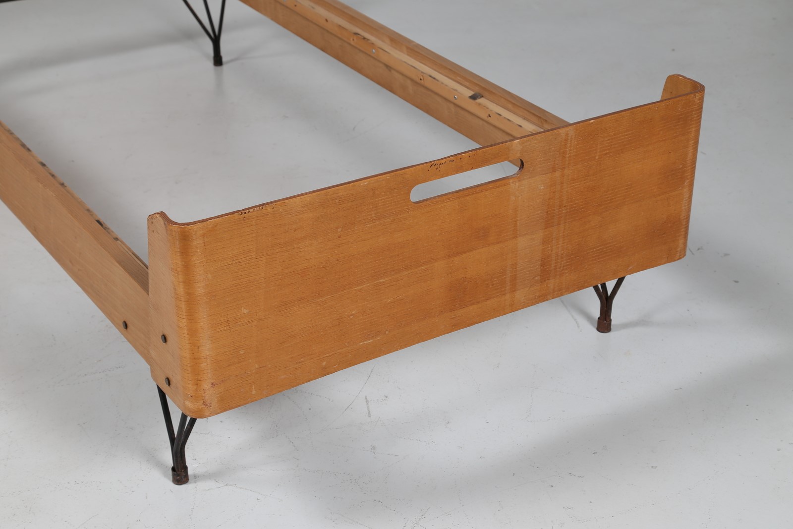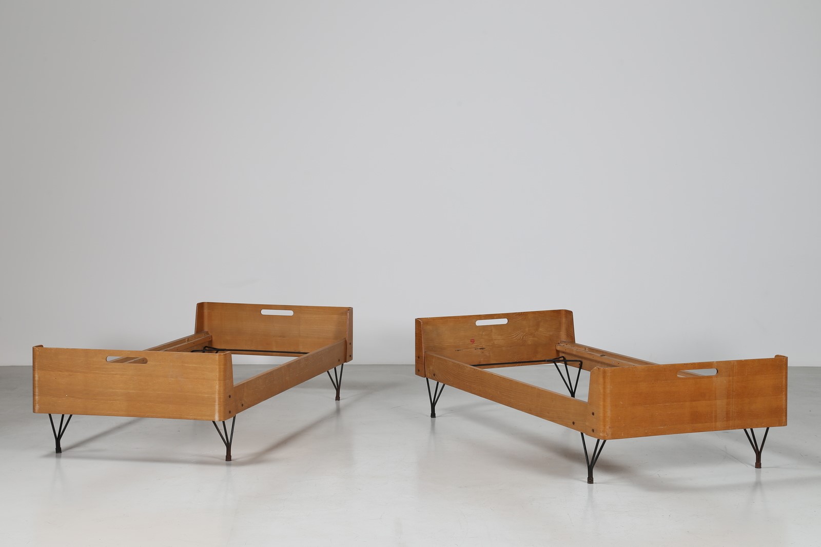 RIMA Coppia di letti in tondino di ferro e multistrato di teak curvato, tiratura limitata prod. RIMA, anni 50. . -. Cm 197,00 x 5,50 x 92,00.