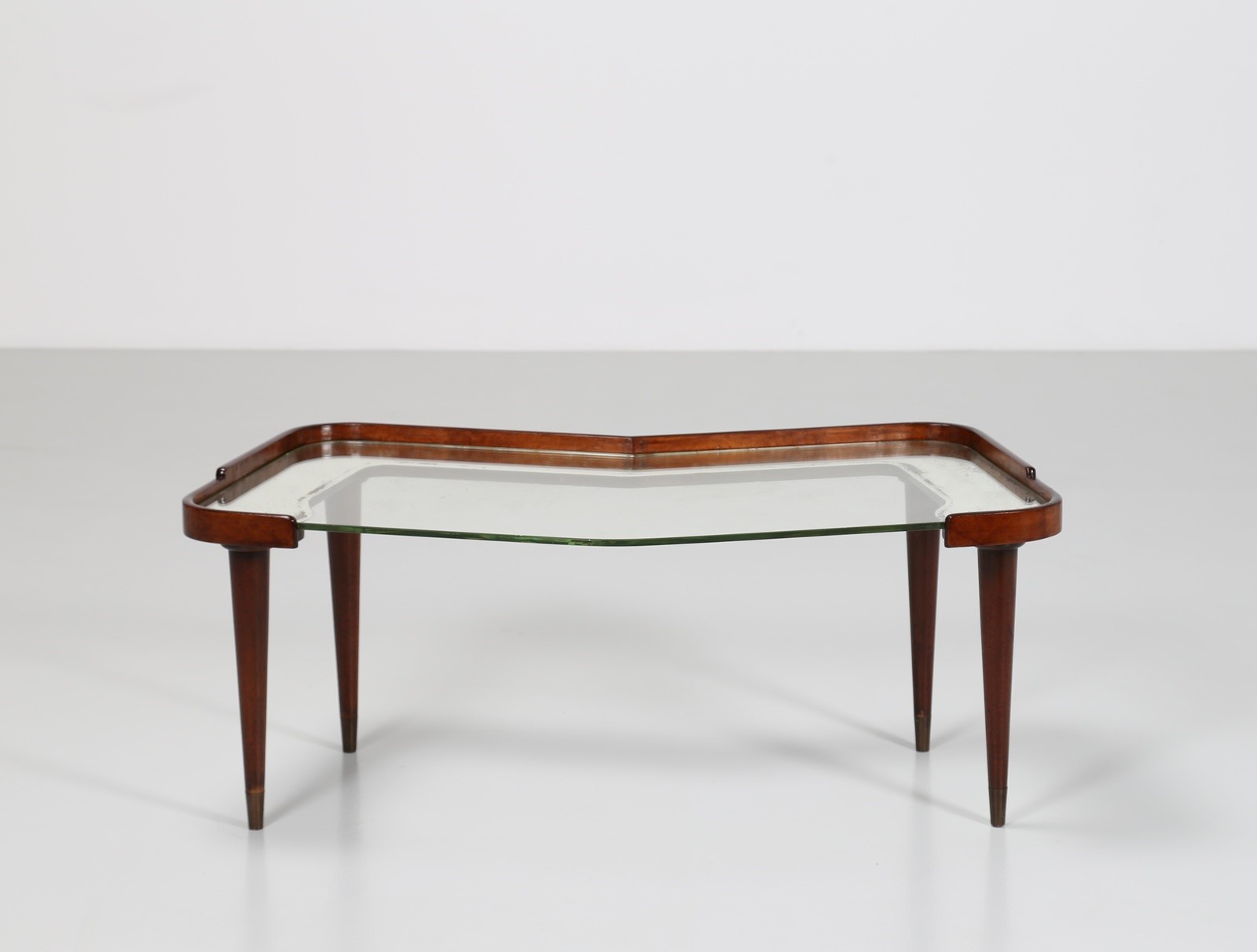 LACCA CESARE Attrib. Tavolino da caffè in mogano e vetro, anni 50. -. Cm 112,00 x 45,00 x 58,00.