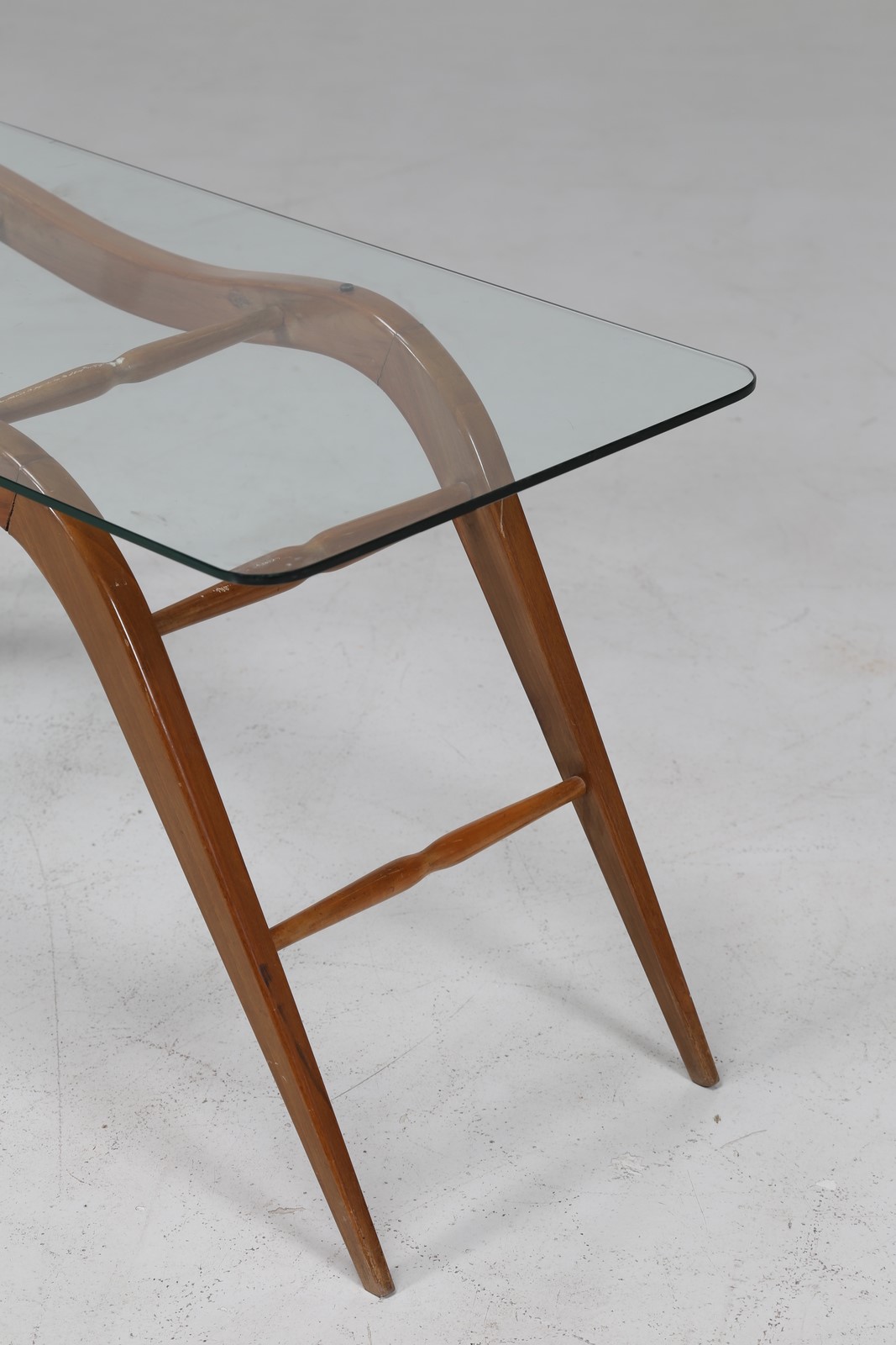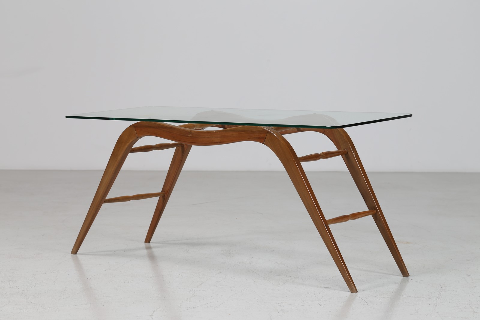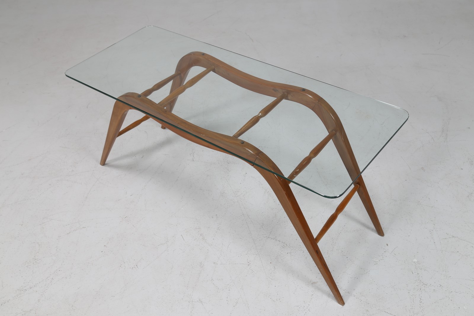 BEGA MELCHIORRE (1898 - 1976) Tavolino da caffè in legno con piano in cristallo, anni 50. -. Cm 108,00 x 48,00 x 42,00.