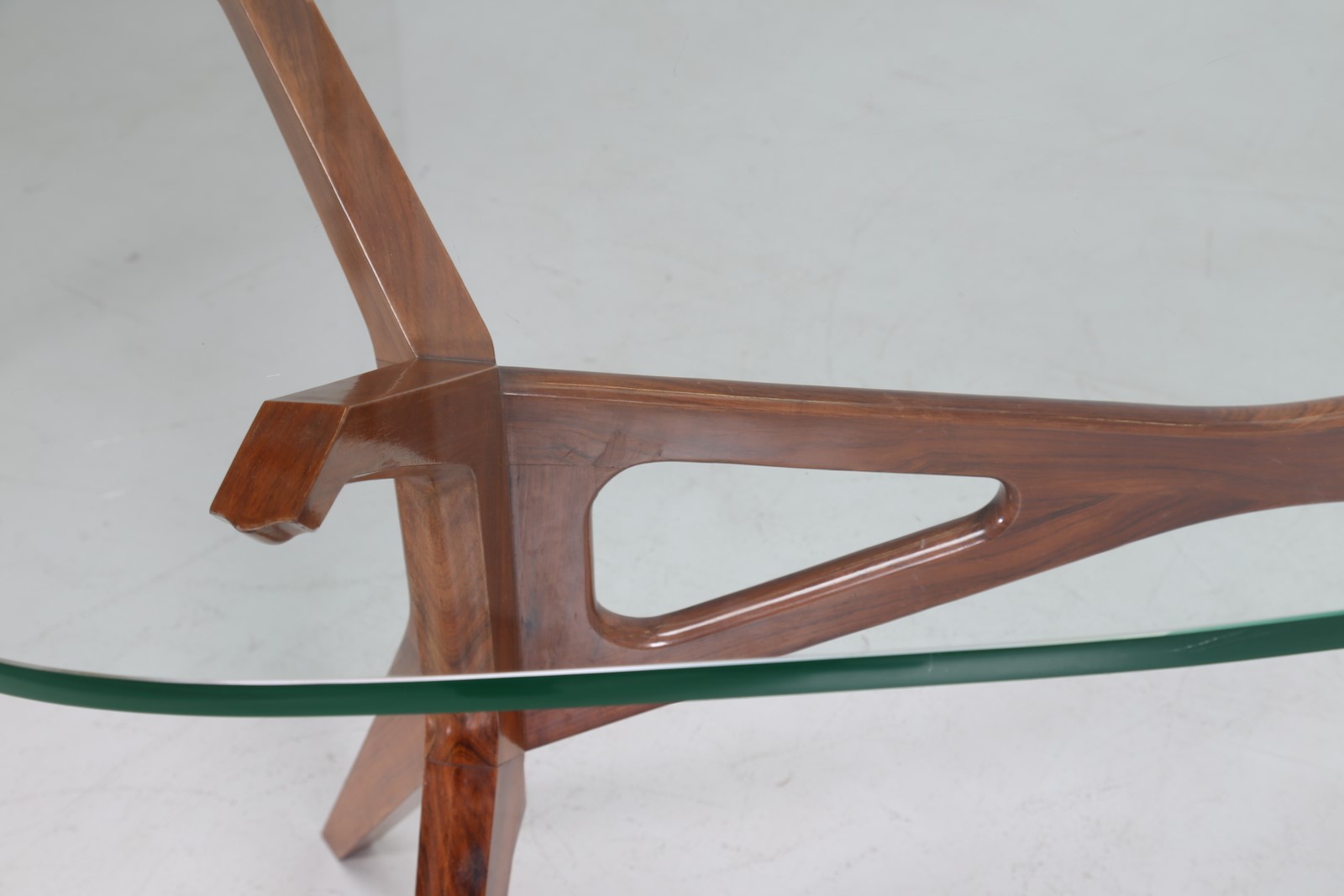 Lot 481 | MANIFATTURA ITALIANA Tavolo in palissandro con piano in cristallo, anni 50....