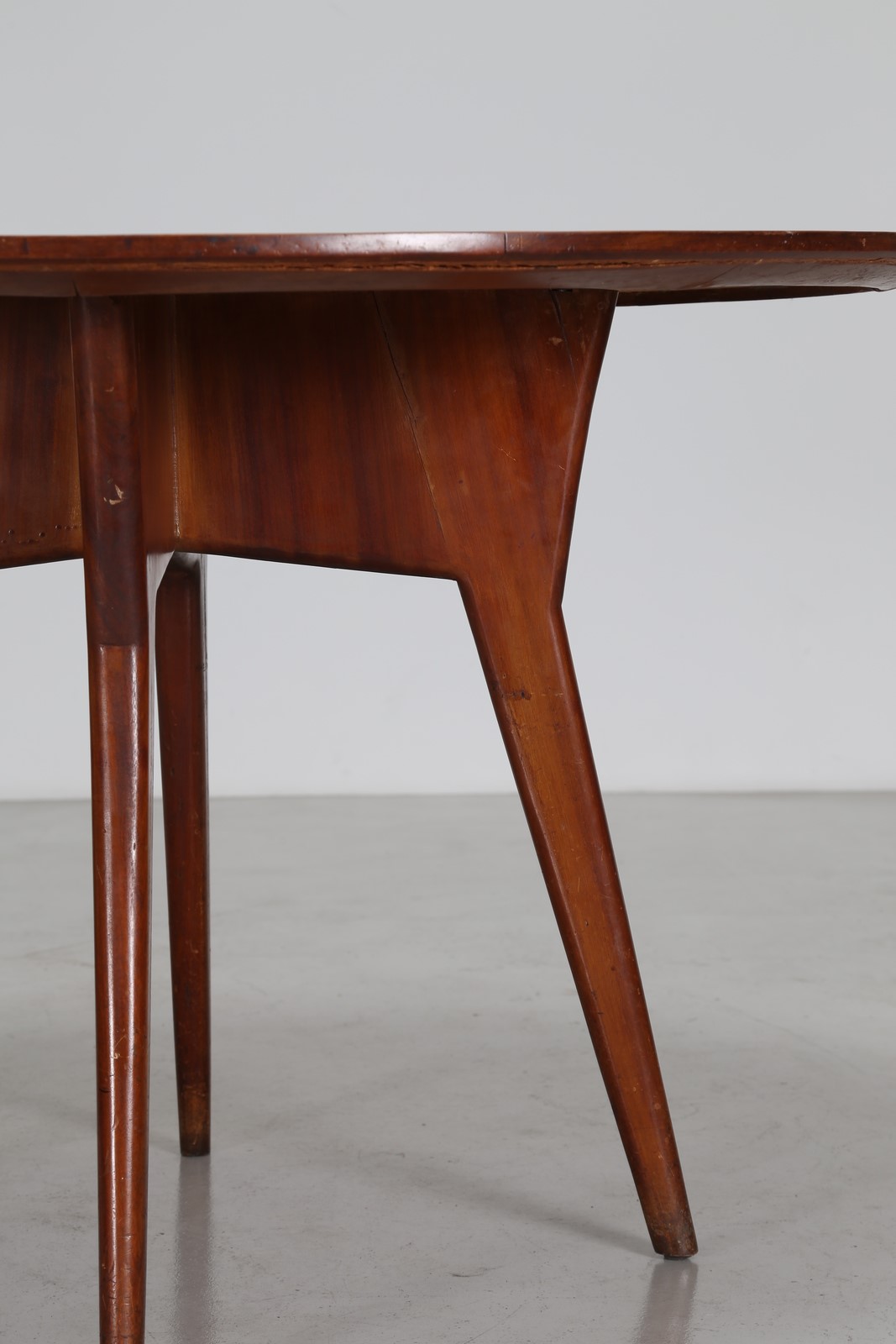 PONTI GIO' (1891 - 1979) Tavolo rotondo in mogano e radica di tuia, anni 40. Expertice a cura di Salvatore Licitra Archives Gio Ponti Milano. -. Cm 126,50 x 79,50 x 126,50.