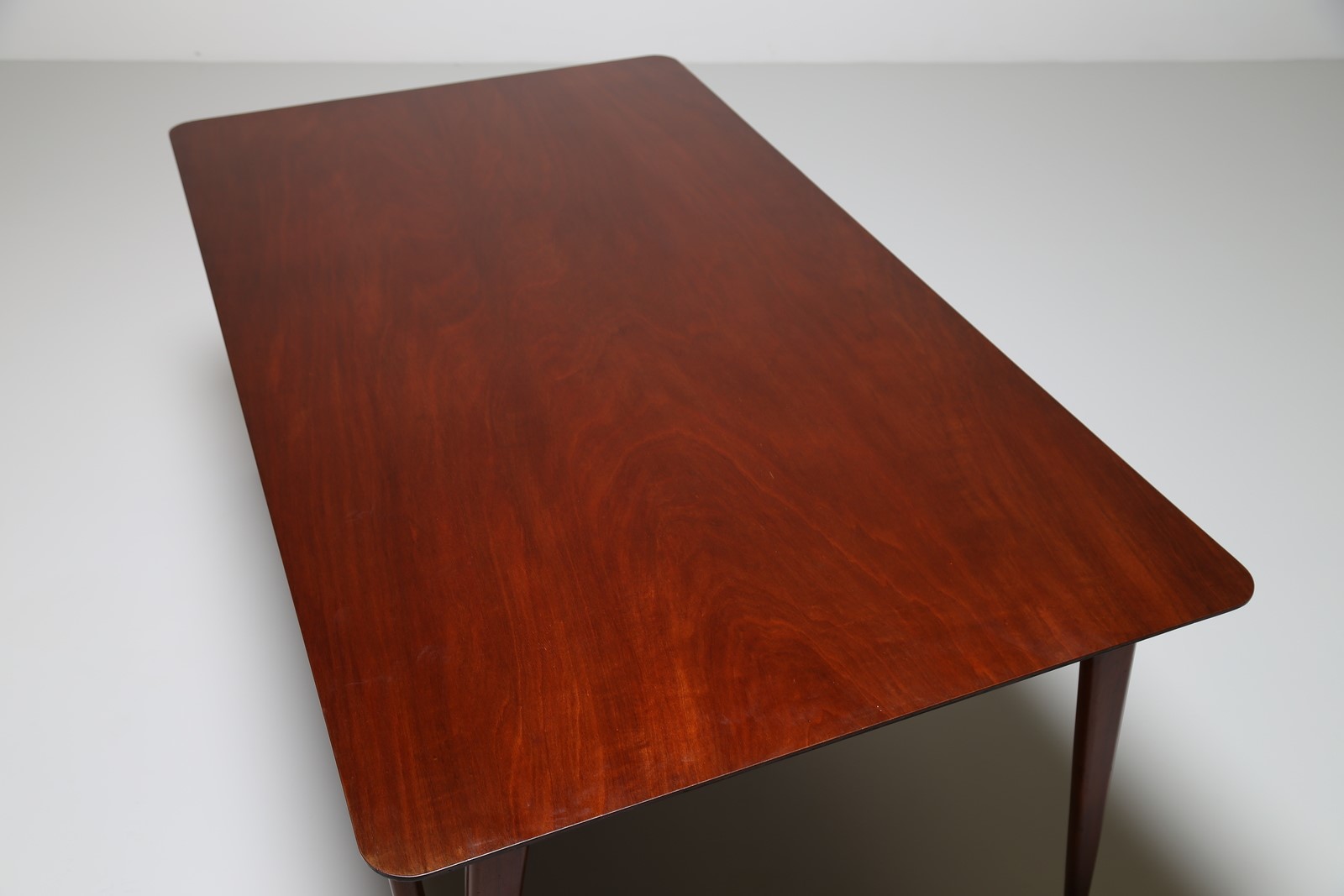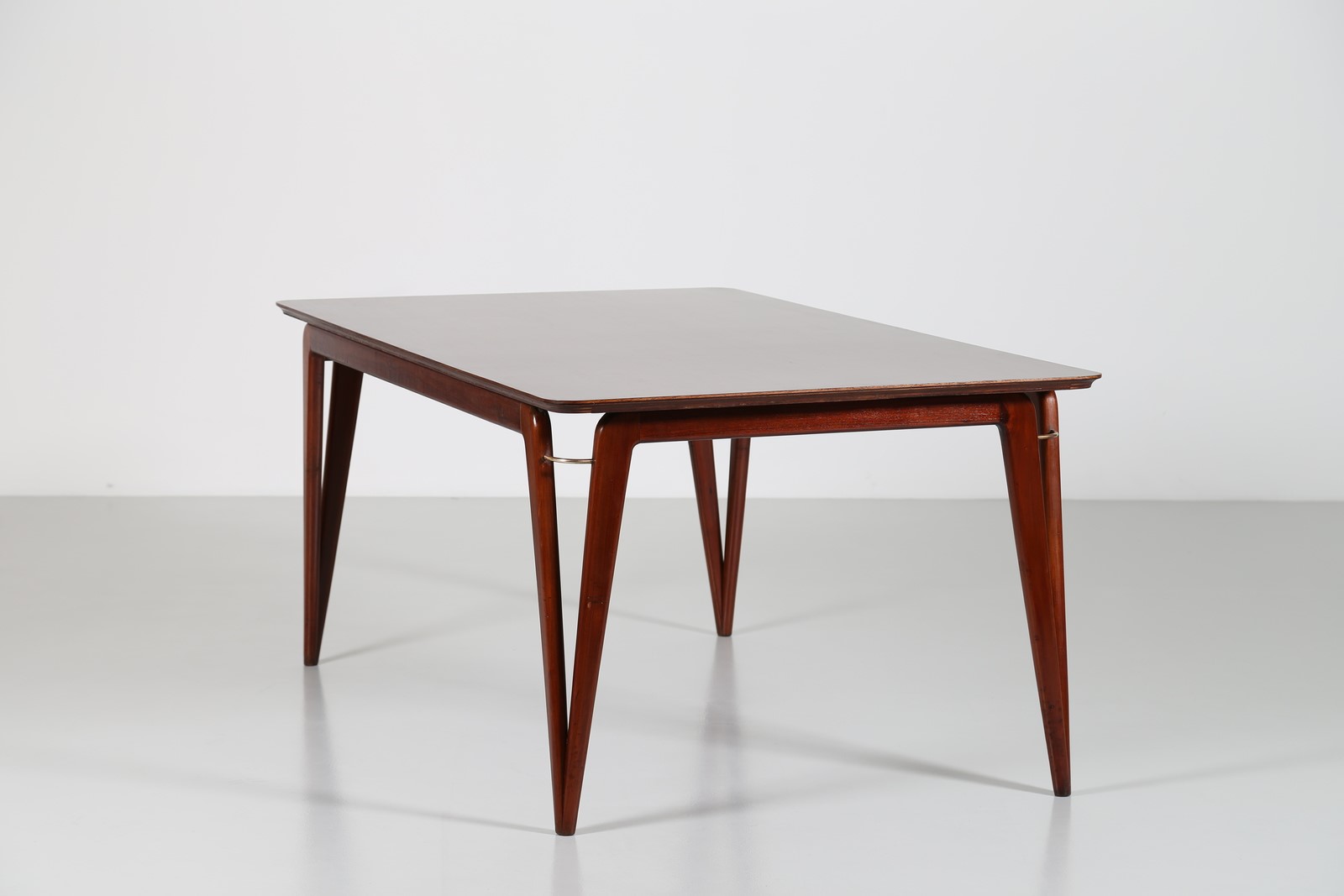 SCHAEFER BERTHA Tavolo in mogano e ottone, per Singer & Sons, anni 50. . -....