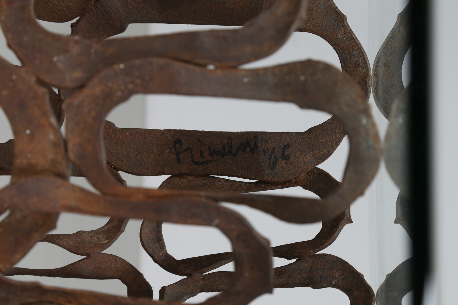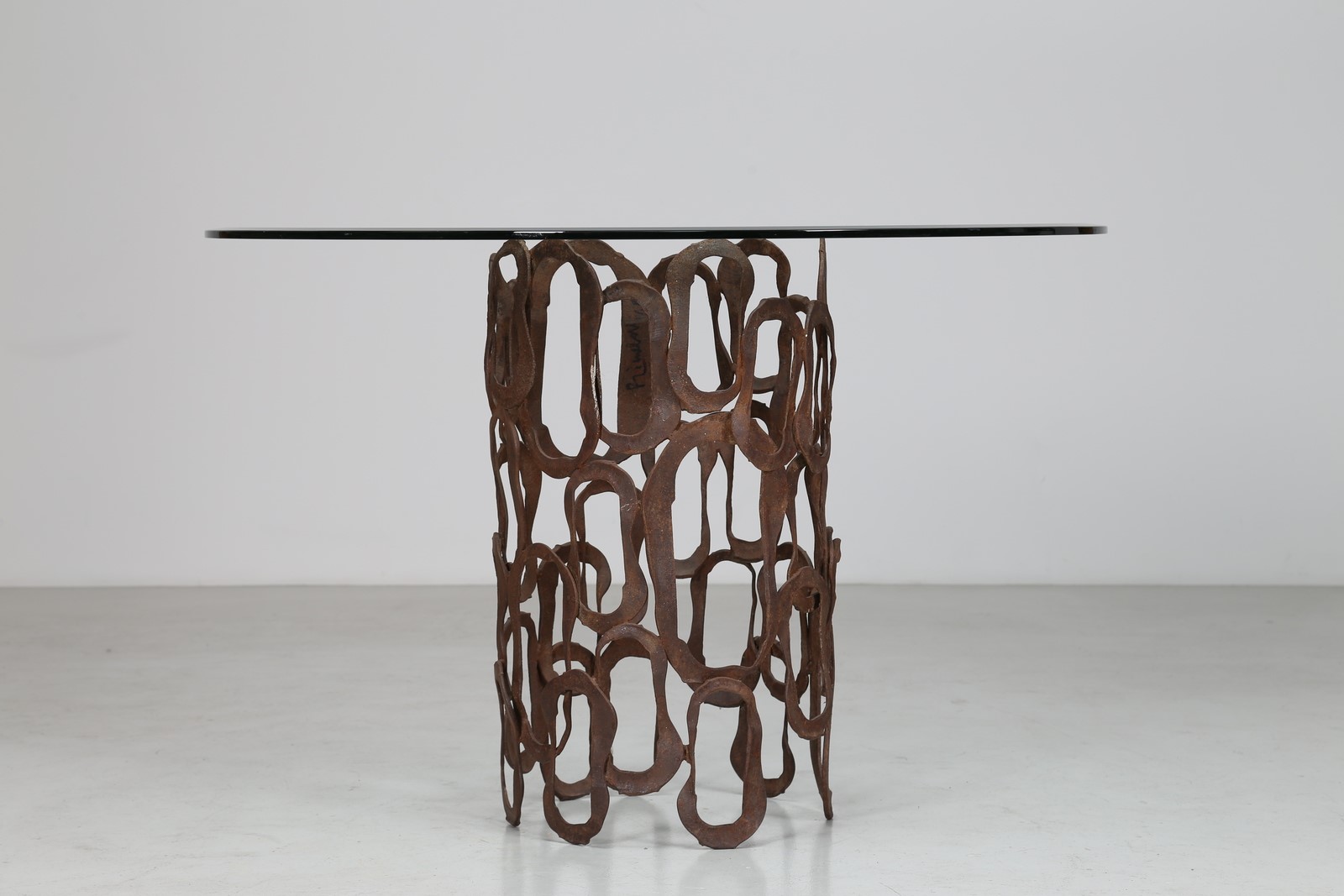 Lot 493 | RINALDI ANGELO Tavolo scultura in ferro con piano in cristallo, anni 70. -....