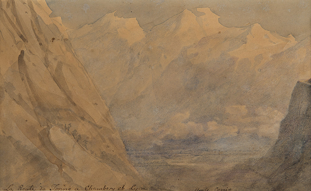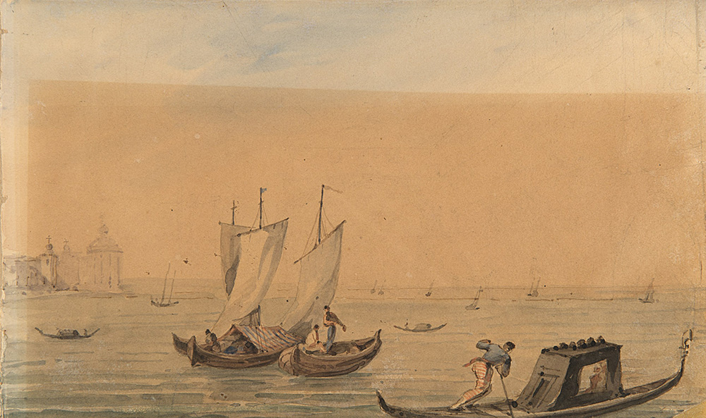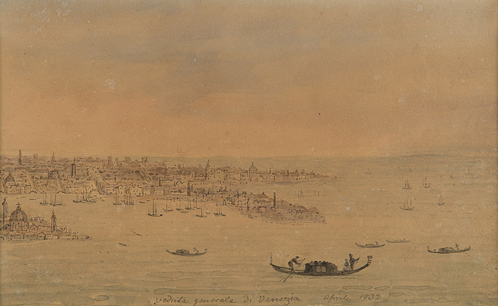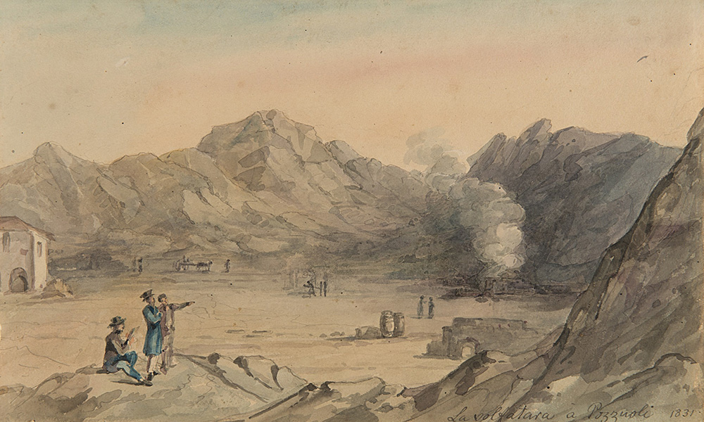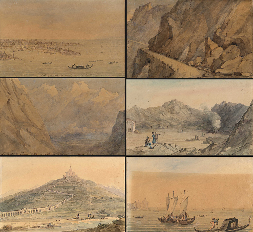 19th-century school. Group of six watercolours depicting Italian views (mm 140x220) some titled and dated
