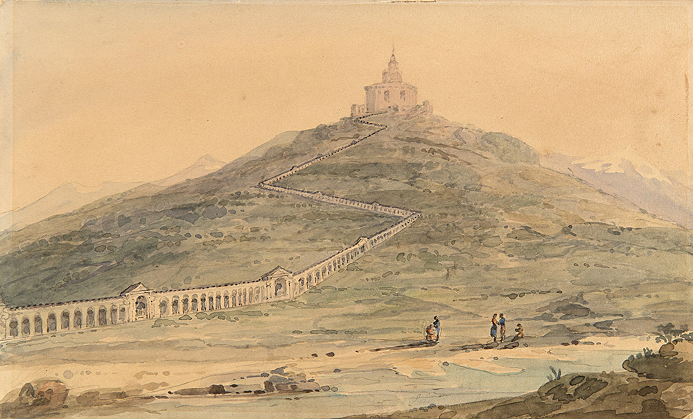 Scuola del secolo XIX. Gruppo di sei acquerelli raffiguranti vedute italiane...