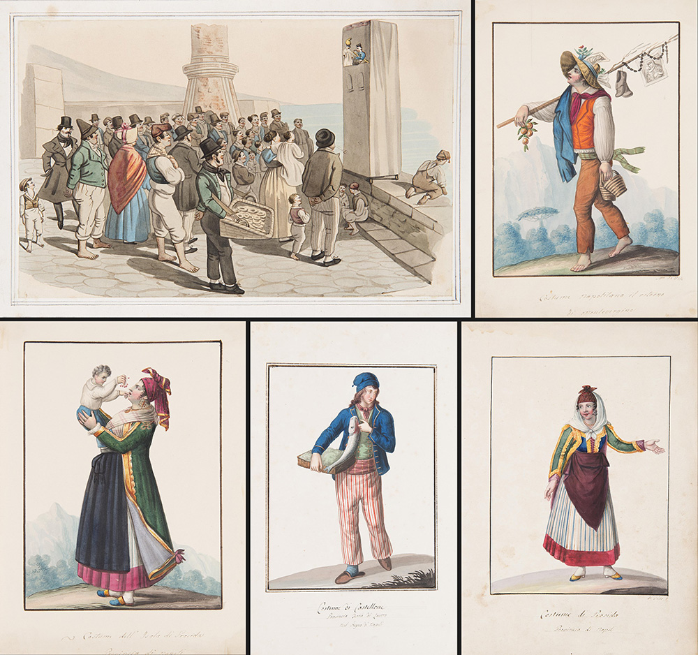 Album contenente ventiquattro acquerelli con soggetti di personaggi e costumi popolari, alcuni firmati De Vito (difetti)