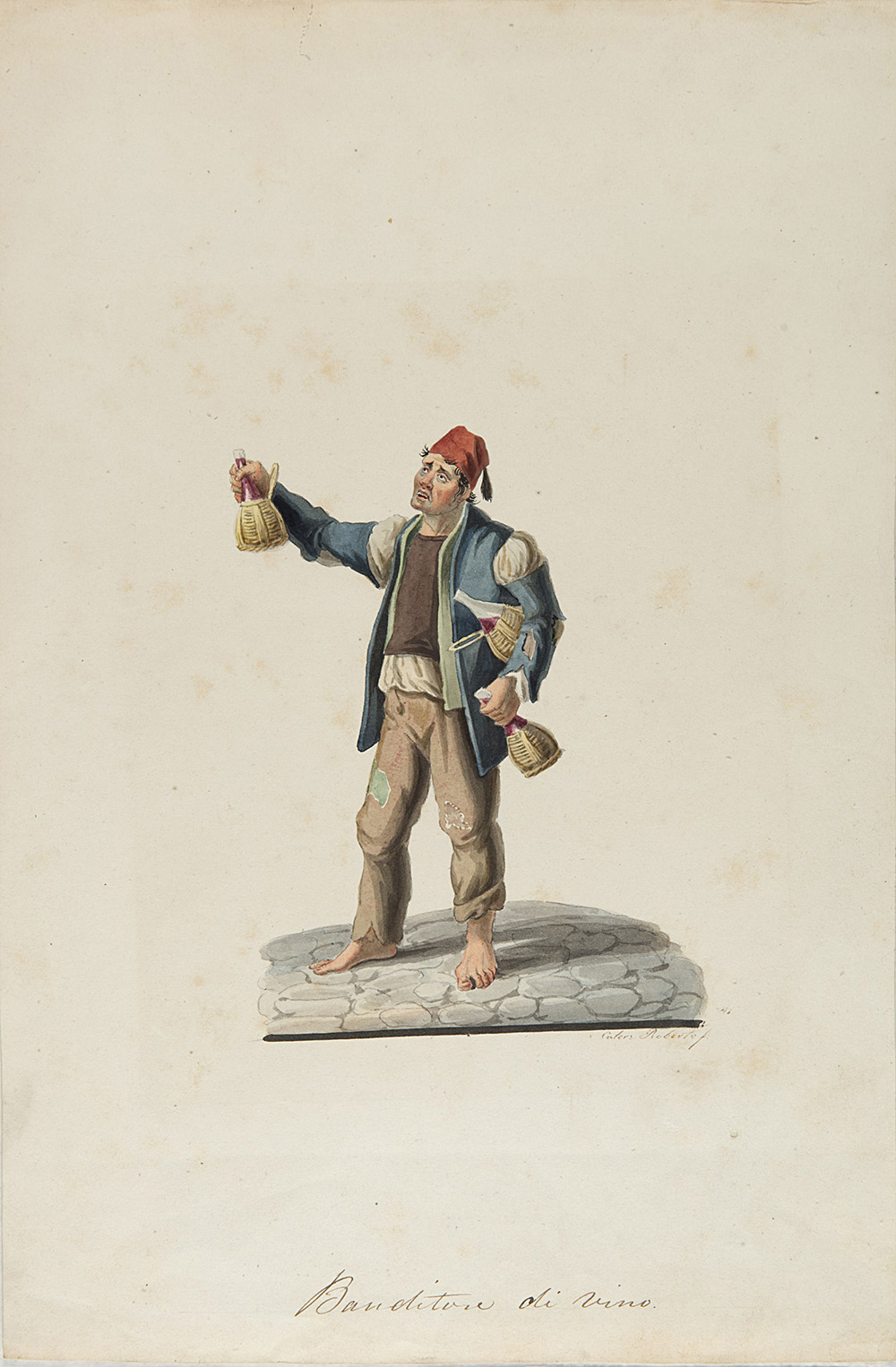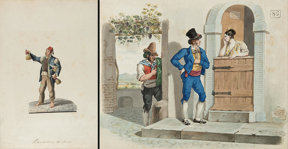 Lot of two 19th-century watercolours depicting wine salesman and popular scenes signed F. Ferrari Roma (different size)